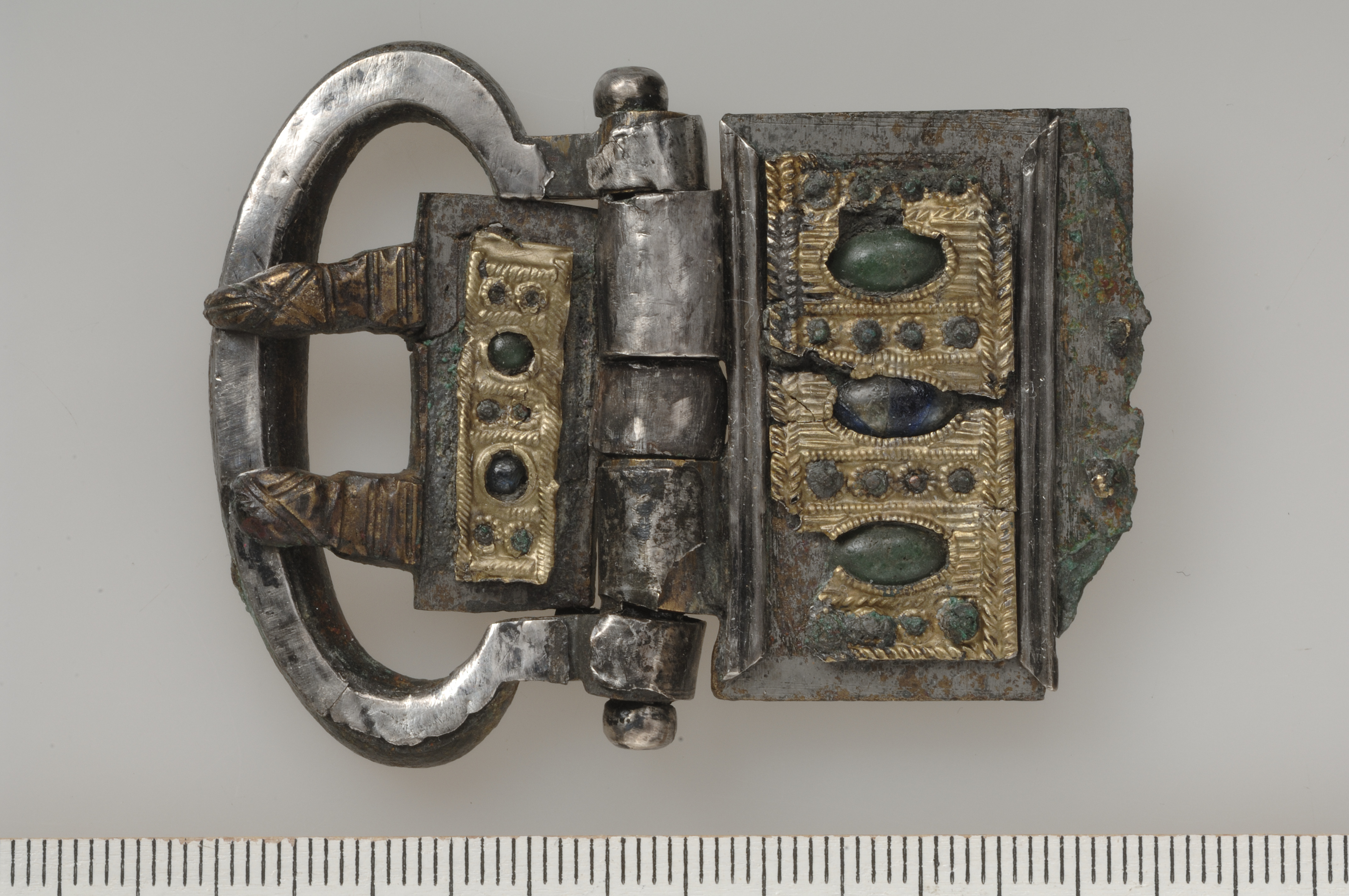 Sölja av brons och silver med förgyllningar och infatttningar.