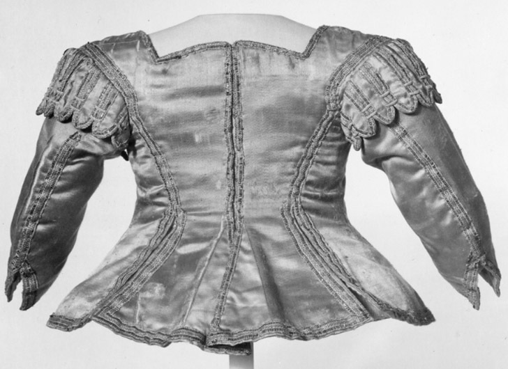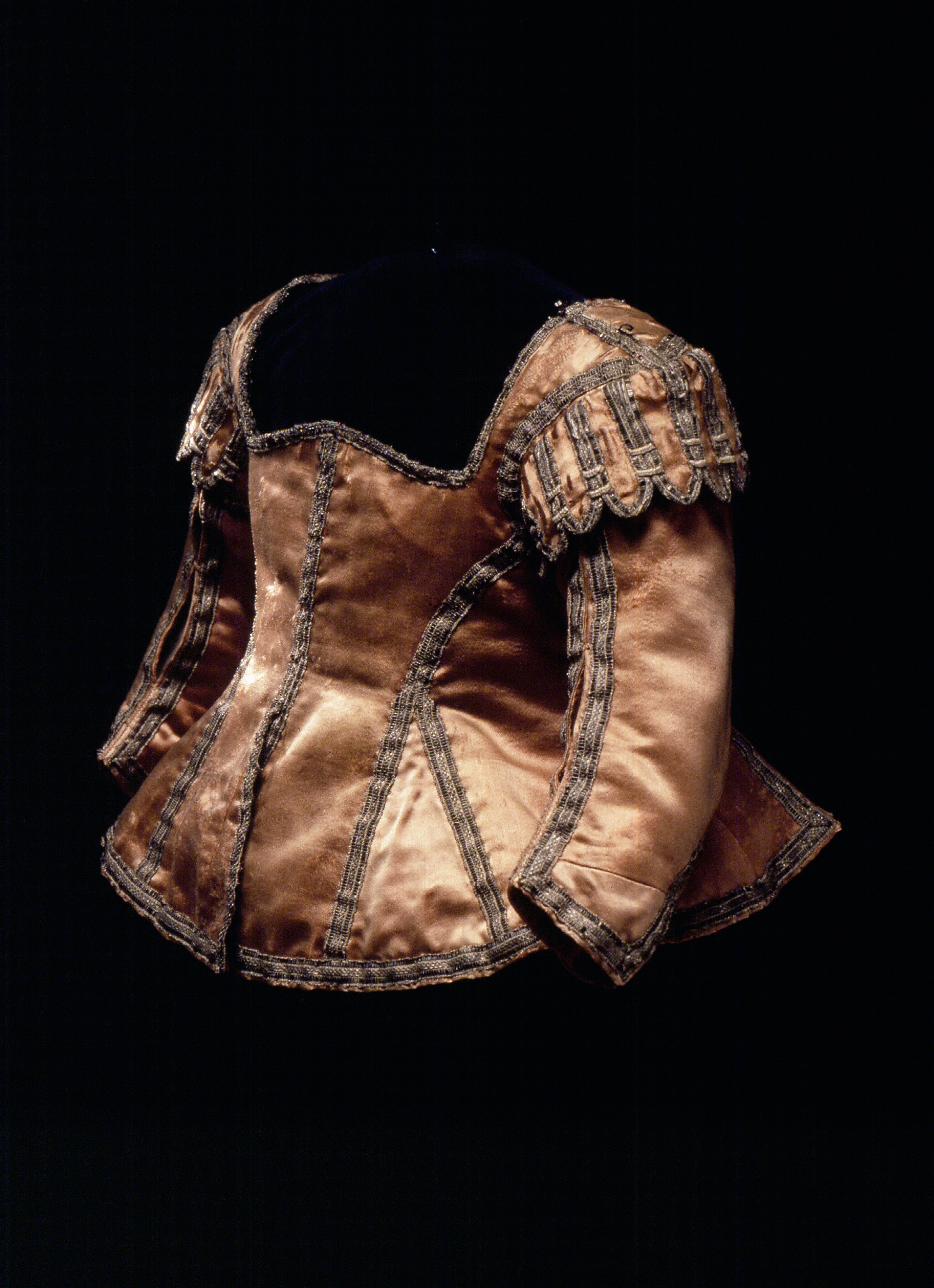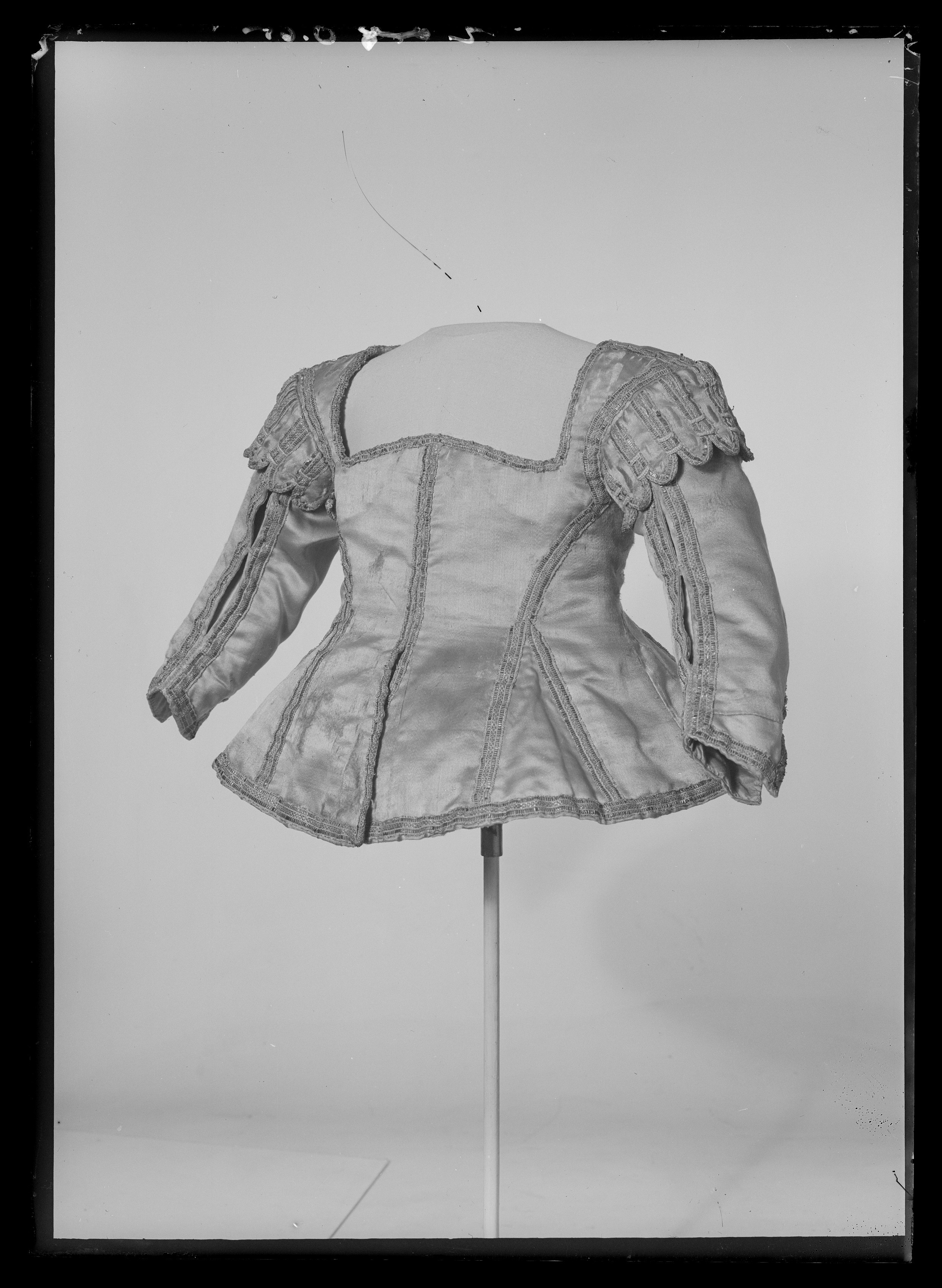 Tröja, klänningsliv, som med största sannolikhet burits av drottning Kristina vid ca 2 års ålder.