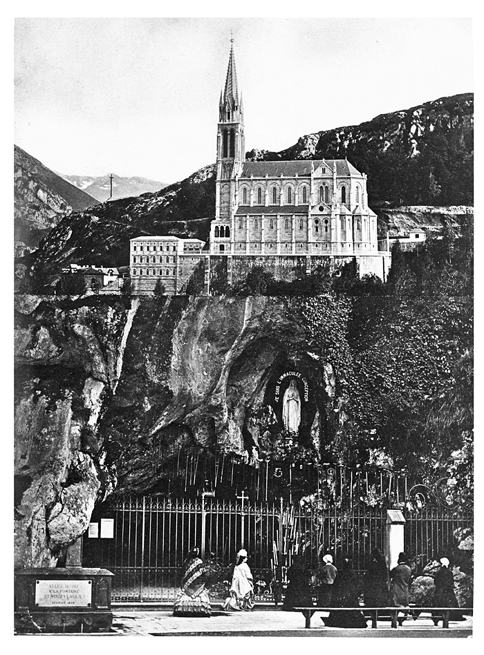Kyrka i Lourdes. Fotografierna LXVI:D.01.-47. är inköpta av Wilhelmina von Hallwyl, f. Kempe, i Tours, Bordeaux, Arcachon, Biarritz, Pau, Lourdes, Toulouse, Clermont-Ferrand och Lyon under en resa tillsammans med maken Walther von Hallwyl, modern Johanna Kempe, döttrarna Ellen och Irma samt fröken Caroline Pflaum. Familjen reste till Paris, genom södra Frankrike och Pyreneerna samt åter över Schweiz, 6 september - 31 oktober 1886.