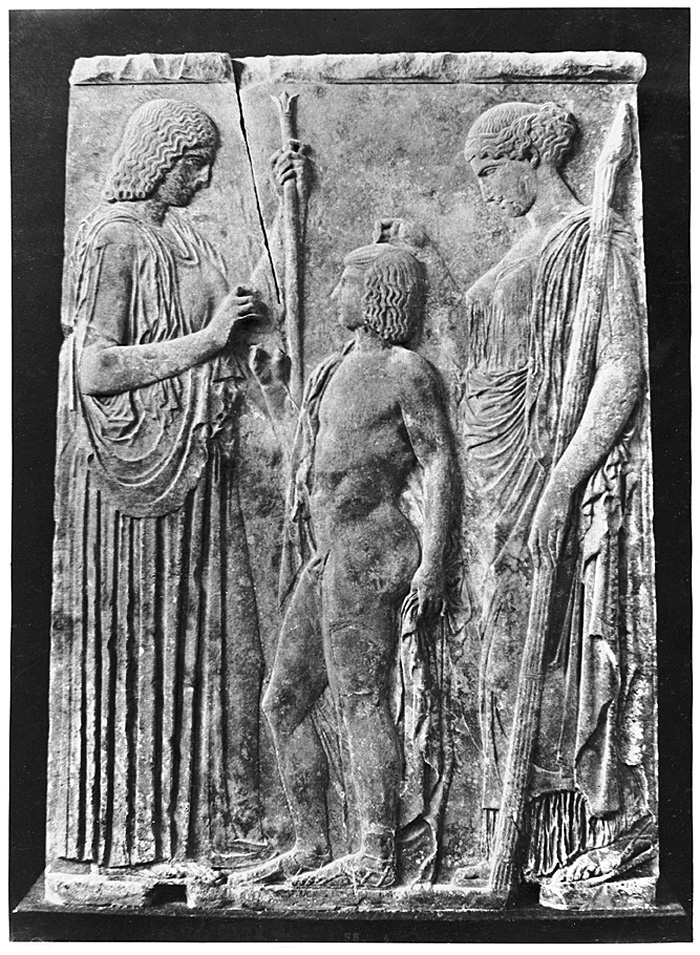 Fotografi. Relief från Eleusis. Aten, Grekland.