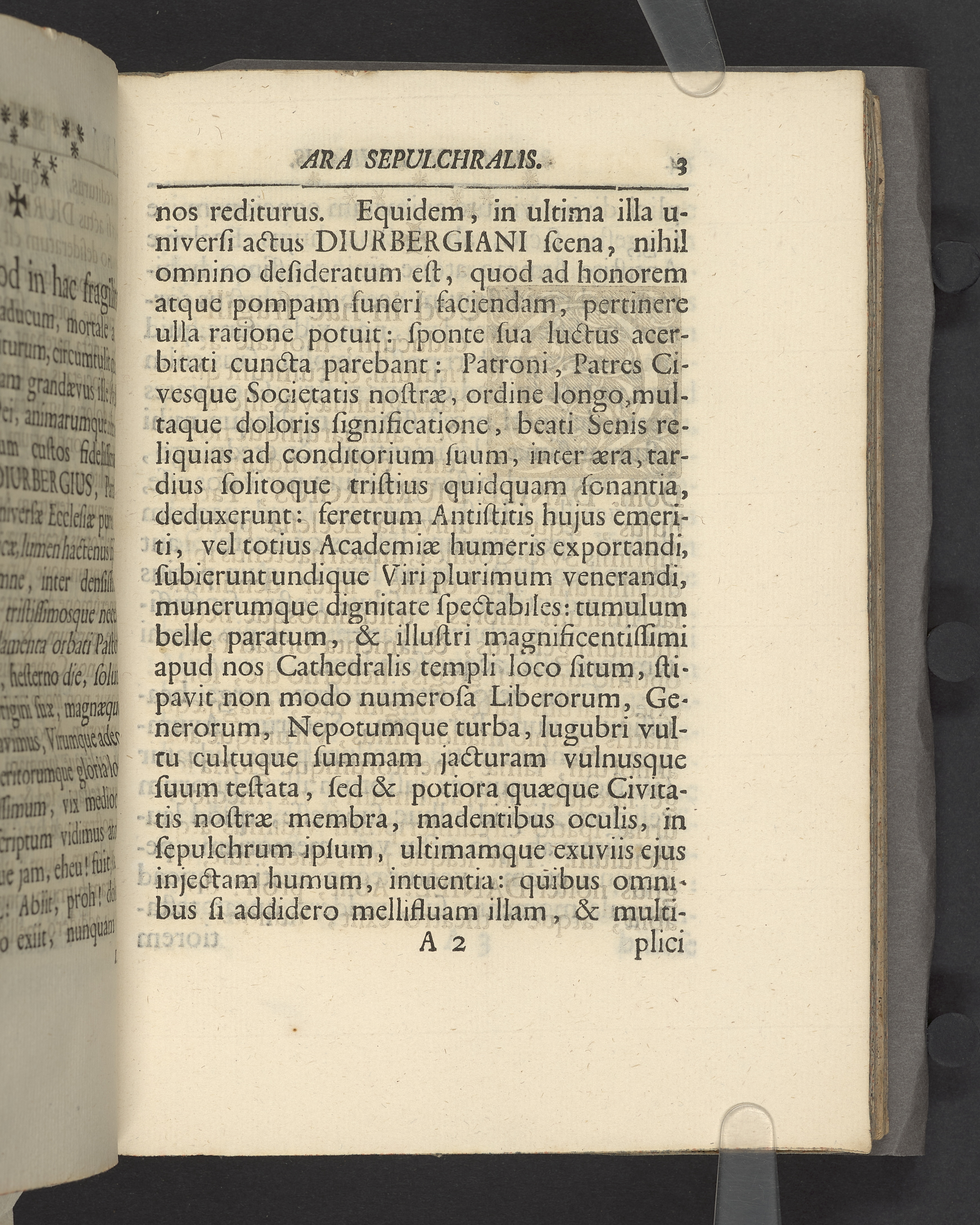 Ara sepulchralis, in tumolo... Danielis Diurbergii... postridie exequiarum XI Junii MDCCXXXVI... ab Elia Frondin...