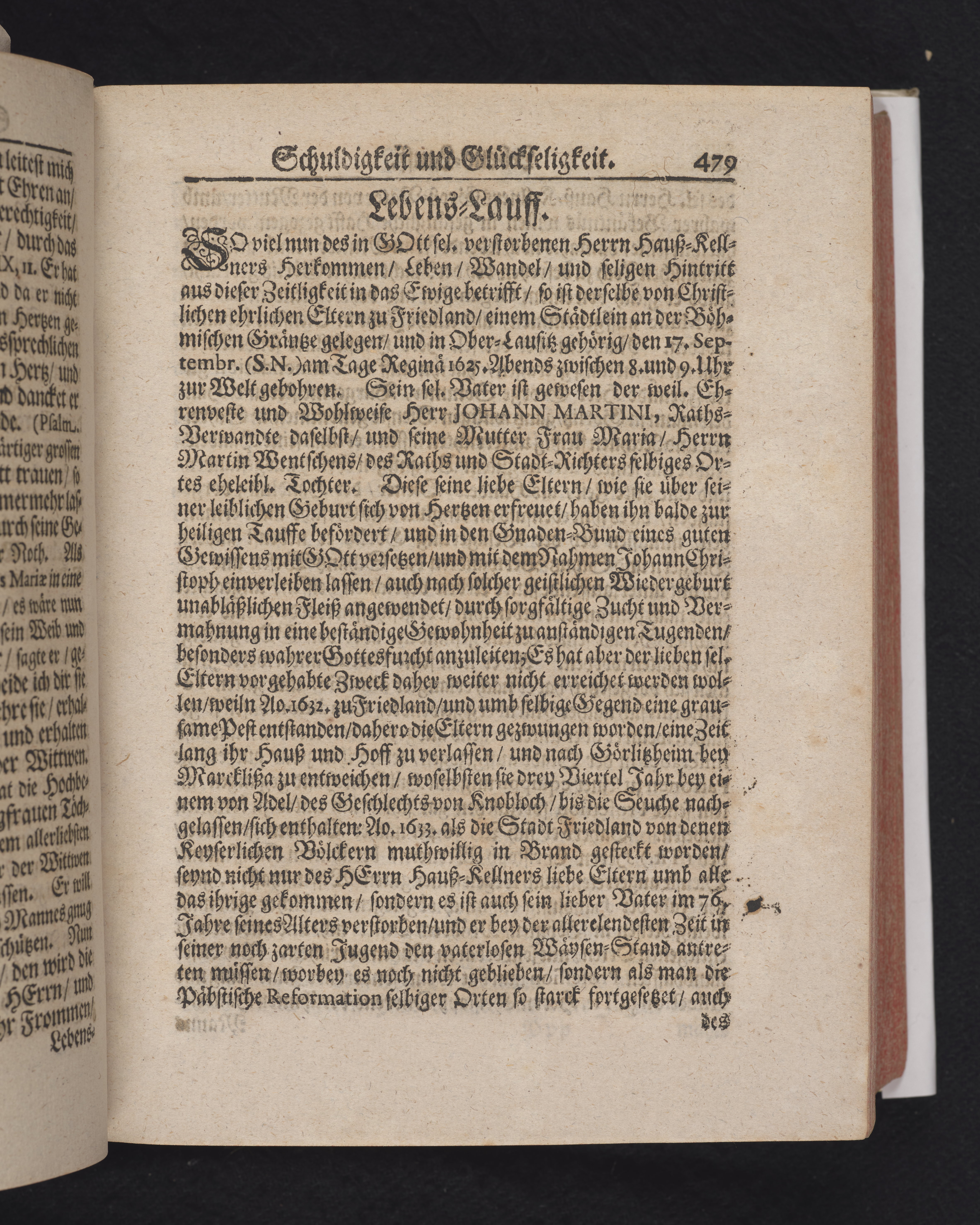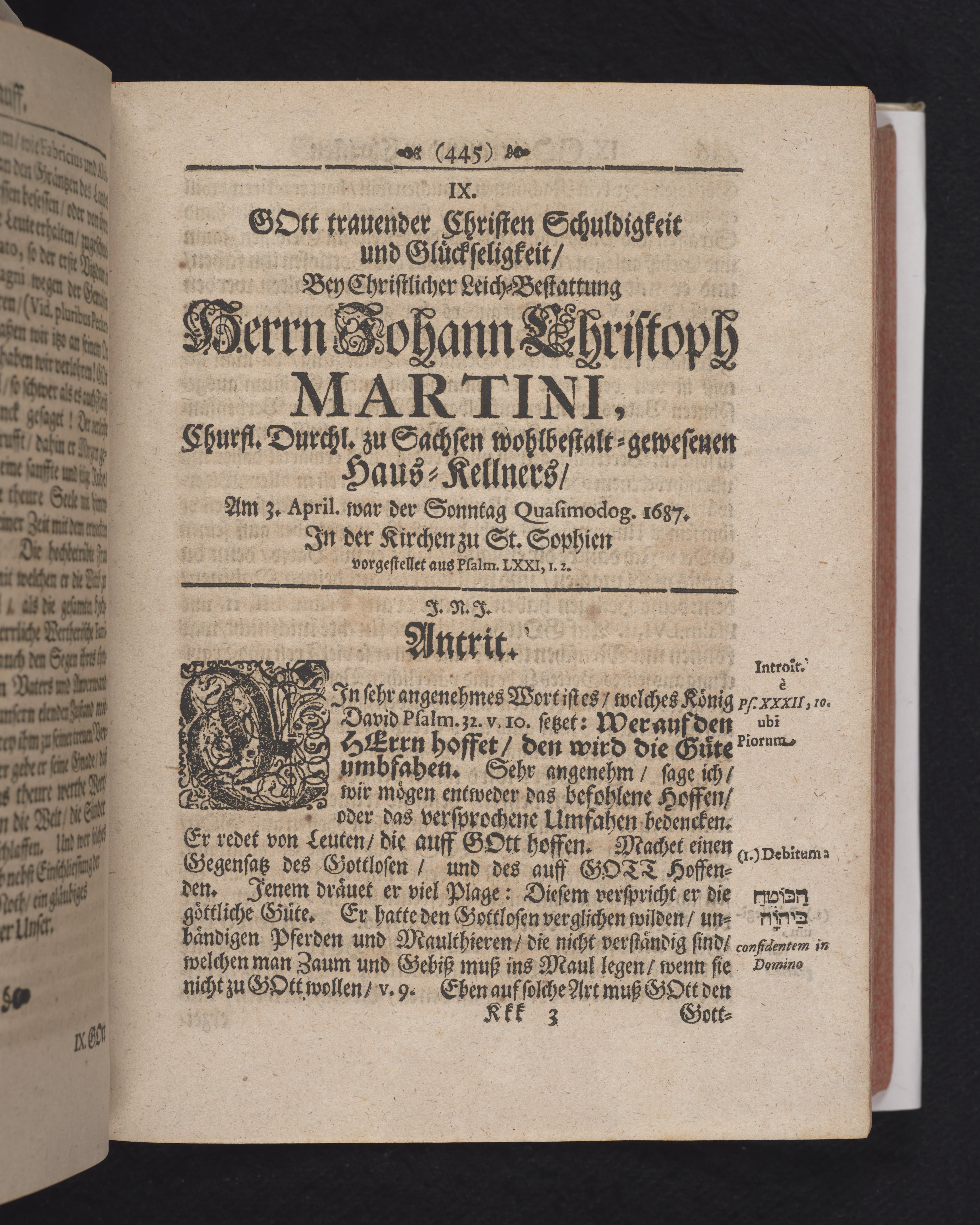 Gott trauender Christen Schuldigkeit und Glückseligkeit bey ... Leichbestattung des ... Johann Christoph Martini ... Churfürstl. ... Hauß-Kellners