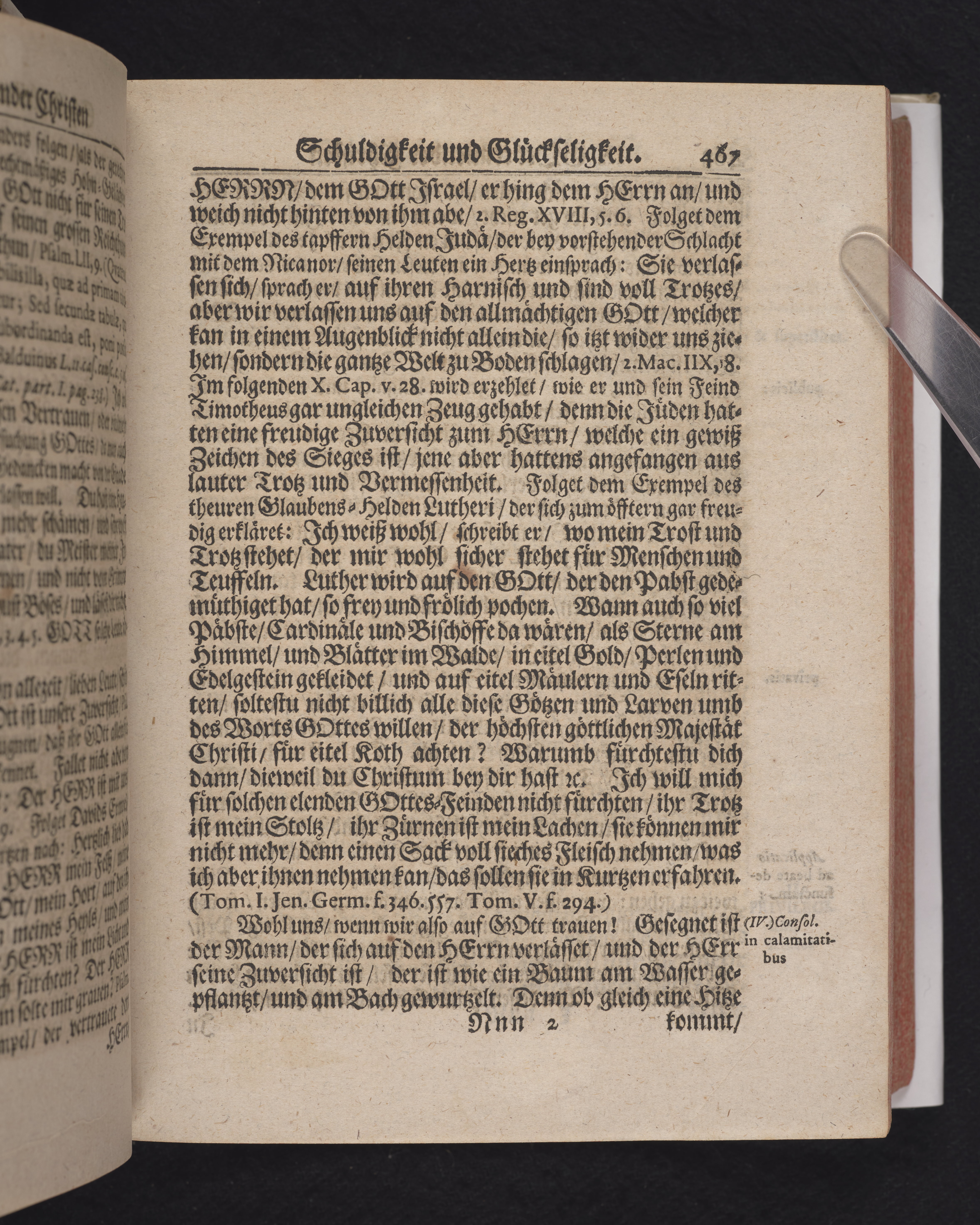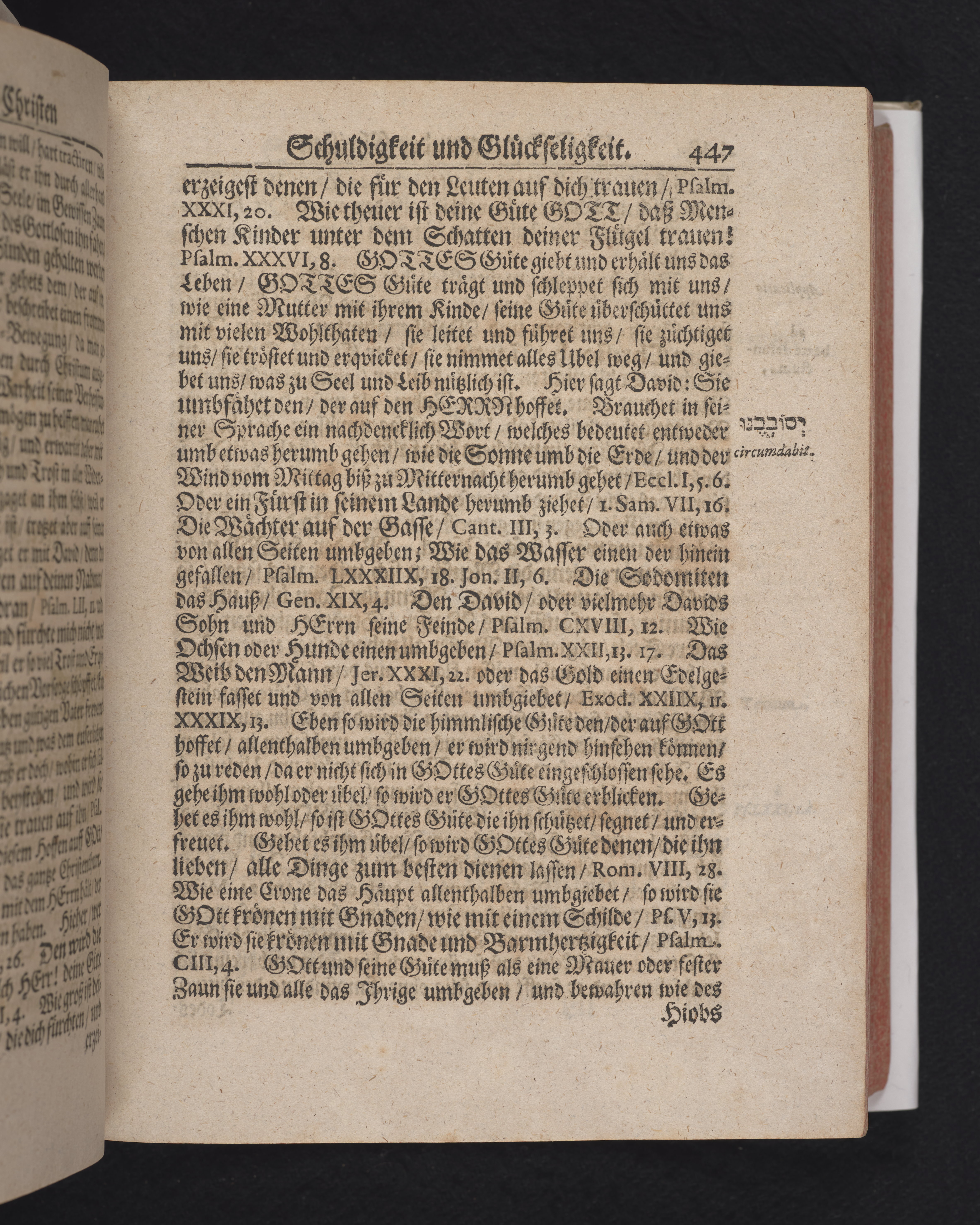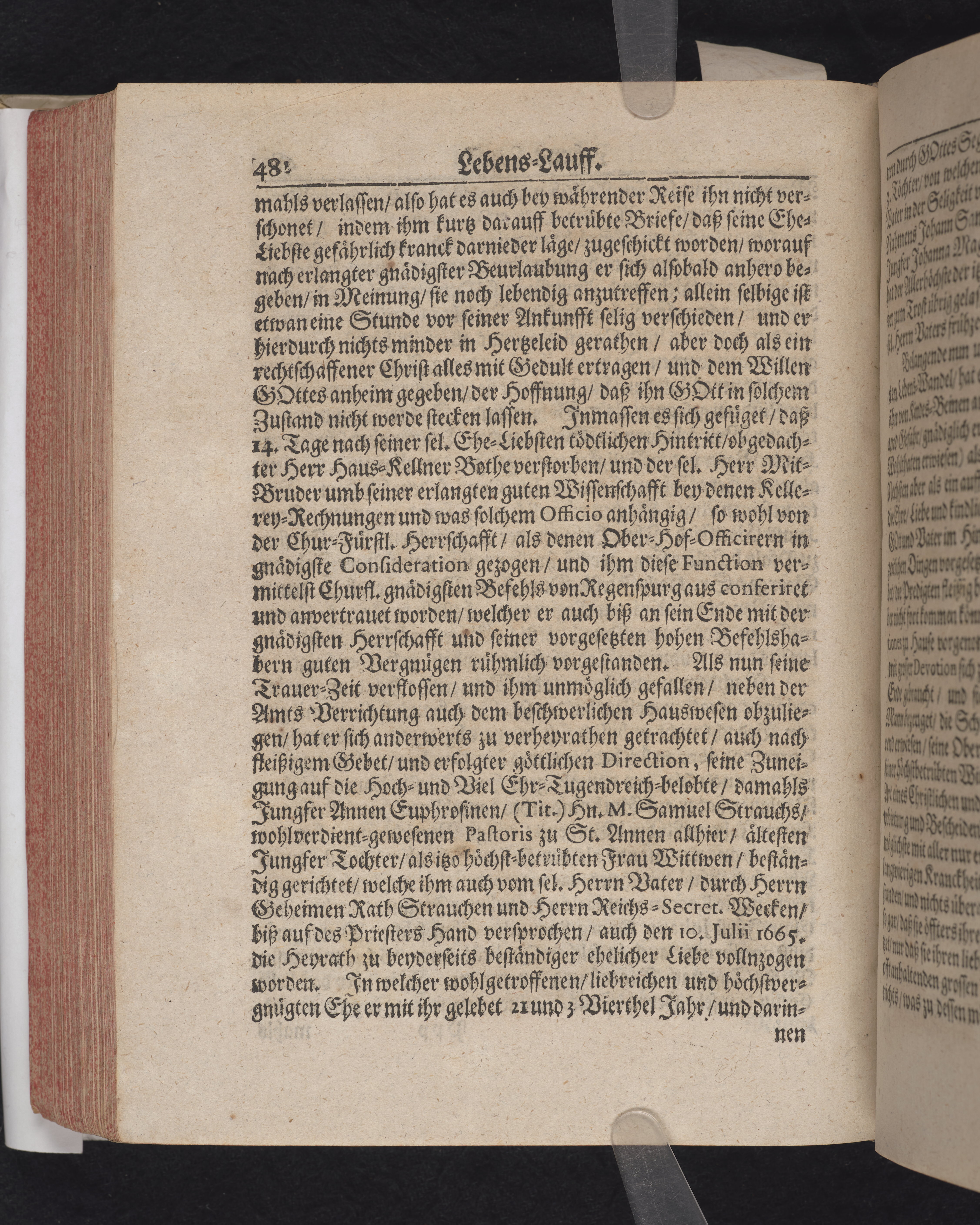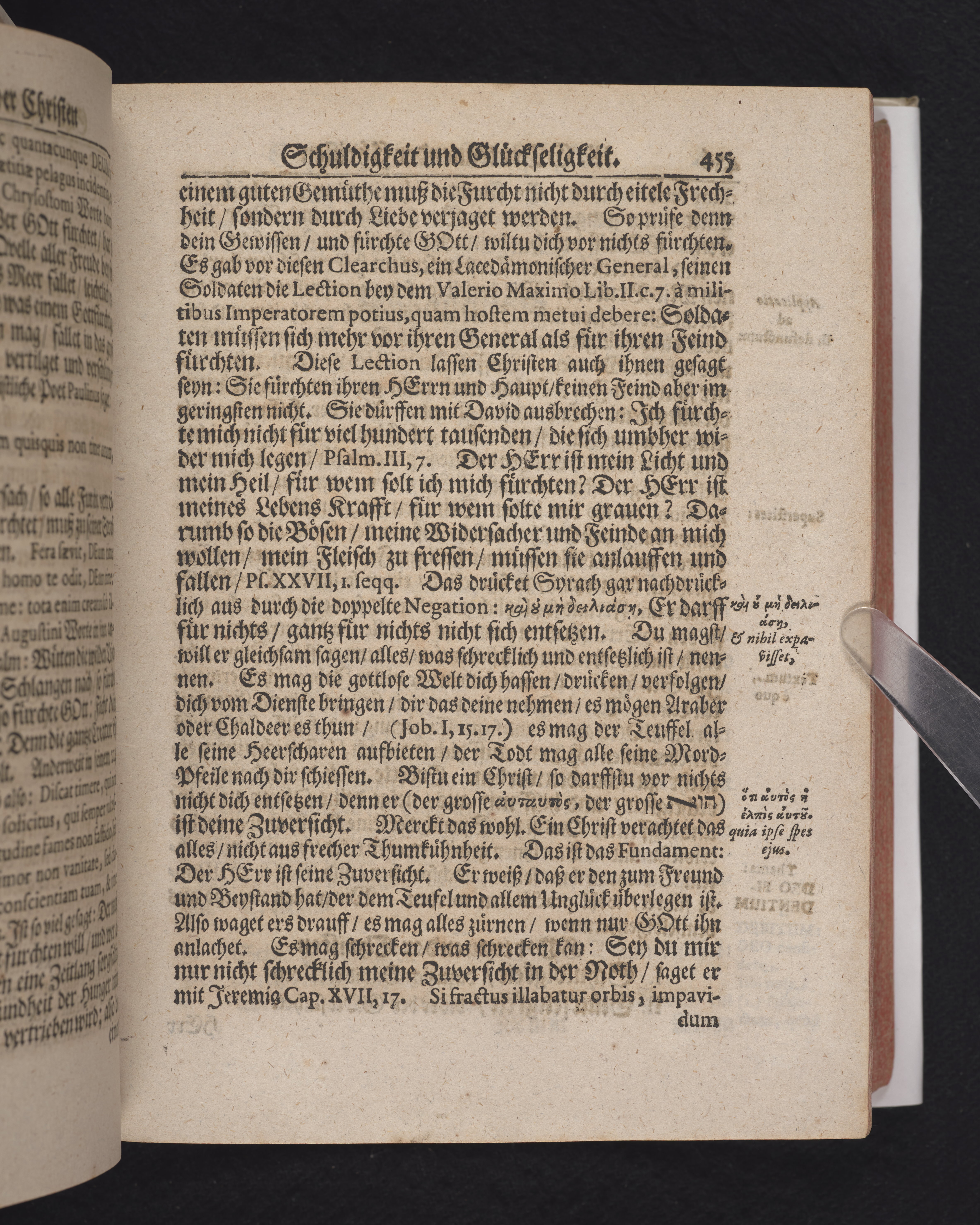 Ingår i en utgiven samling med 28 likpredikningar av Samuel Benedikt Carpzov: Grünende Gebeine, oder Leich-Predigten... Tryckt innehållsförteckning och register. Handskriven innehållsförteckning över de 28 likpredikningarna med bläck på främre försättsbladet (recto och verso).