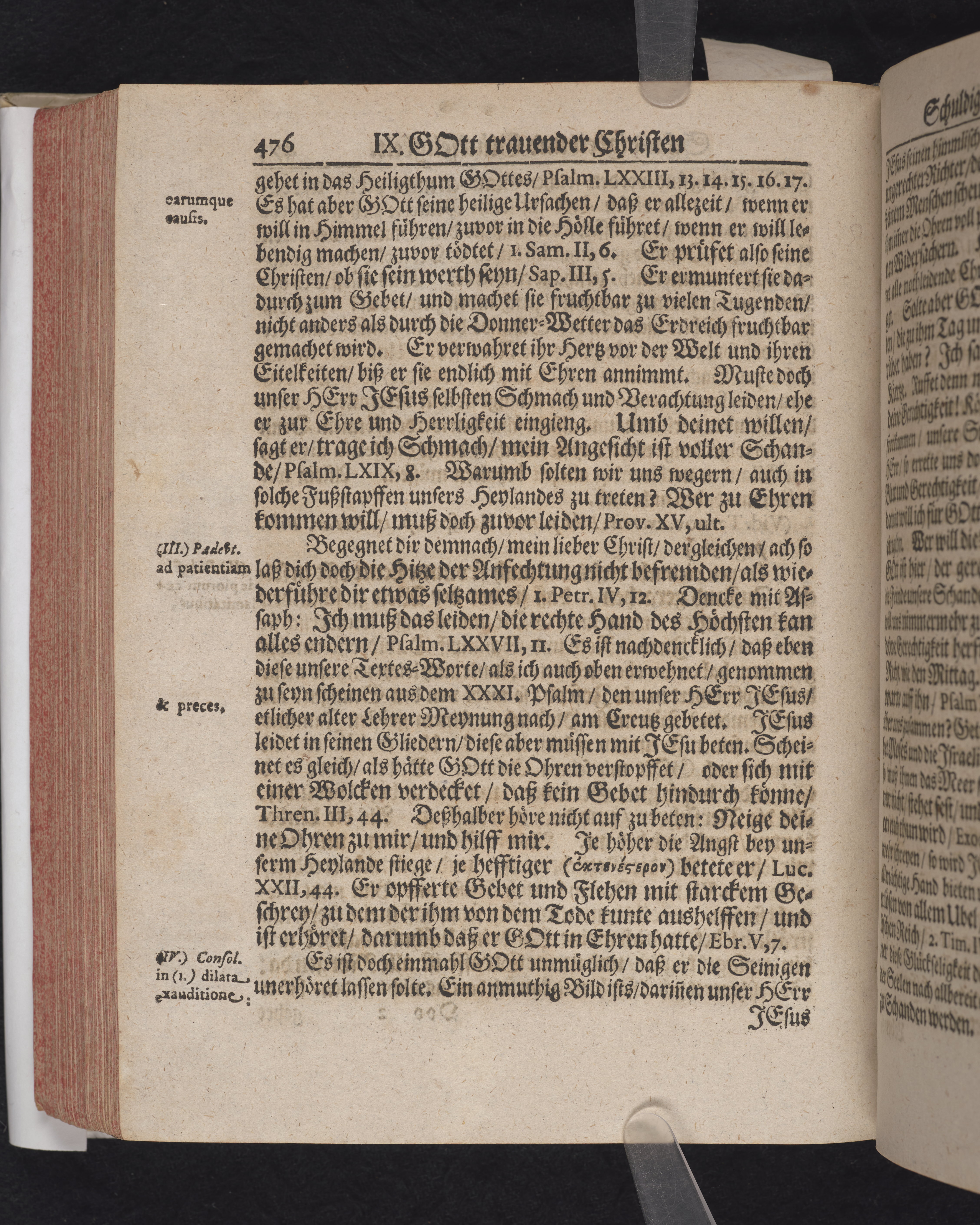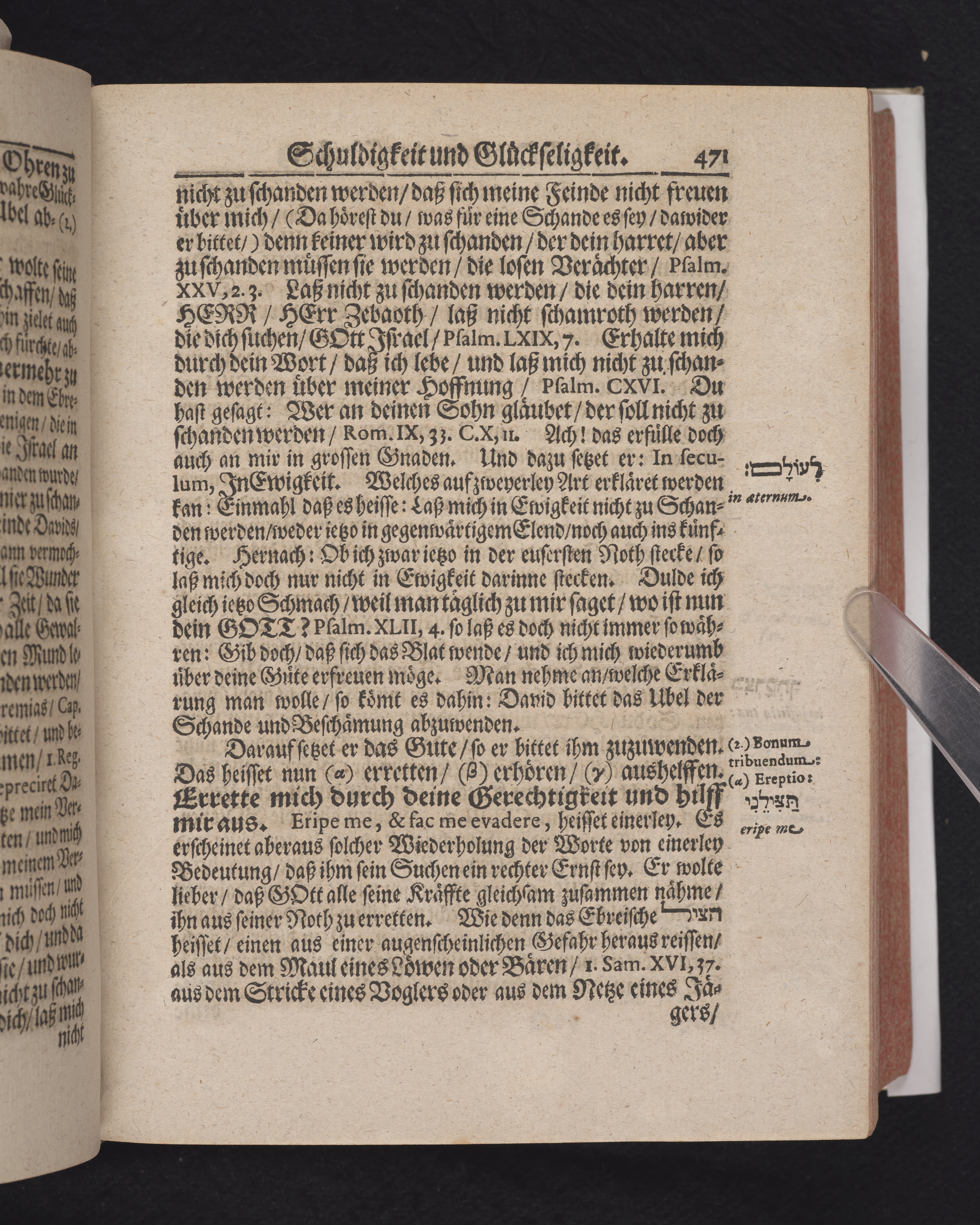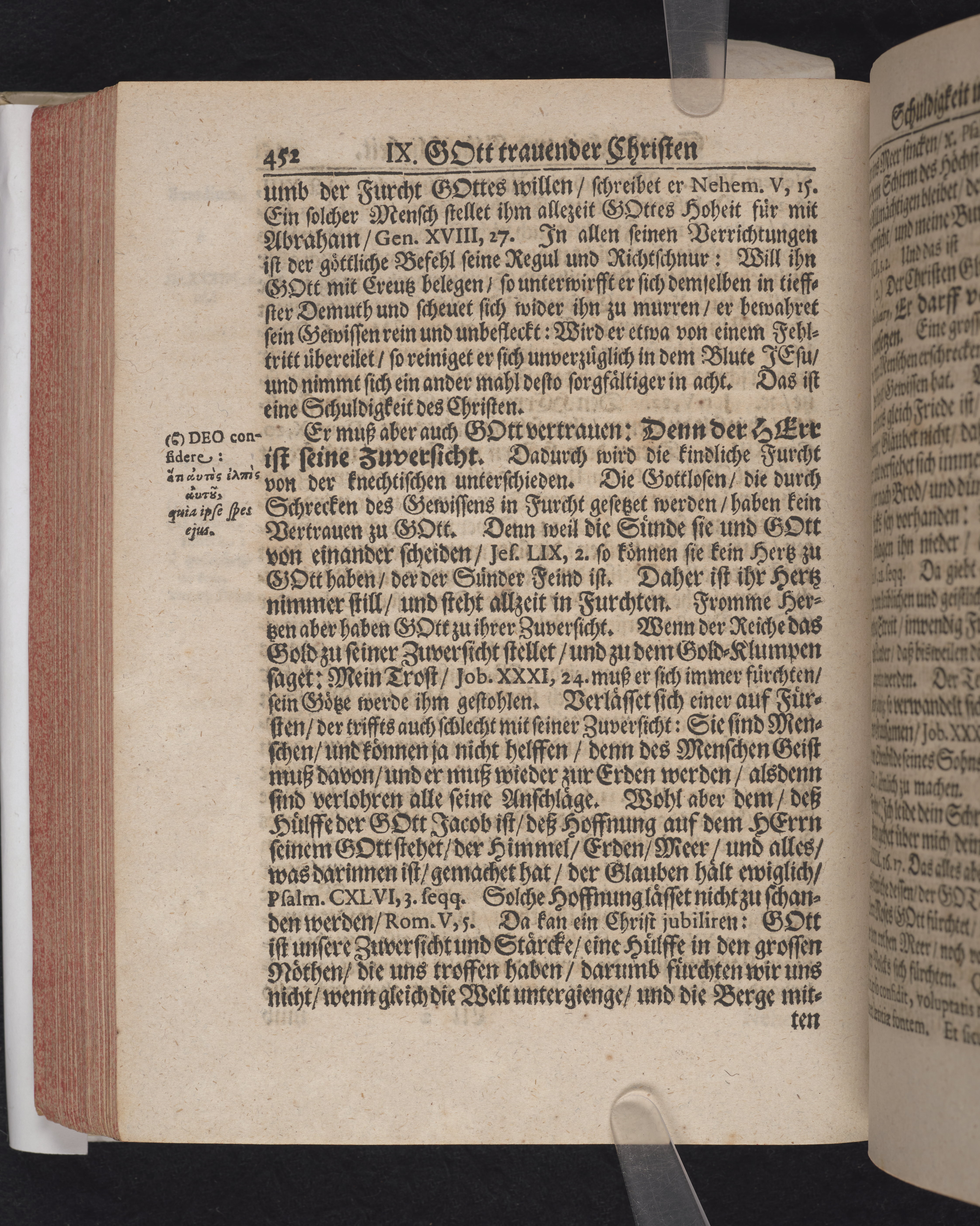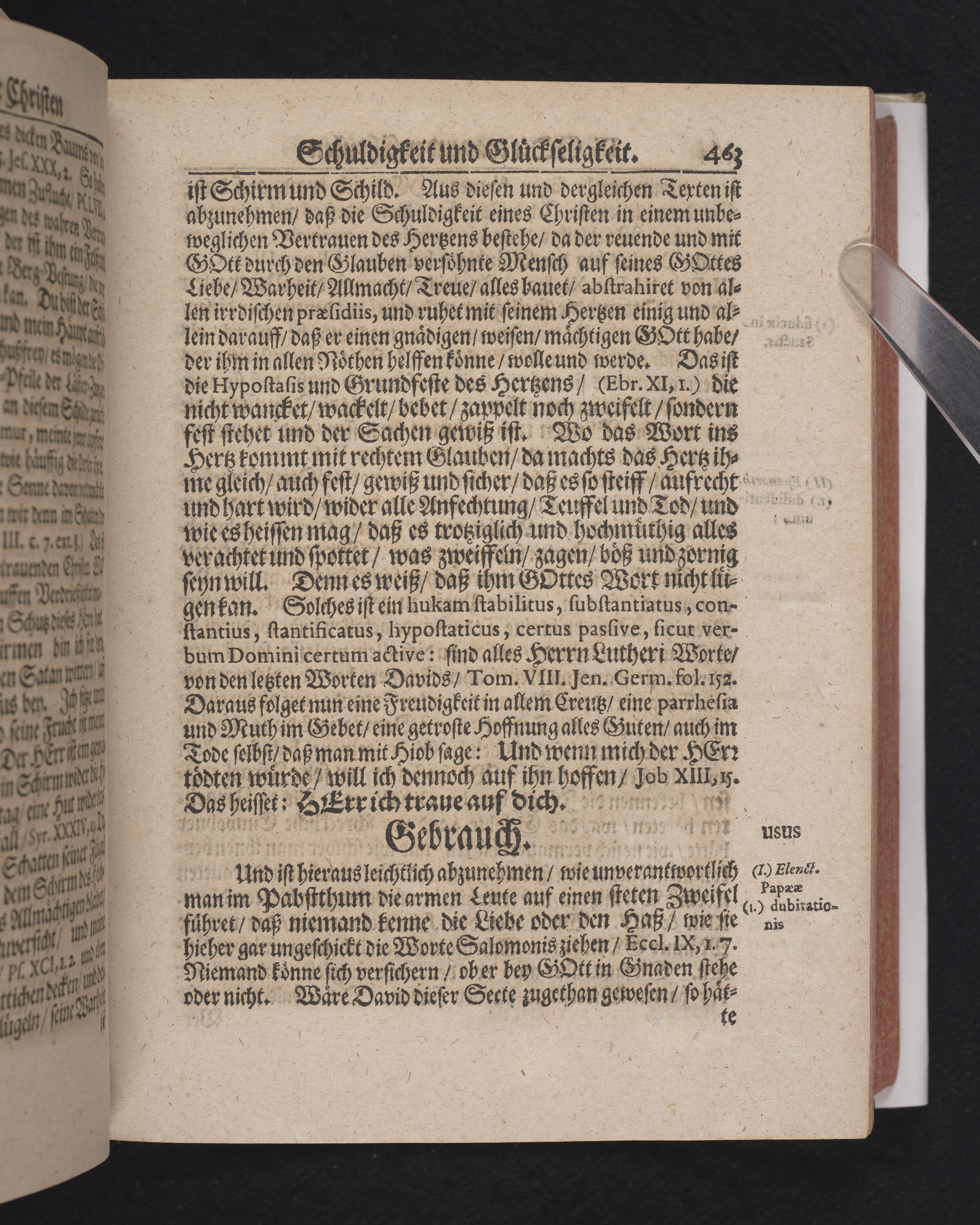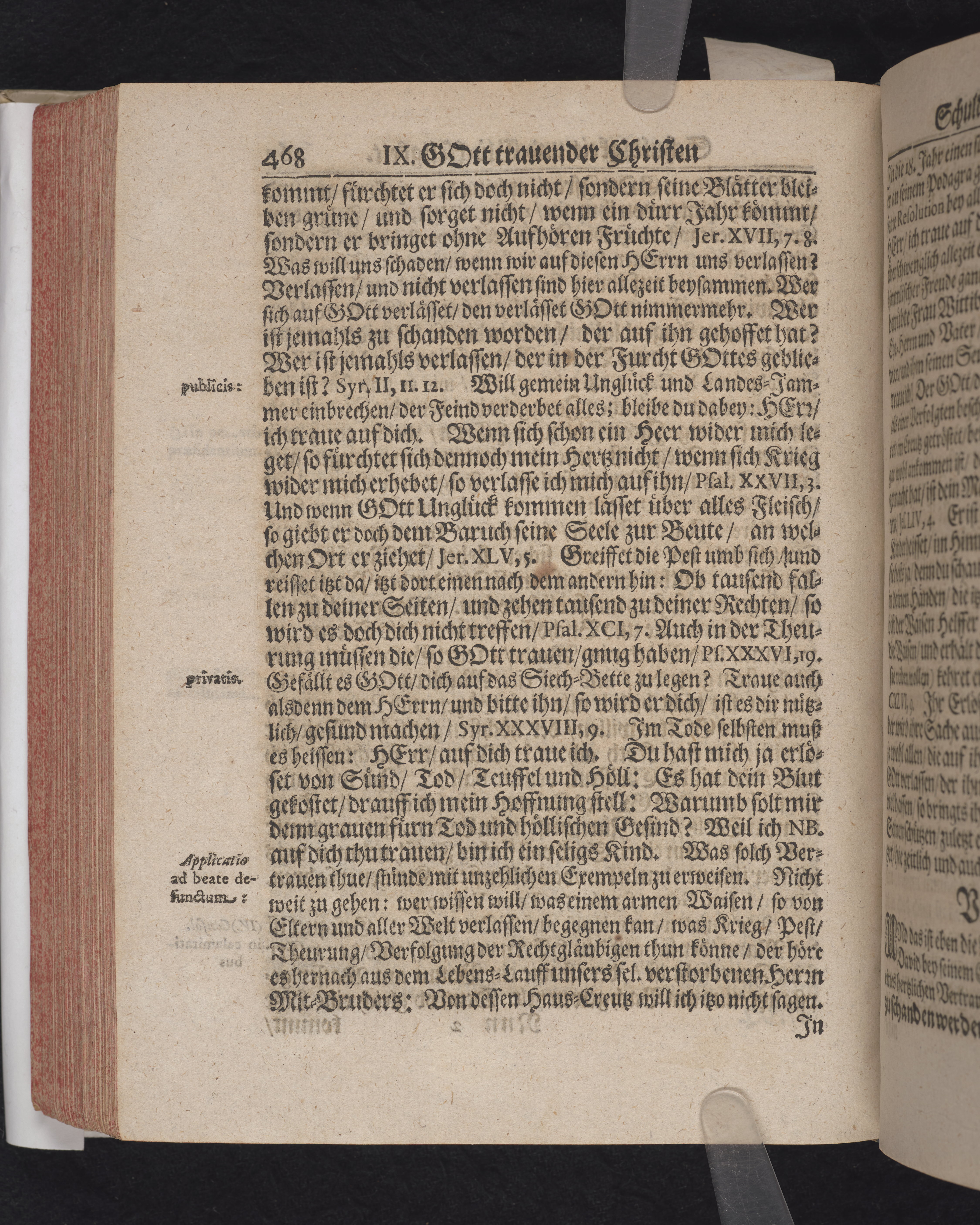 Ingår i en utgiven samling med 28 likpredikningar av Samuel Benedikt Carpzov: Grünende Gebeine, oder Leich-Predigten... Tryckt innehållsförteckning och register. Handskriven innehållsförteckning över de 28 likpredikningarna med bläck på främre försättsbladet (recto och verso).