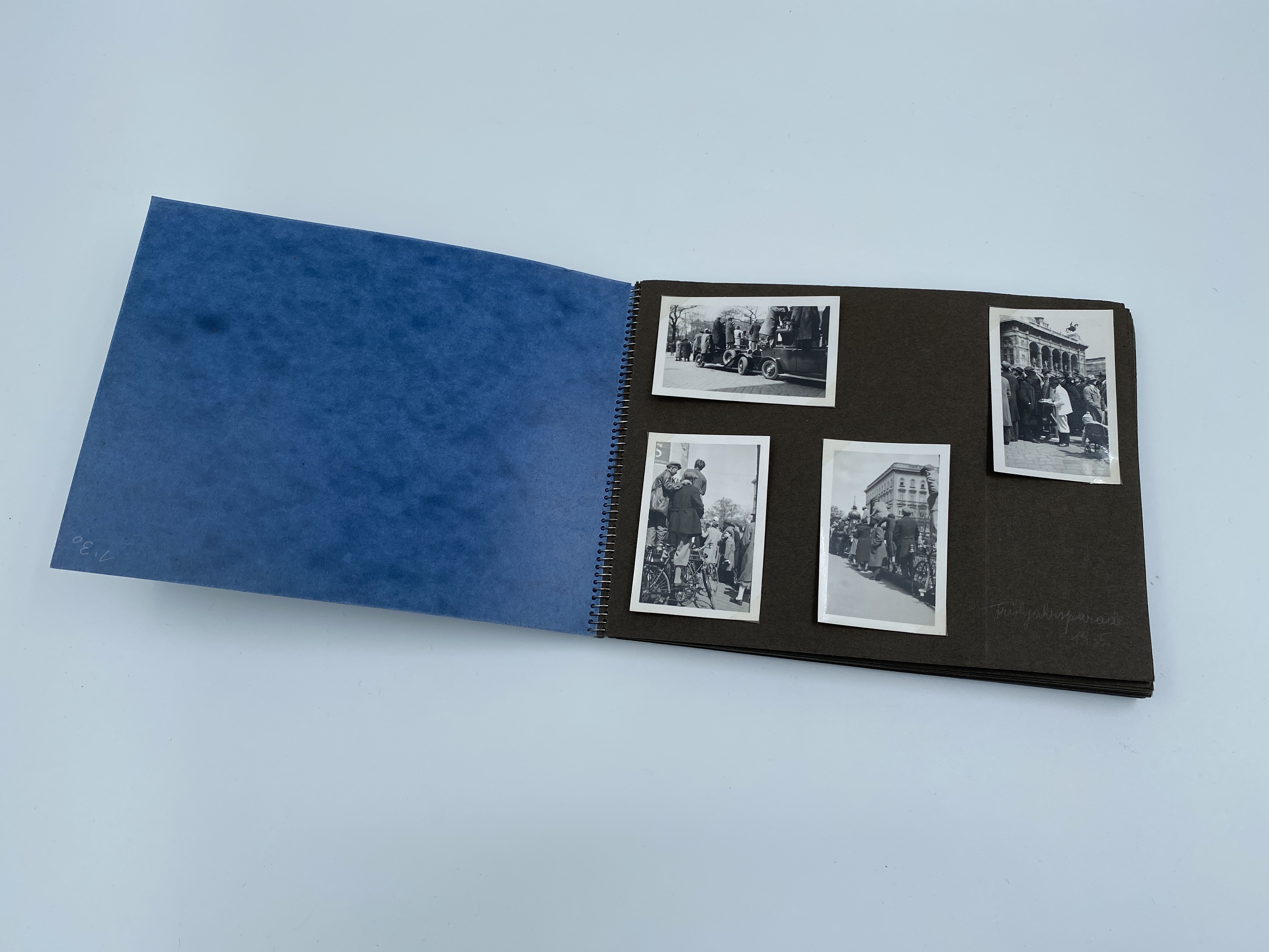 Fotoalbum som tillhört Auguste Sommer. Blått album med ringpärm. På framsidan finns texten "Förspelet och återseendet 1948". I albumet finns fotografier från (troligen) Wien innan och efter andra världskriget.