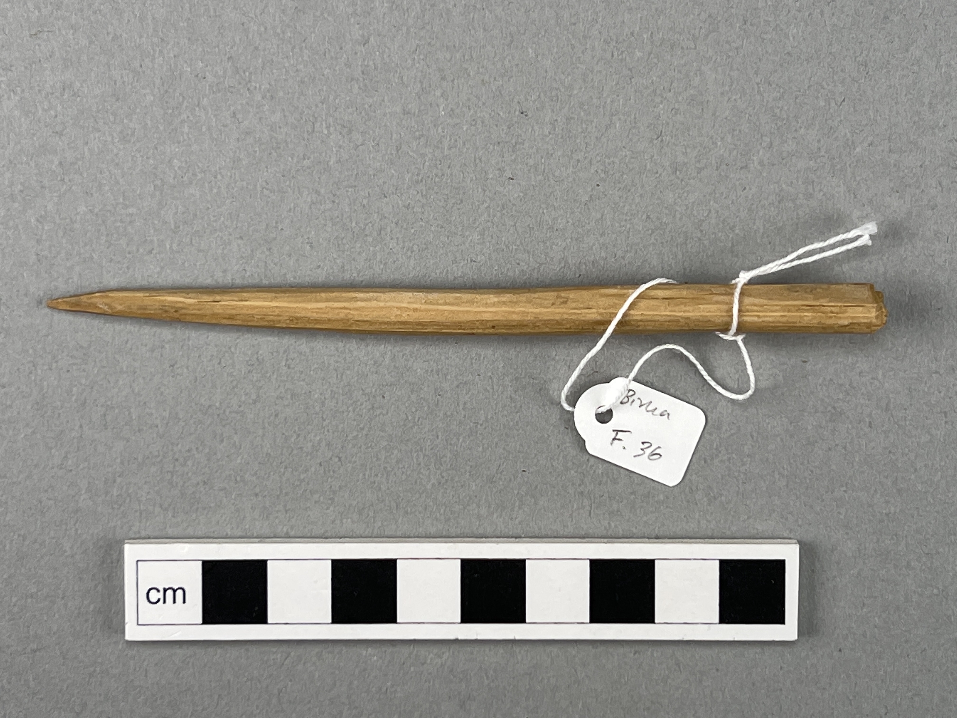Täljd vässad pinne. Avsiktligt avbruten under tillverkningen.