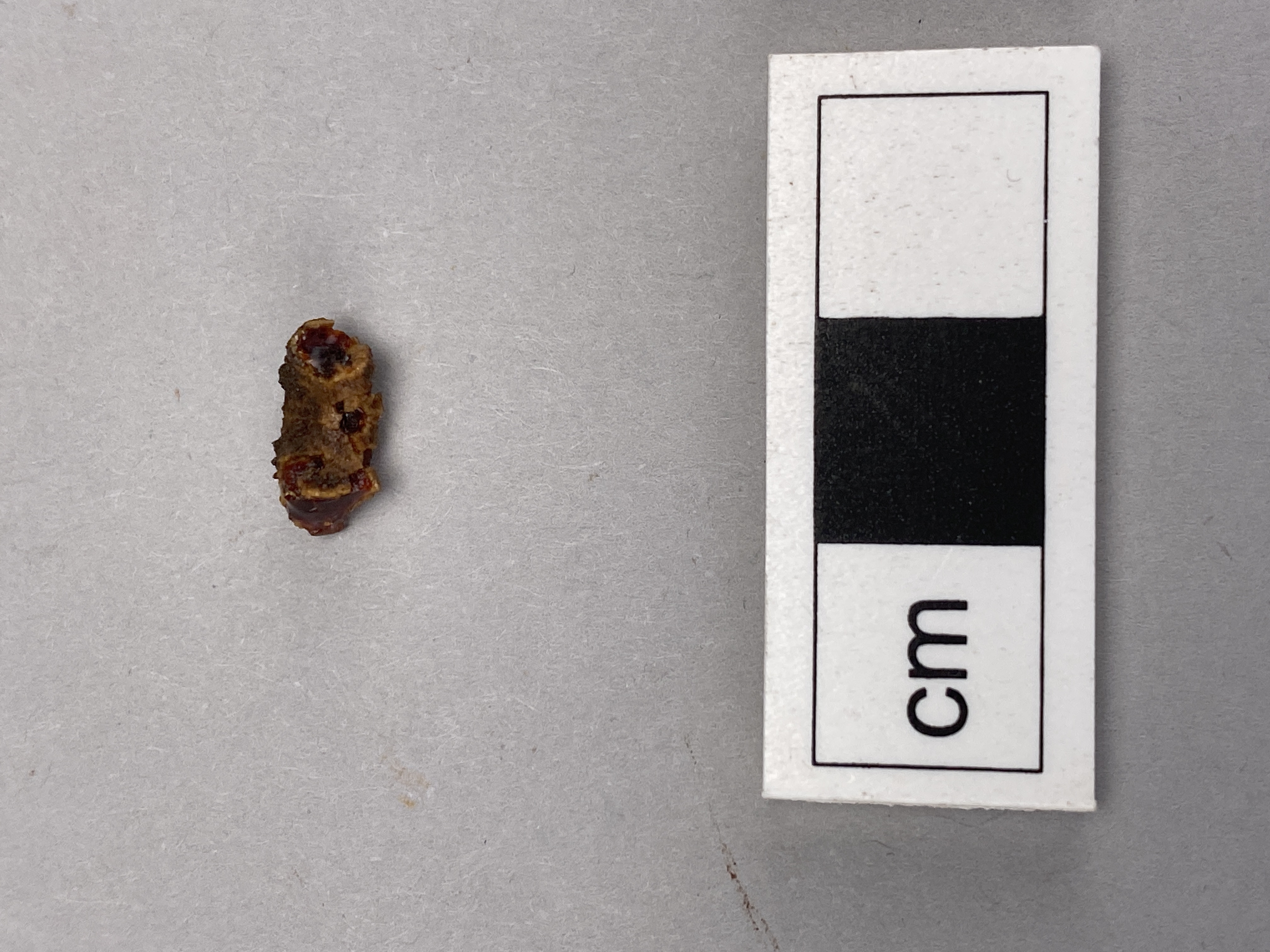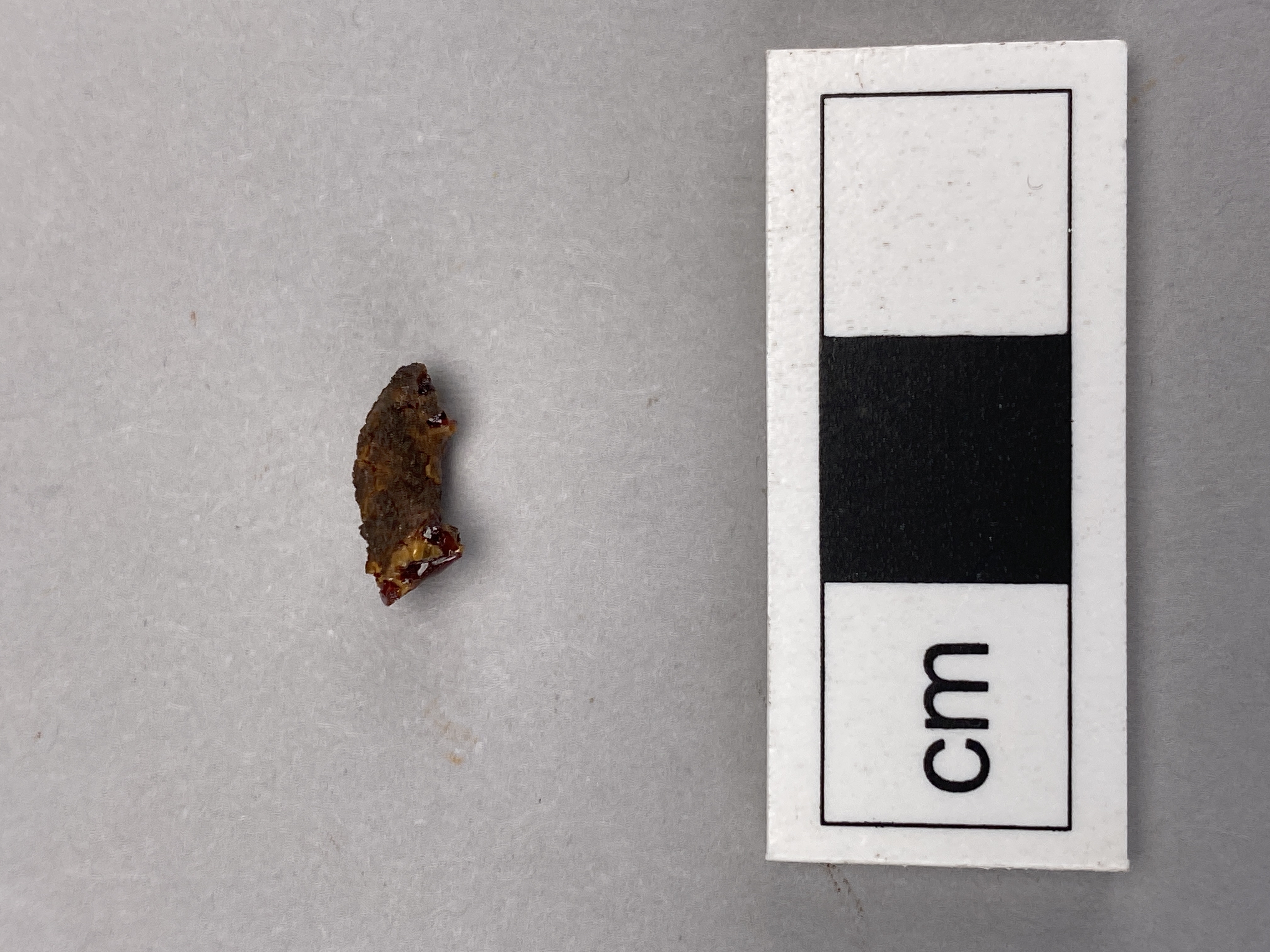 Avbruten fragment av bärnstenspärla. OPTIR-analys 2024.