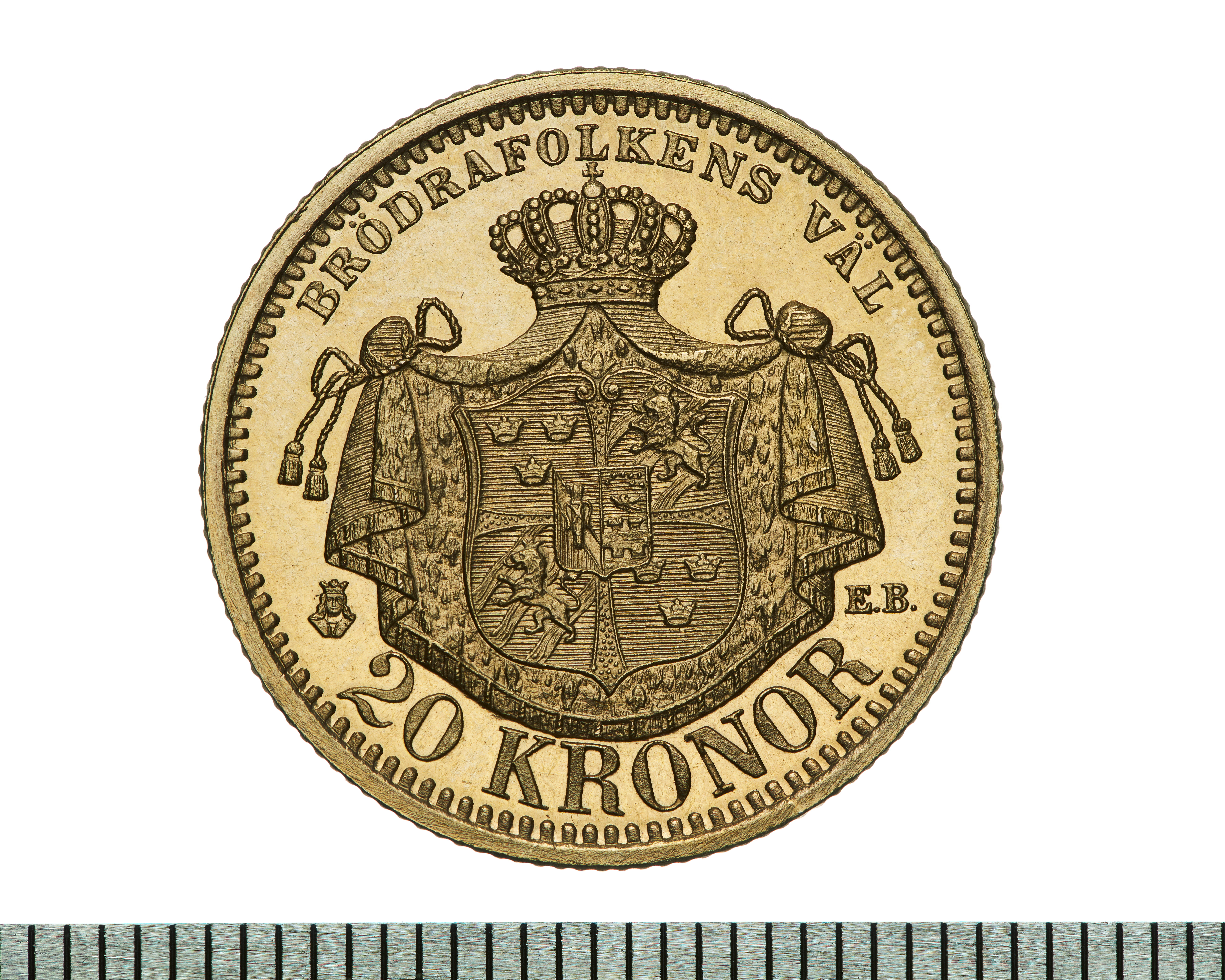 Upphov: Oscar II av Sverige och Norge. Media: Bonnevier, Helena. Ekonomiska museet - Kungliga myntkabinettet/SHM, (CC BY 4.0) Du får bearbeta och dela verket för alla ändamål, även kommersiella, så länge du anger upphovsperson och licensgivare.
