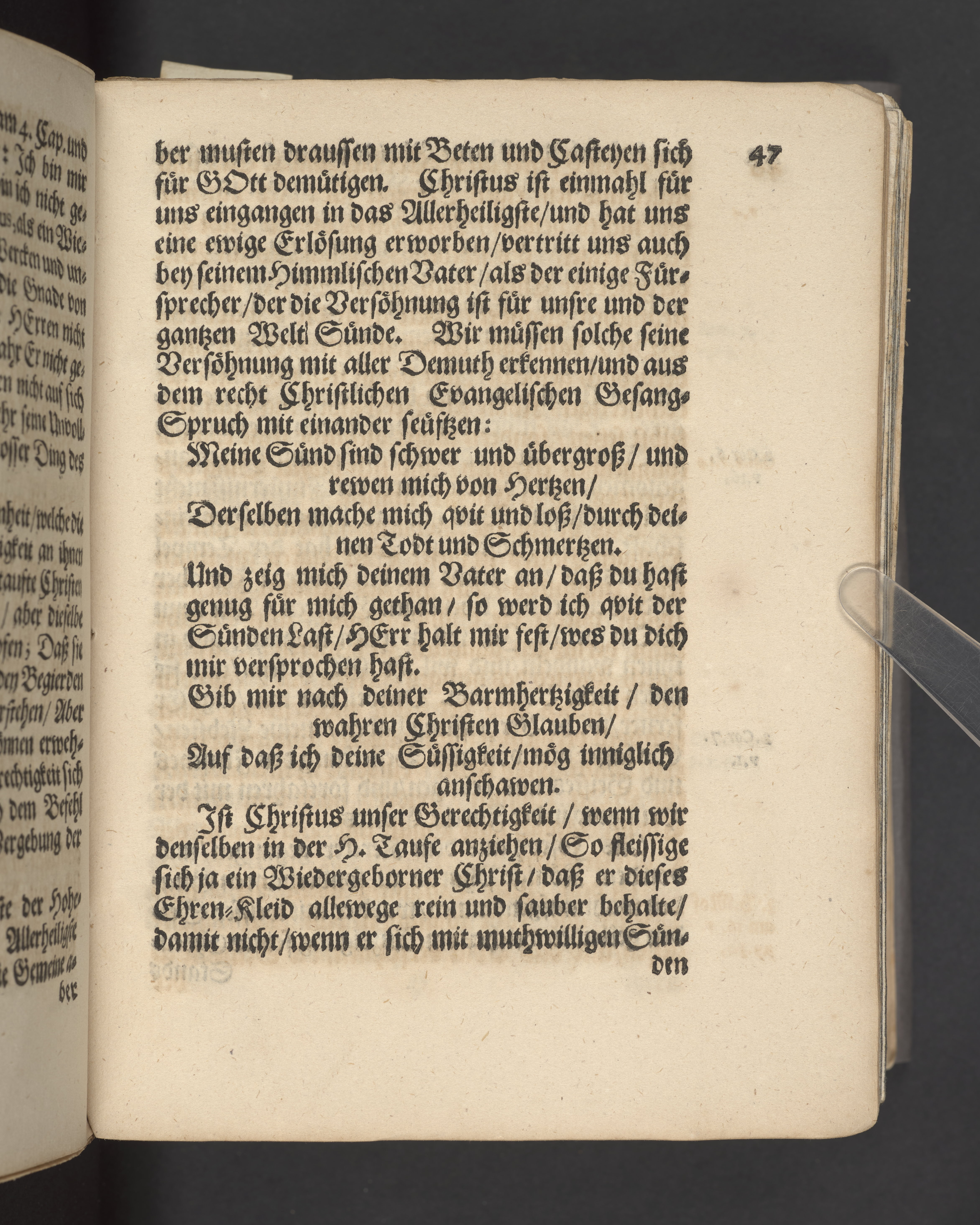 Förgyllt snitt. Högst upp på titelsidan anteckning i bläck med uppgifter om födelse- och dödsdatum för den avlidna.