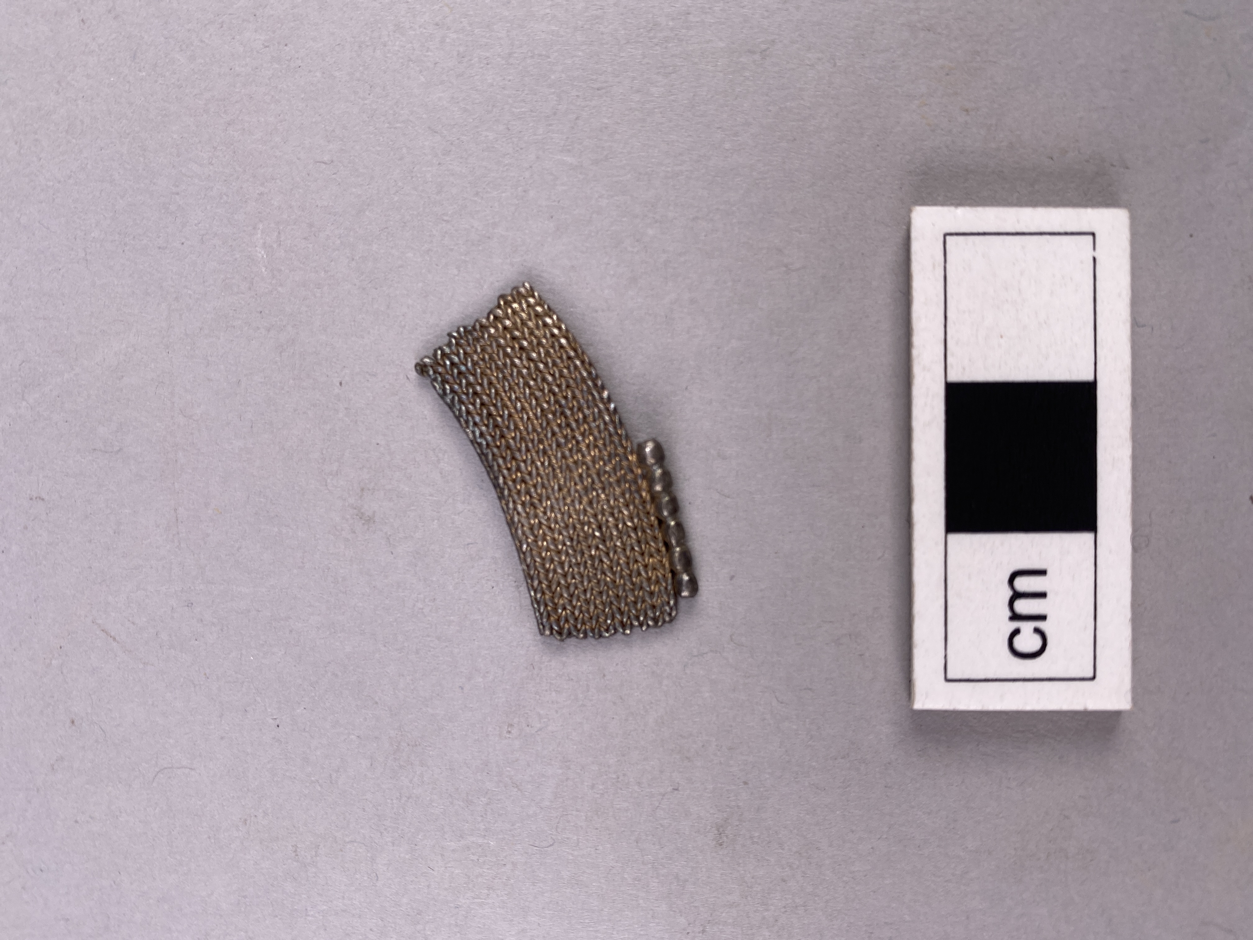 Ramfragment av pärlade och snodda silvertrådar som tillhört en smyckebrakteat.