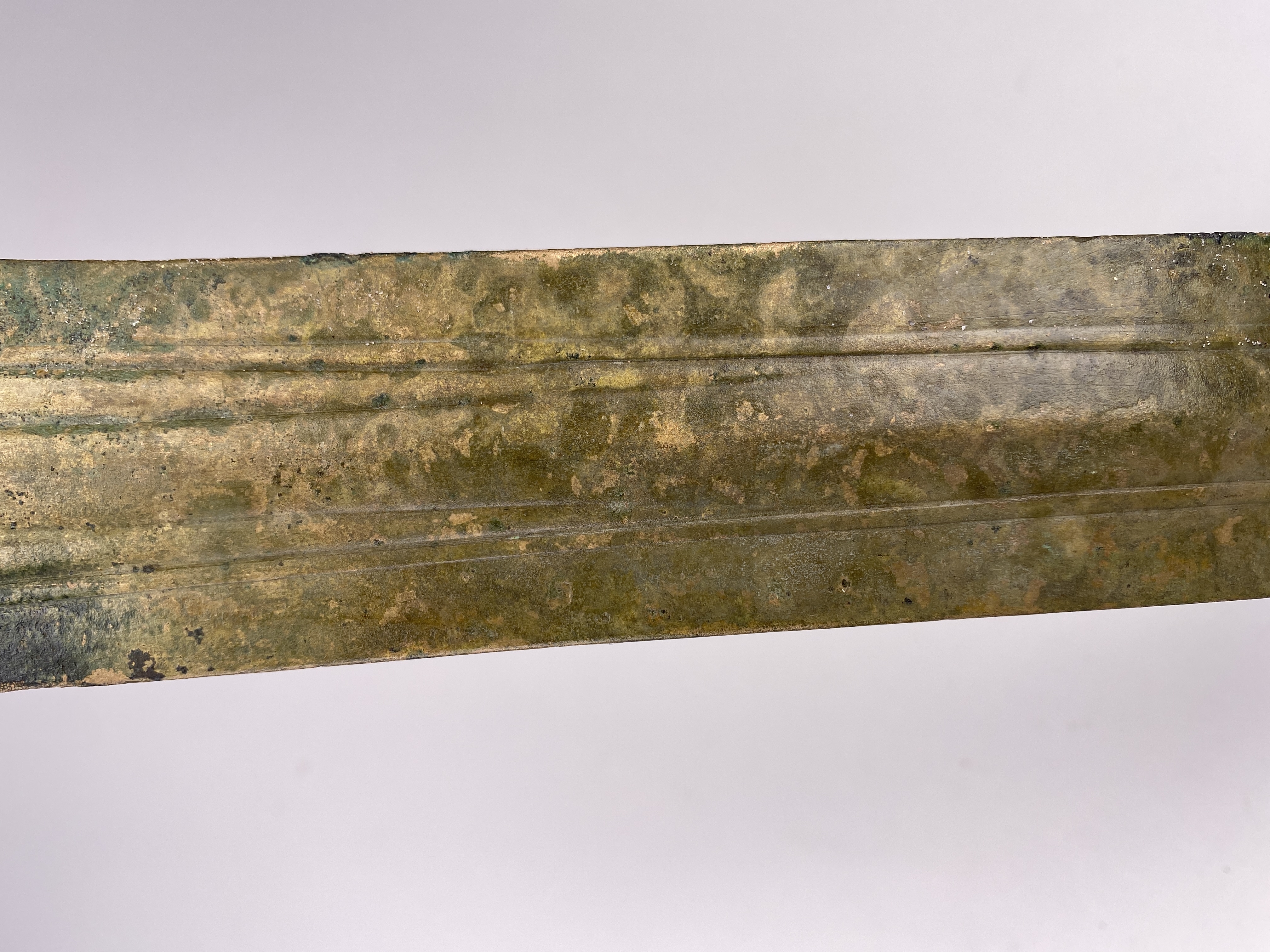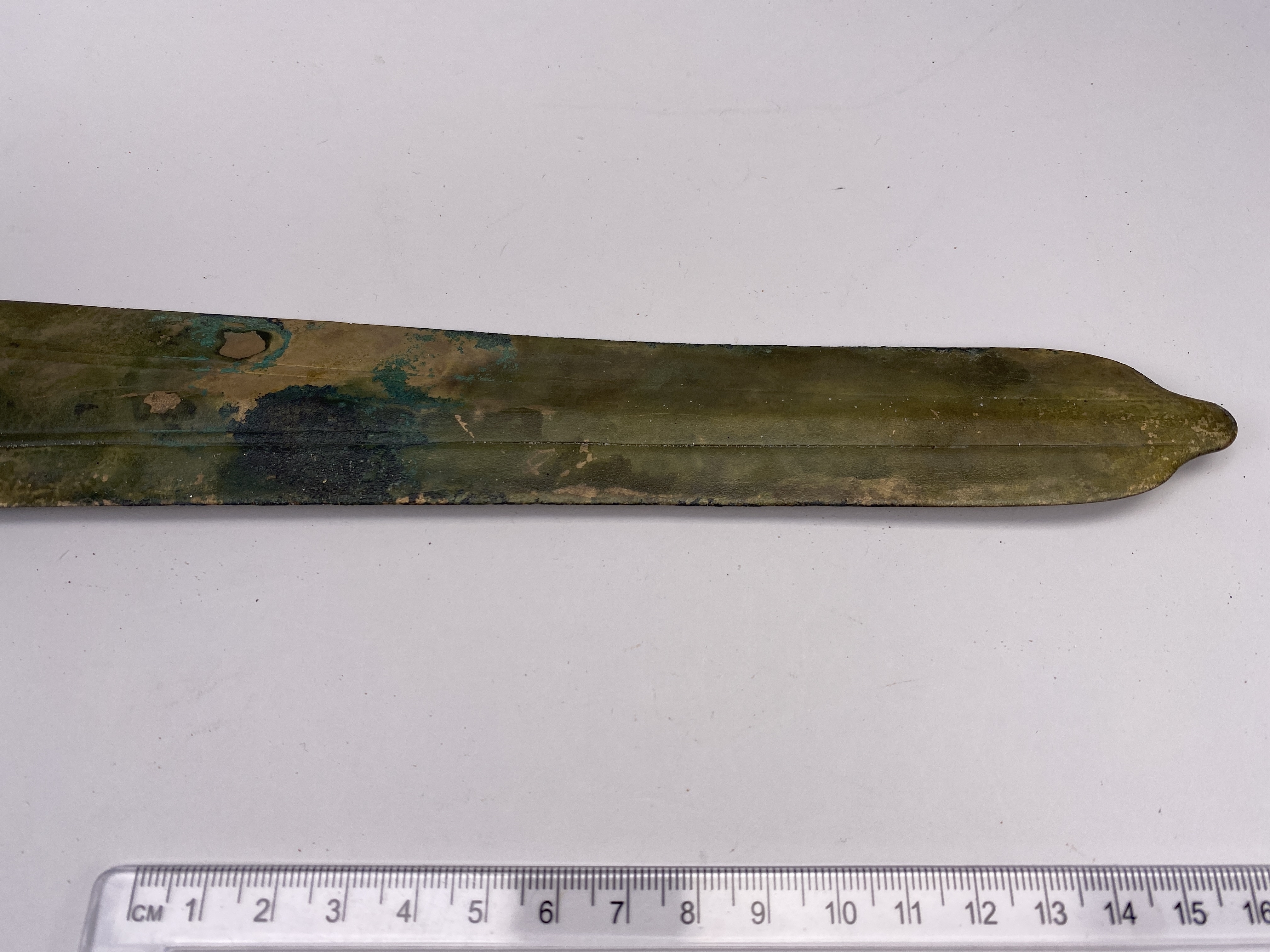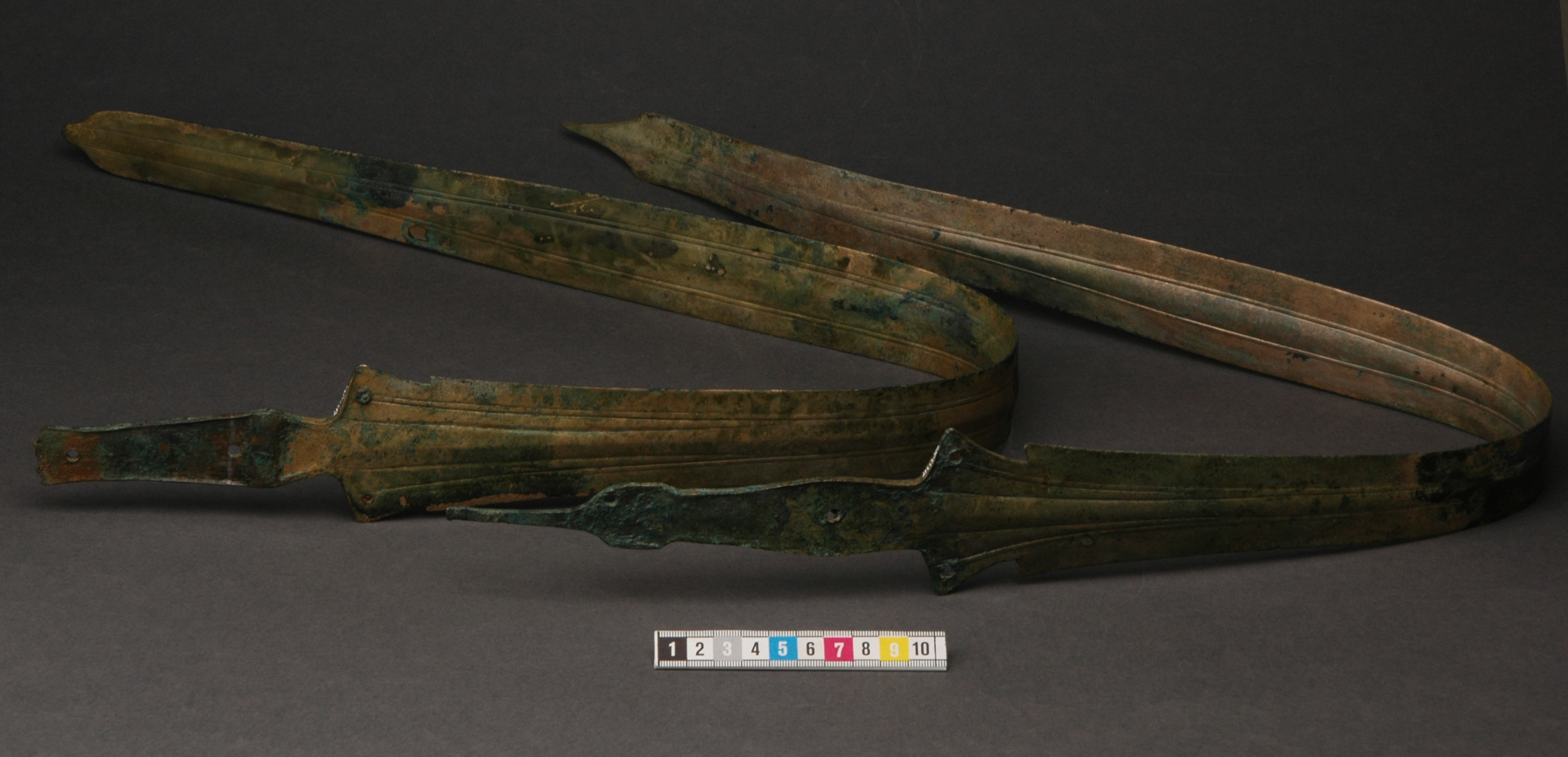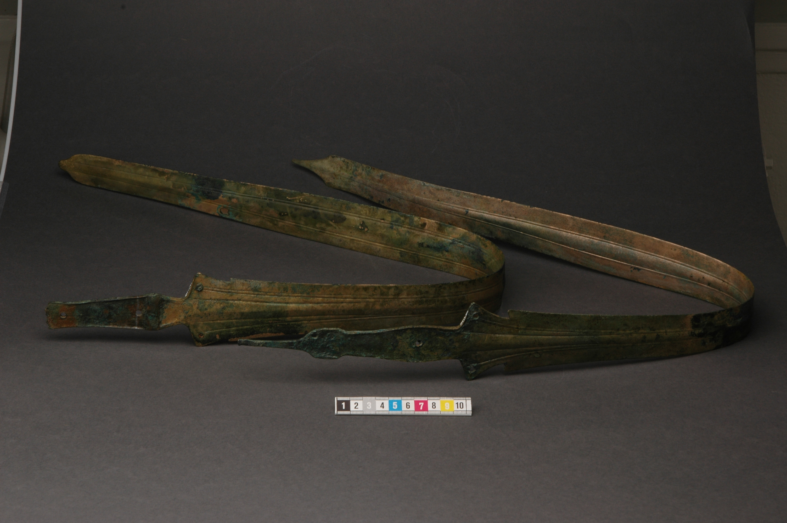 Ett hallstattsvärd av brons, böjd på mitten med urnupen spets och trubbig udd. Svärdet är på vardera sidan av bladet försedd med en mittvulst och upphöjda ränder. Fästet har fyra nithål med en bevarad nit in situ. sprötet på fästet saknas. Förefaller vara något hårdare uppskärpt och välanvänt än det andra svärdet.