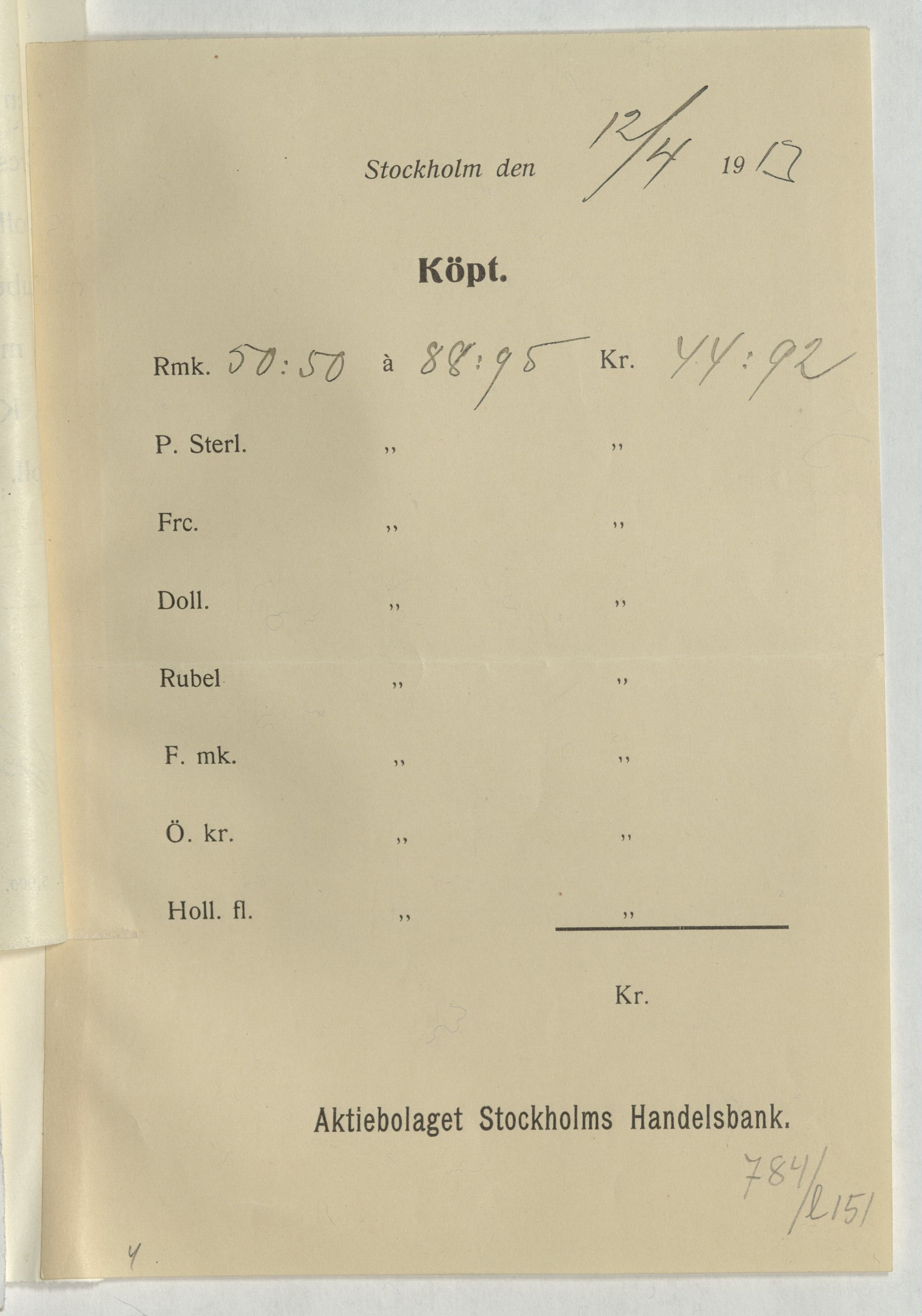 Verifikation från Aktiebolaget Stockholms Handelsbank