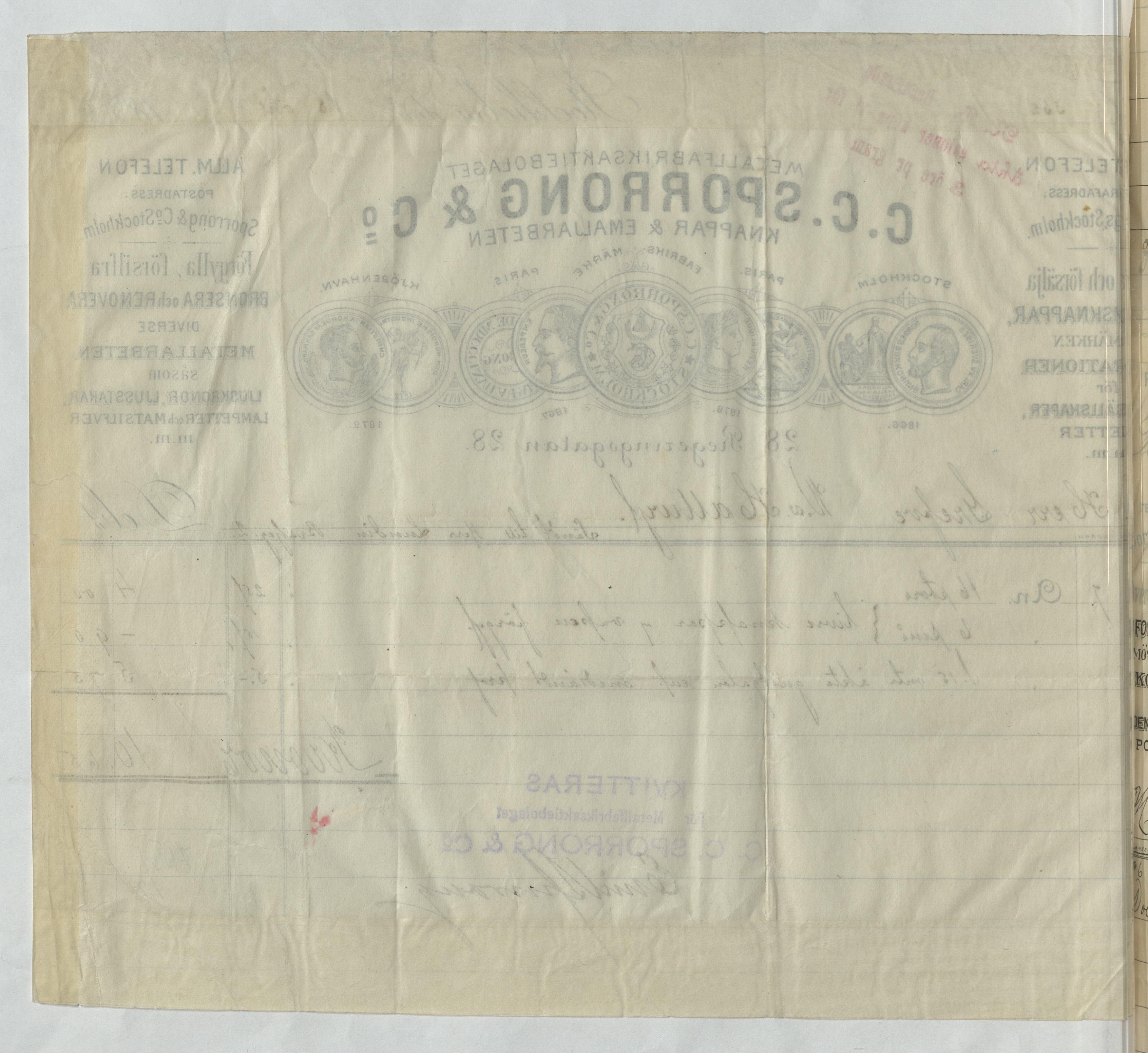 Kvitto från C. C. Sporrong & Co.