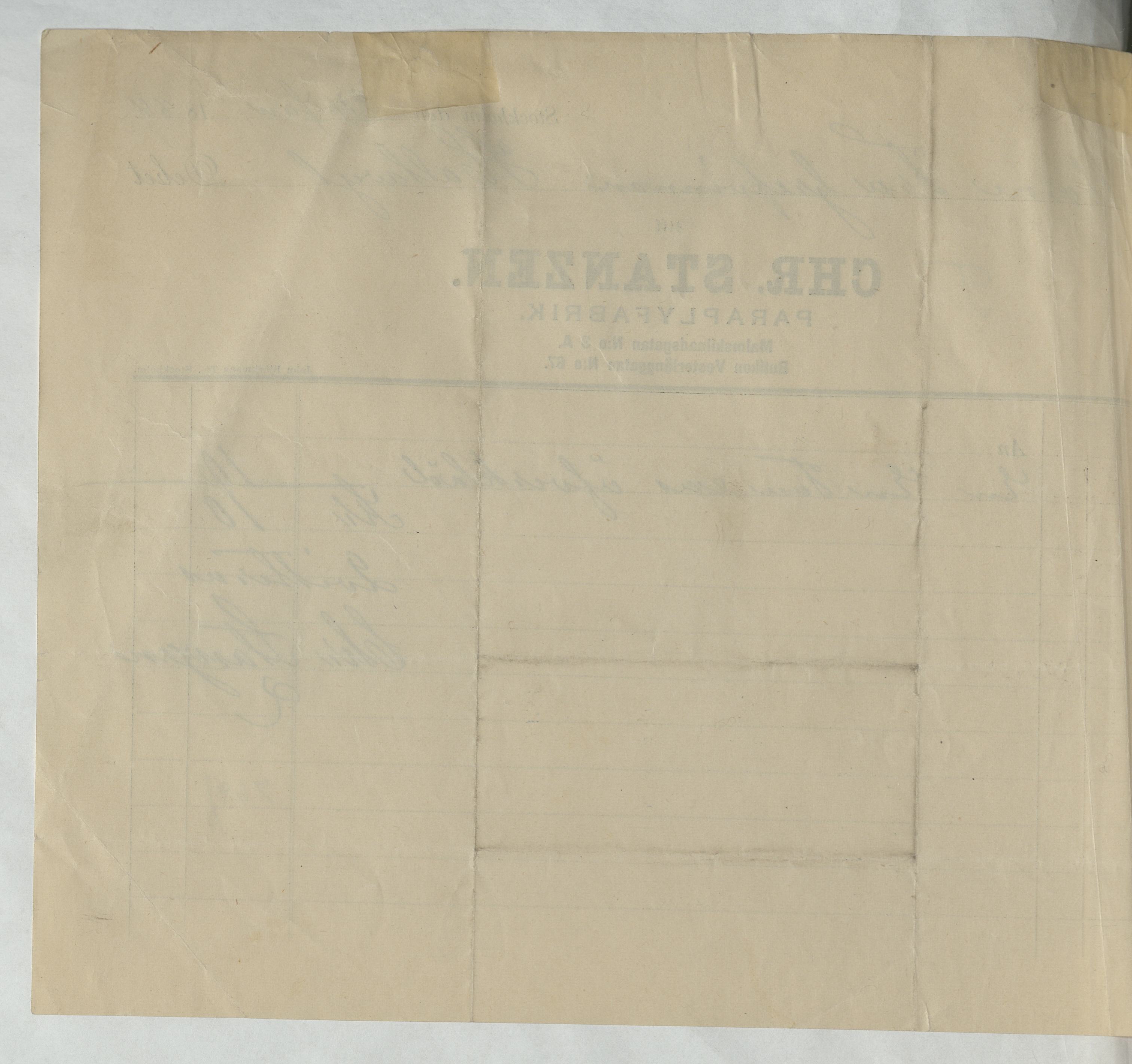 Kvitto från Chr. Stanzen Paraplyfabrik