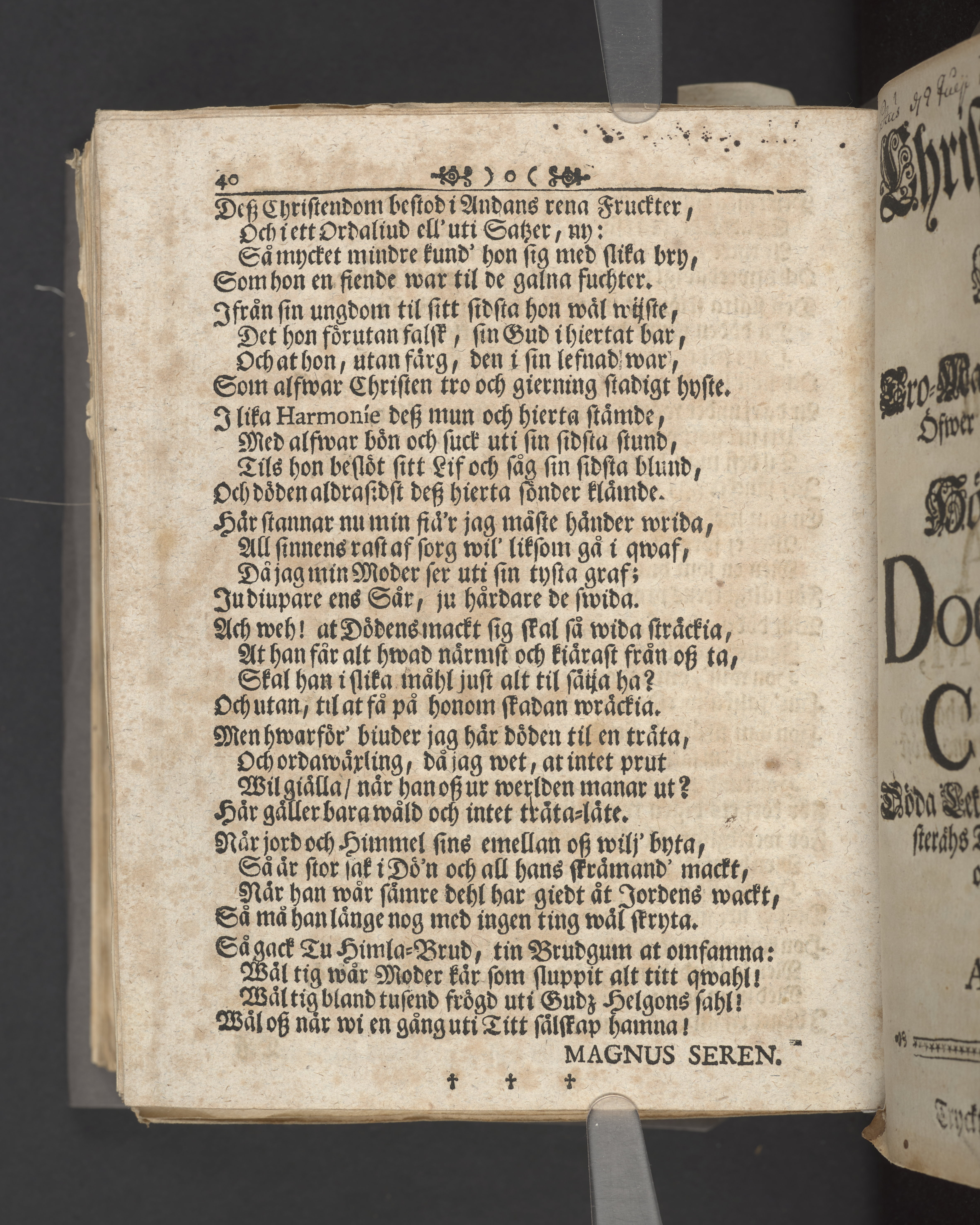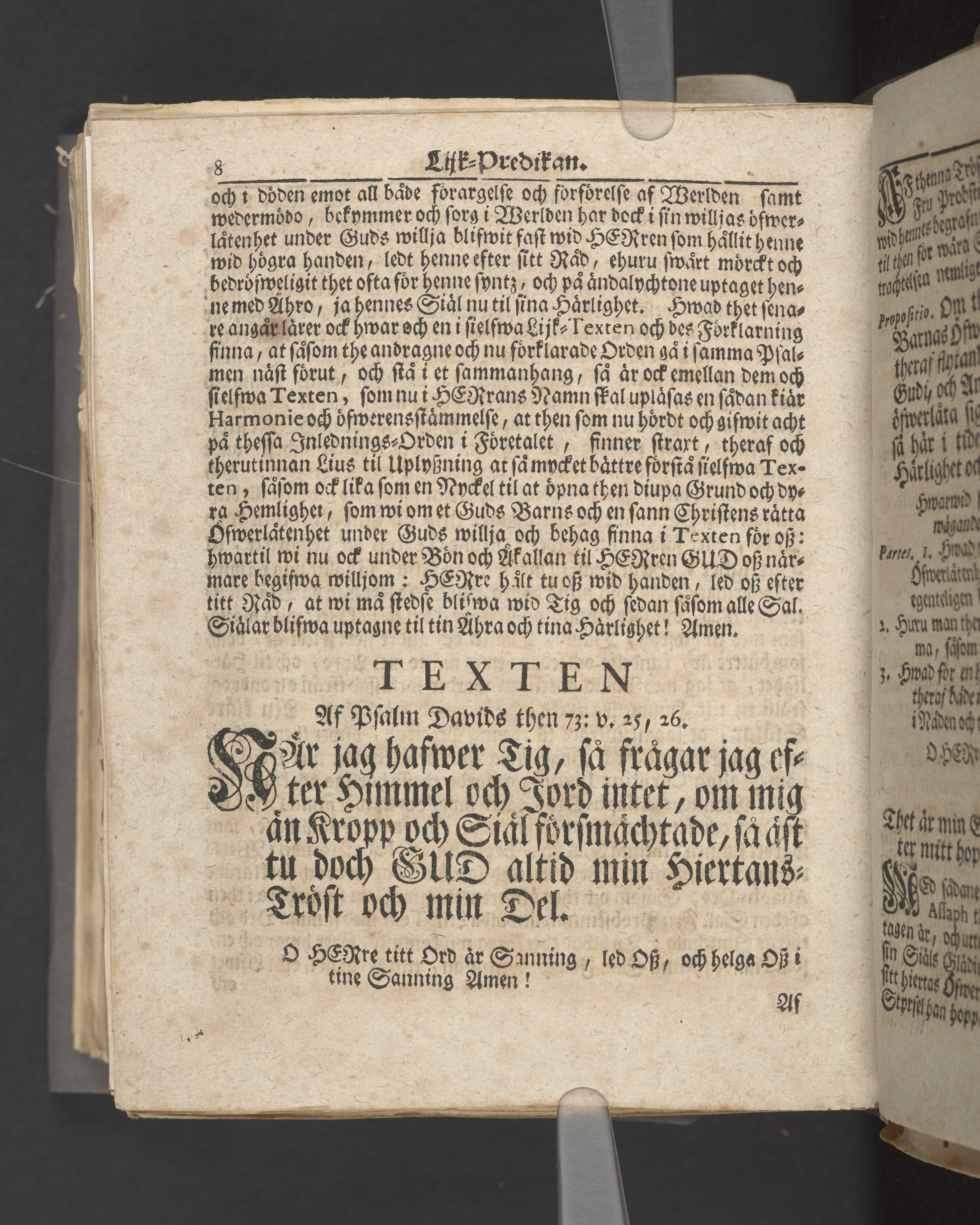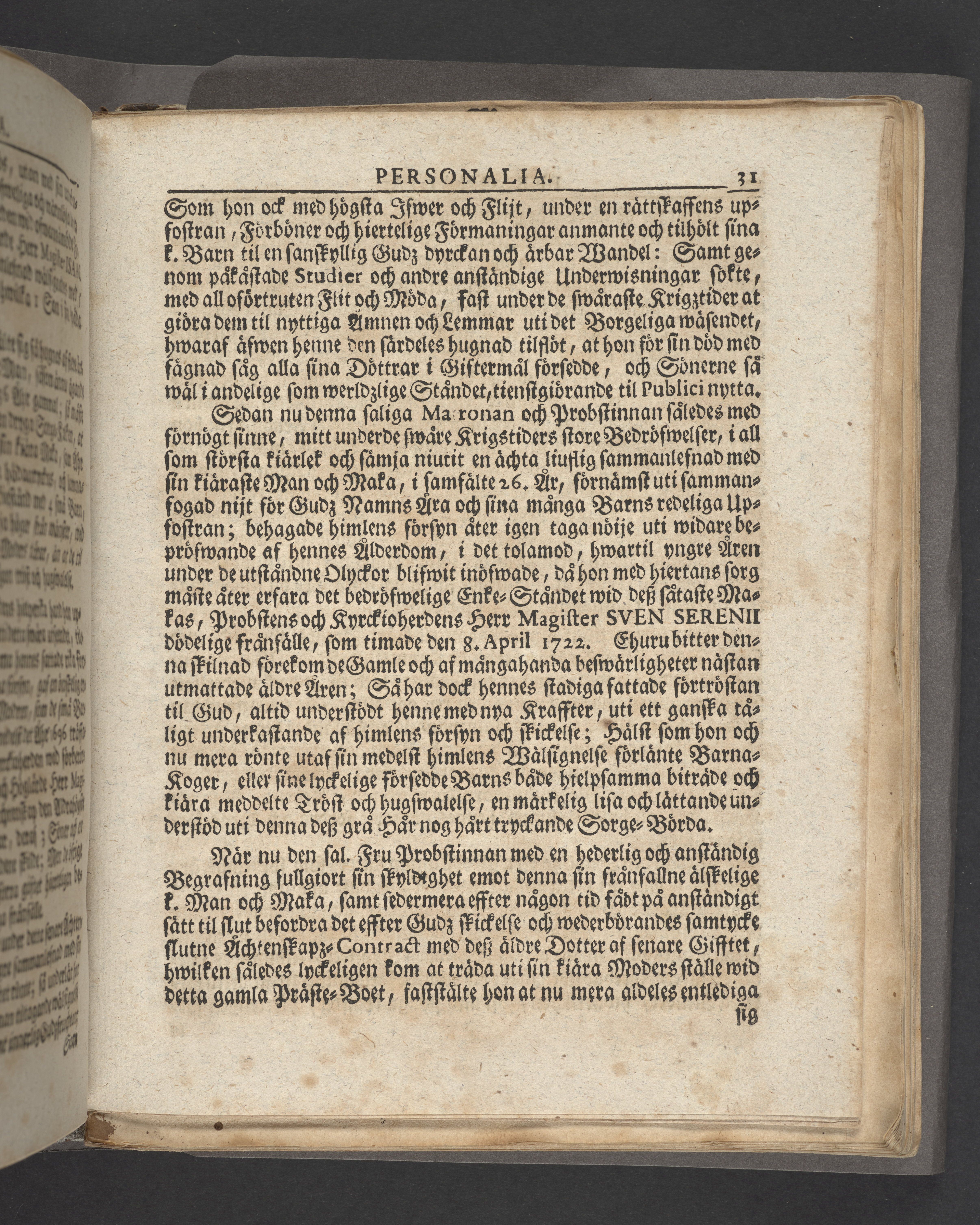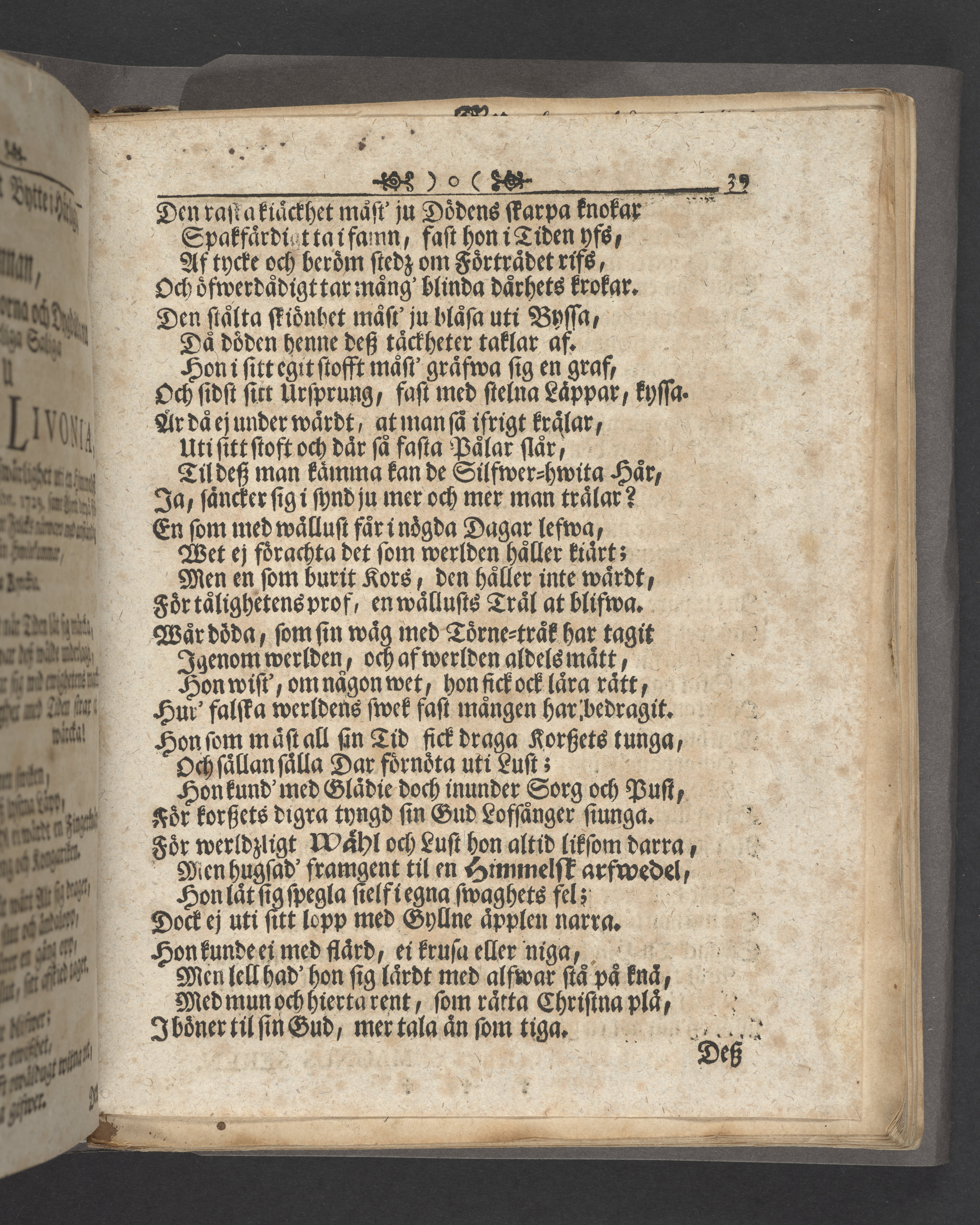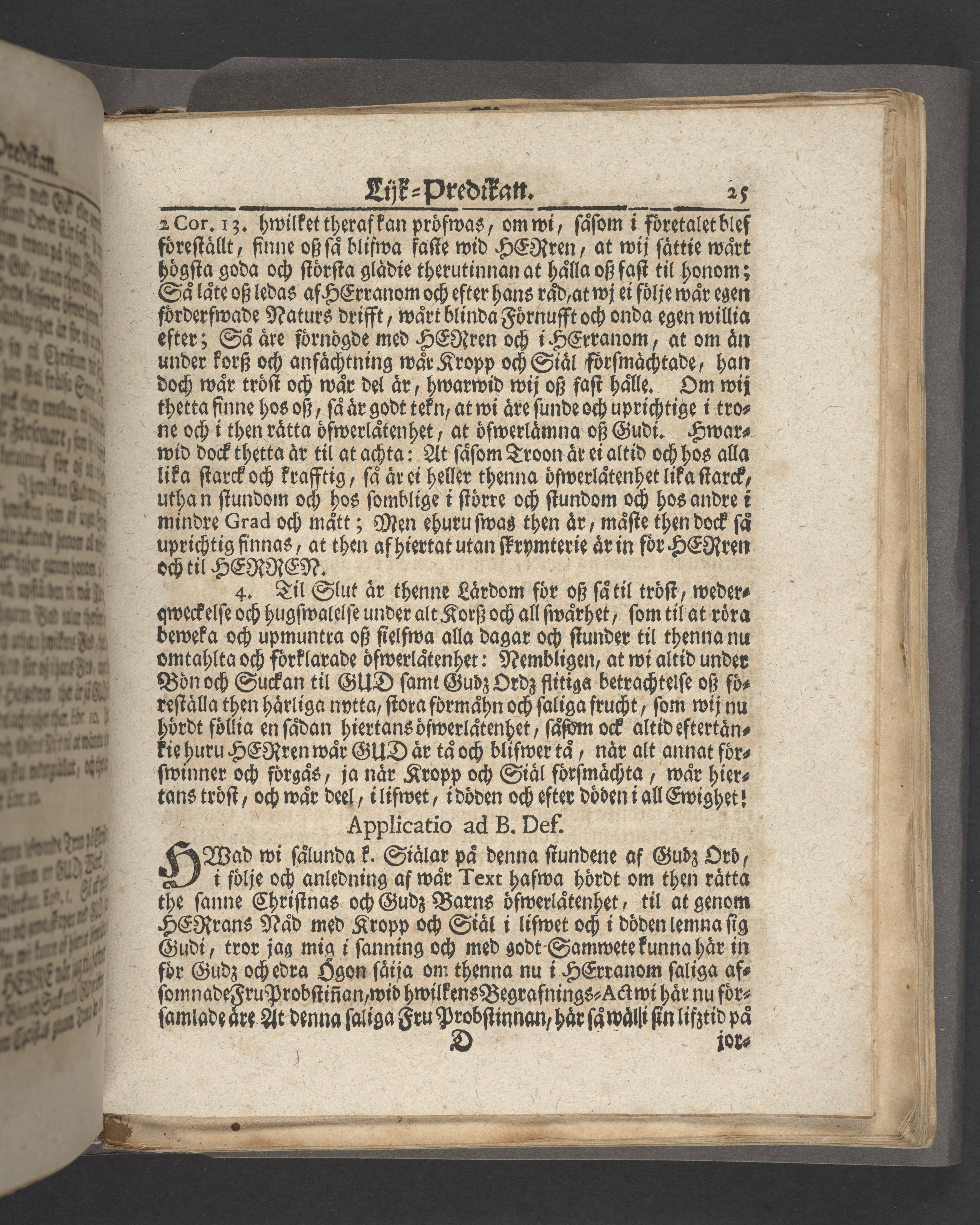 The sanne Christnas och Guds Barnas rätta Öfwerlåtenhet til at i rätta Trone på Gud och Kiärlek til Gud öfwerlembna sig Gudi. Föreställt uti en Christelig Lijk-Predikan öfwer then i Lifstiden Hög-Ehreborna, Gud, och Dygd-älskande Fruen Probstinnan Nu i Herranom Saliga Christina Livonia, Som efter en Christelig och berömlig förd Wandel Saligen afsomnade i Stockholm den 25. Novembr. Åhr 1729. Och I en hederwärd Församblings närwaru uti Ferentuna Kyrckia på Swartsiö-Landet begrofs den 25. Januarii Åhr 1730. Af Hermann Schröder. Pastor ad Cathar. Holm. Design. Episcop. Calmar. Stockholm, tryckt hos Benjamin Gottlieb Schneider.