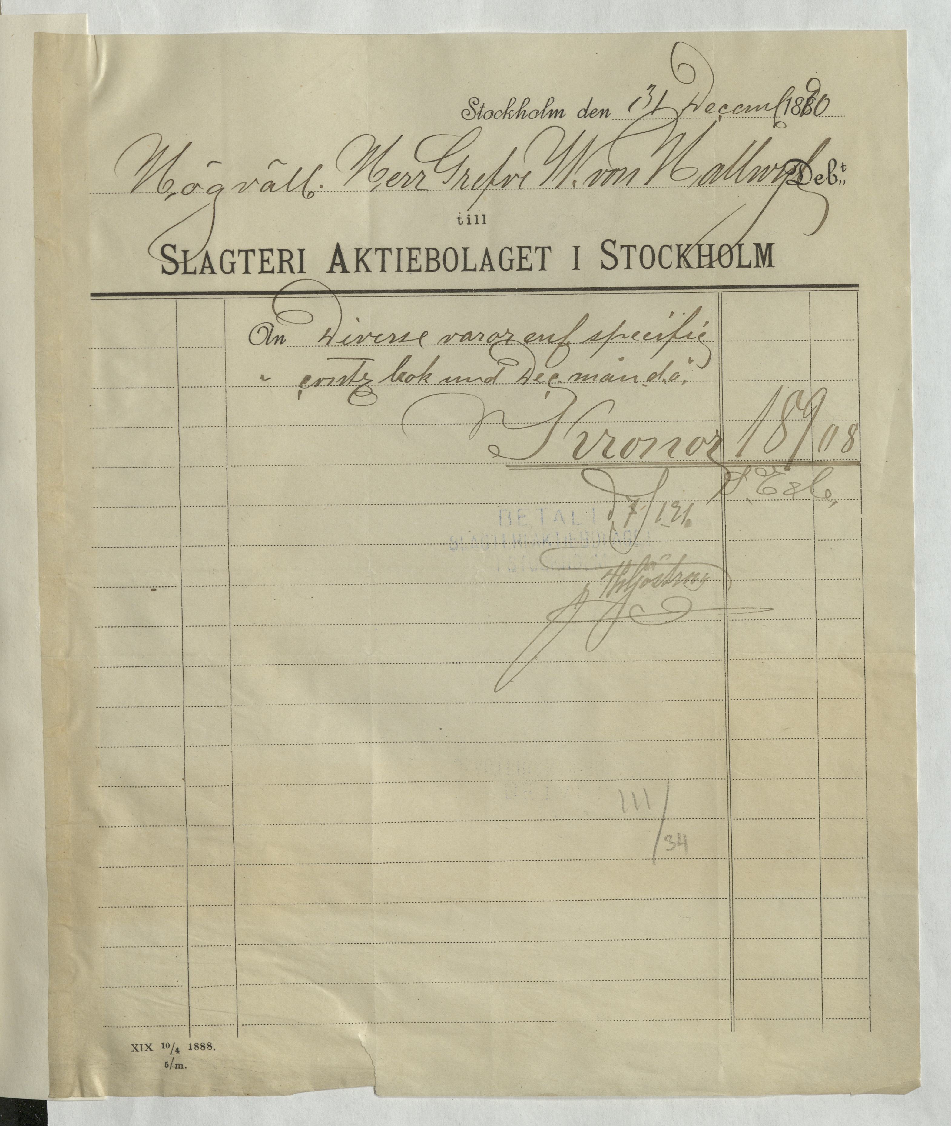 Kvitto från Slagteri Aktiebolaget i Stockholm