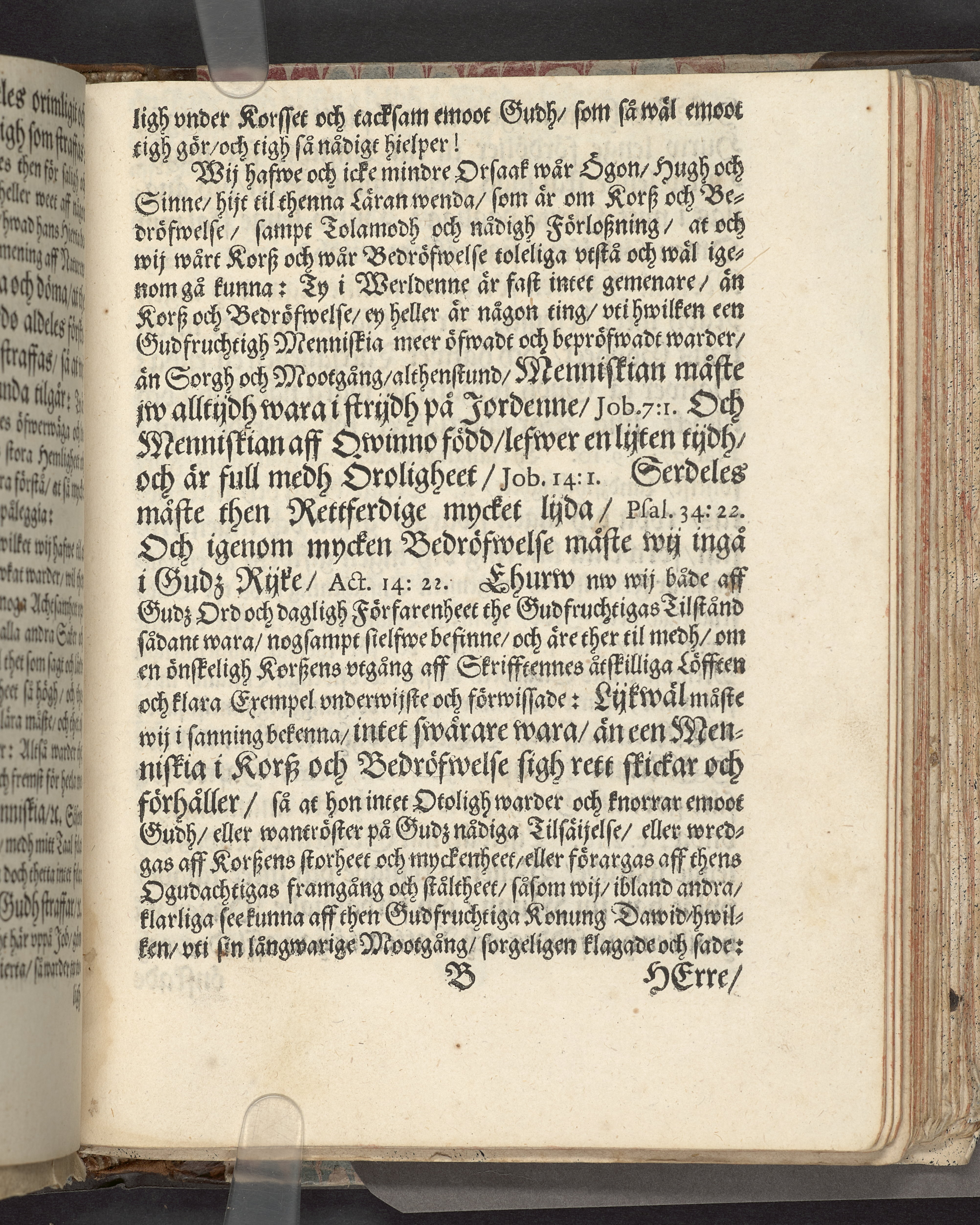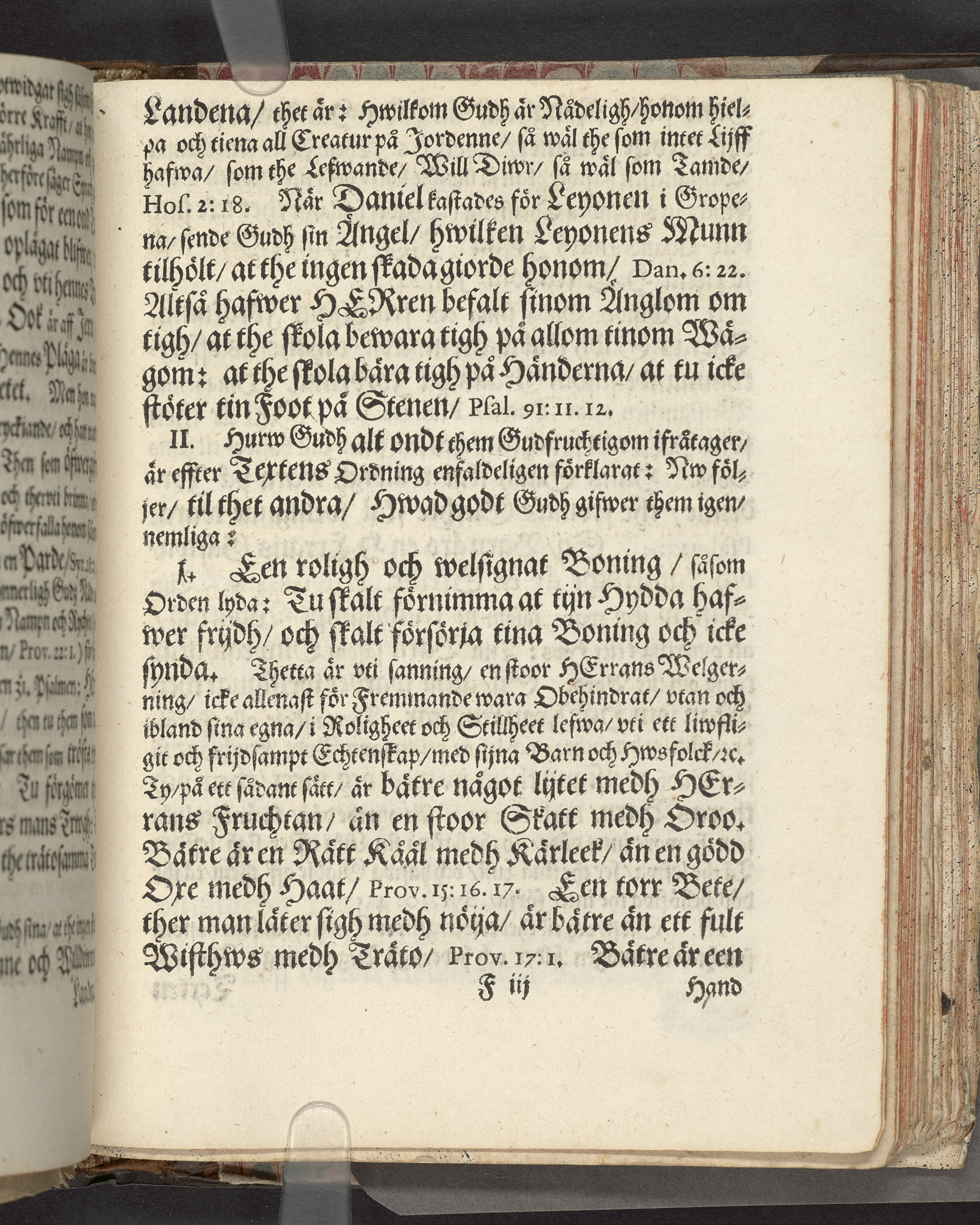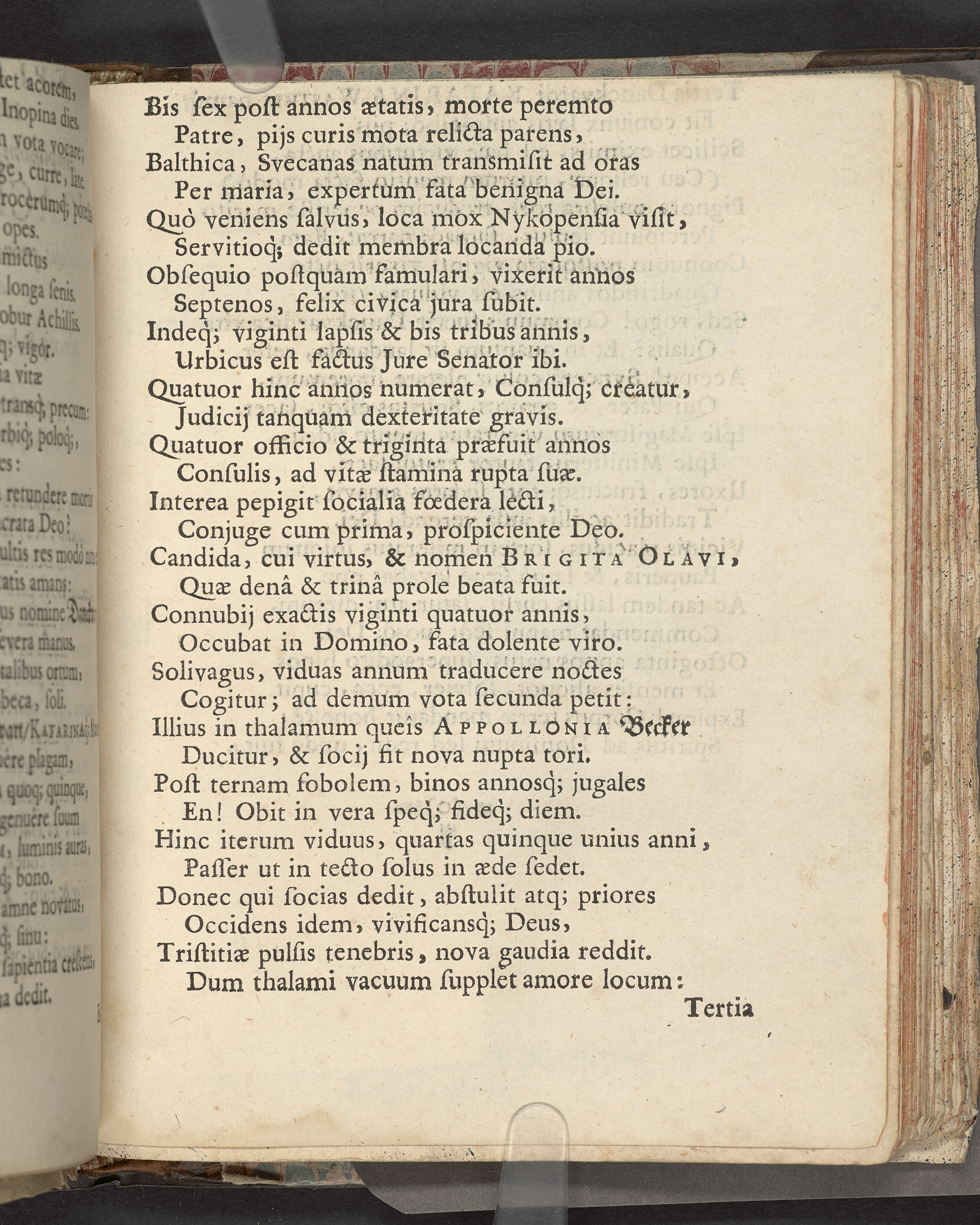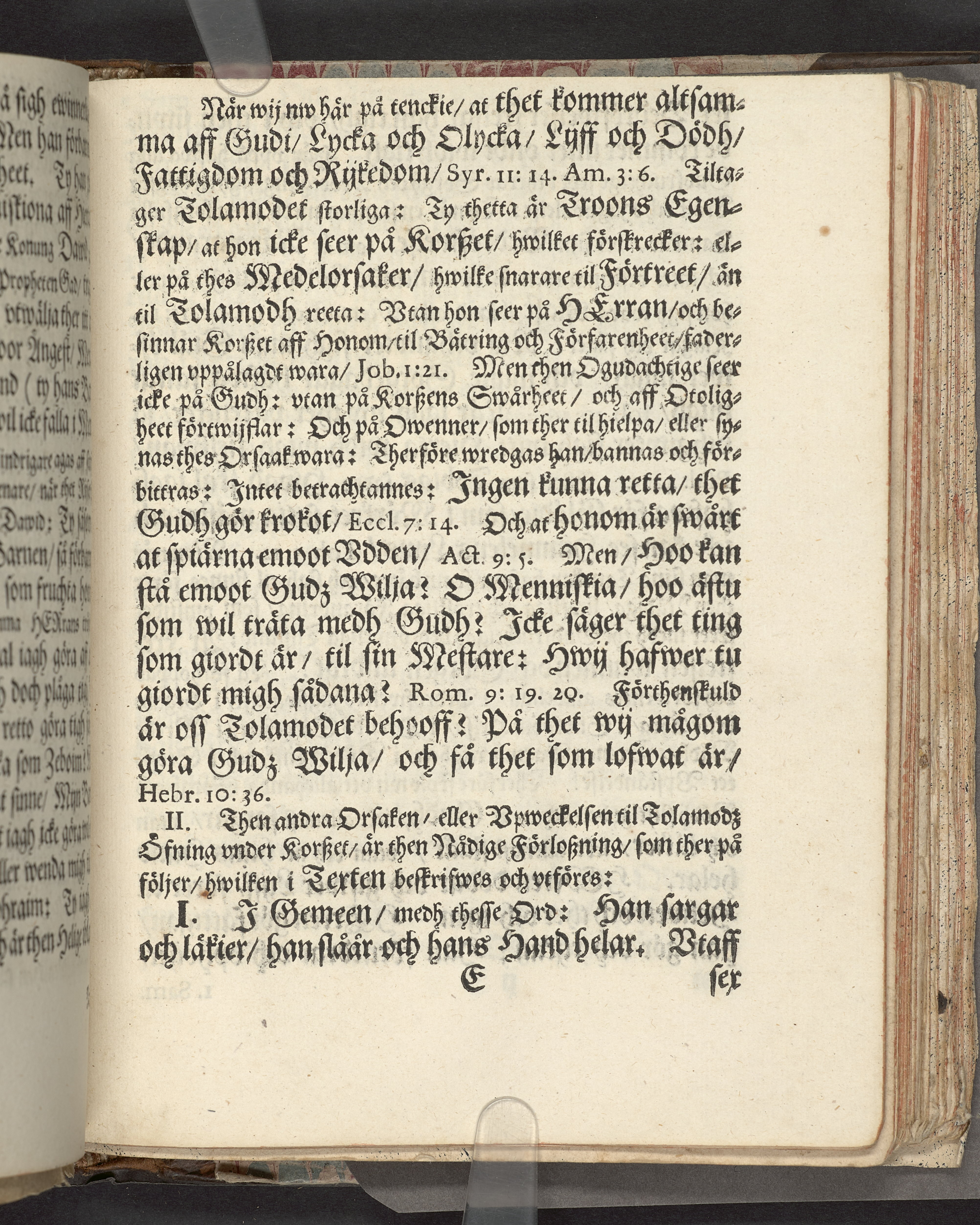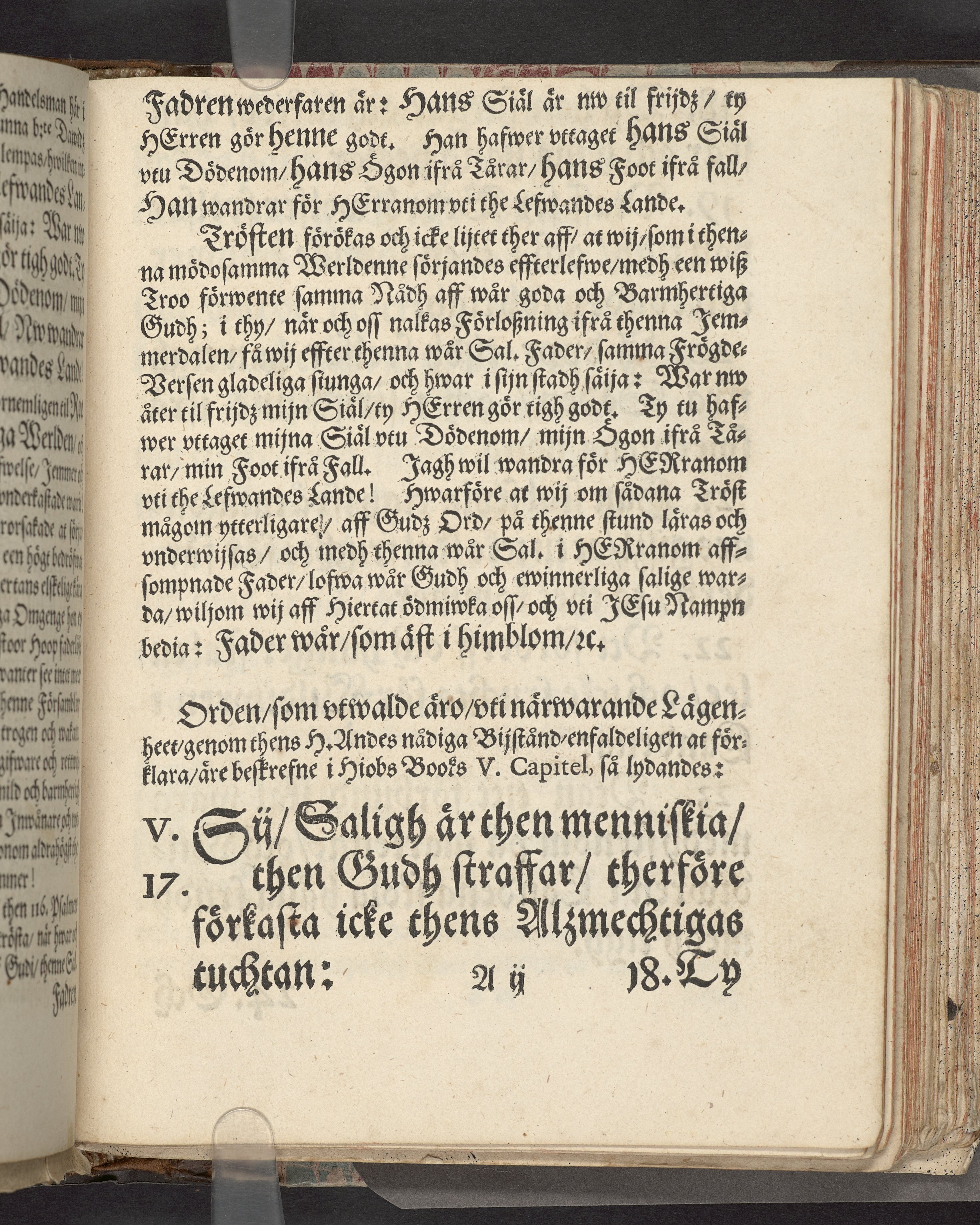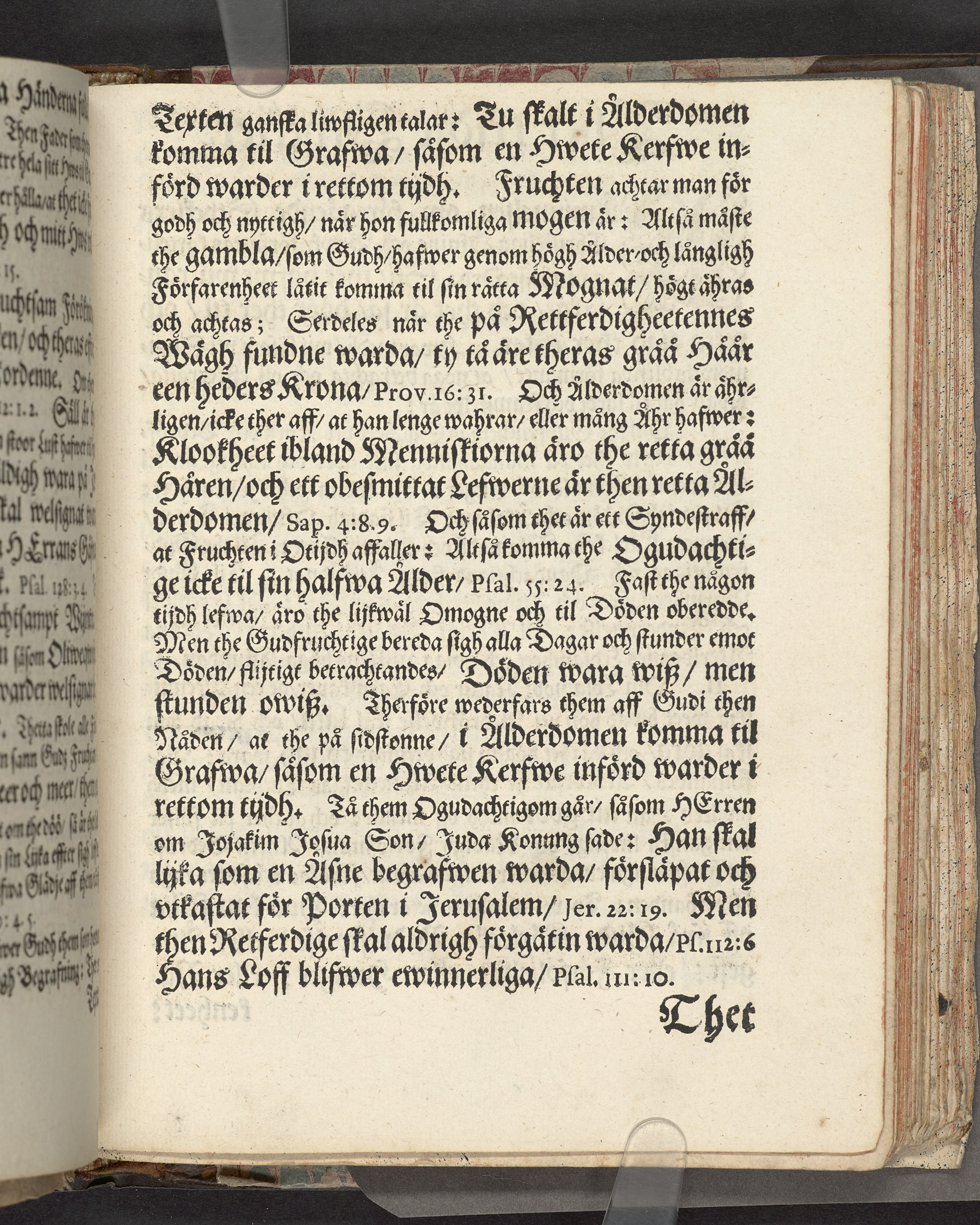 I sammelband med 26 tryck. Högst upp på titelsidan anteckning i bläck med uppgifter om födelse- och dödsdatum för den avlidna. Övre och nedre snitten stänkta i blått. På främre snittet ursprunglig röd färg.