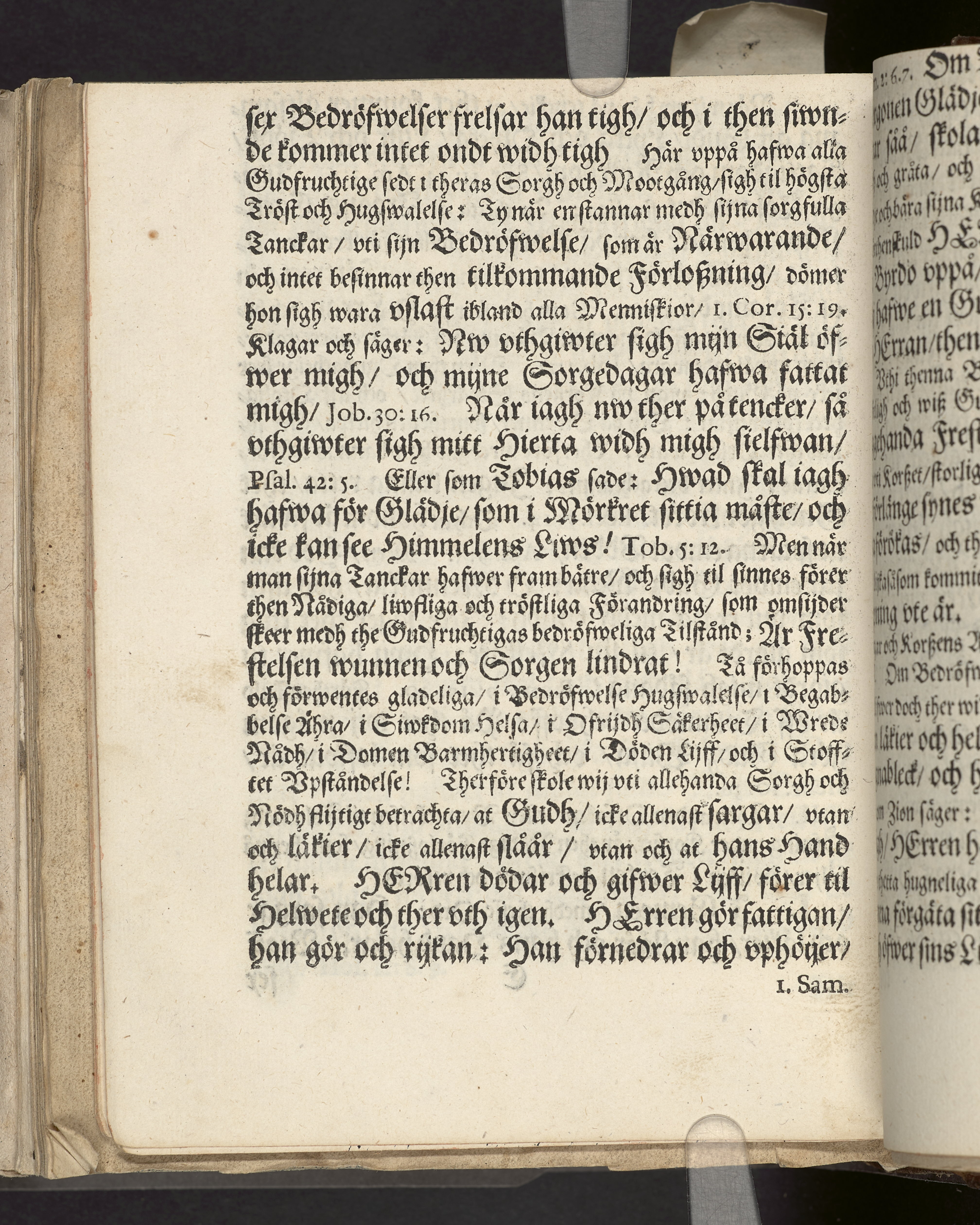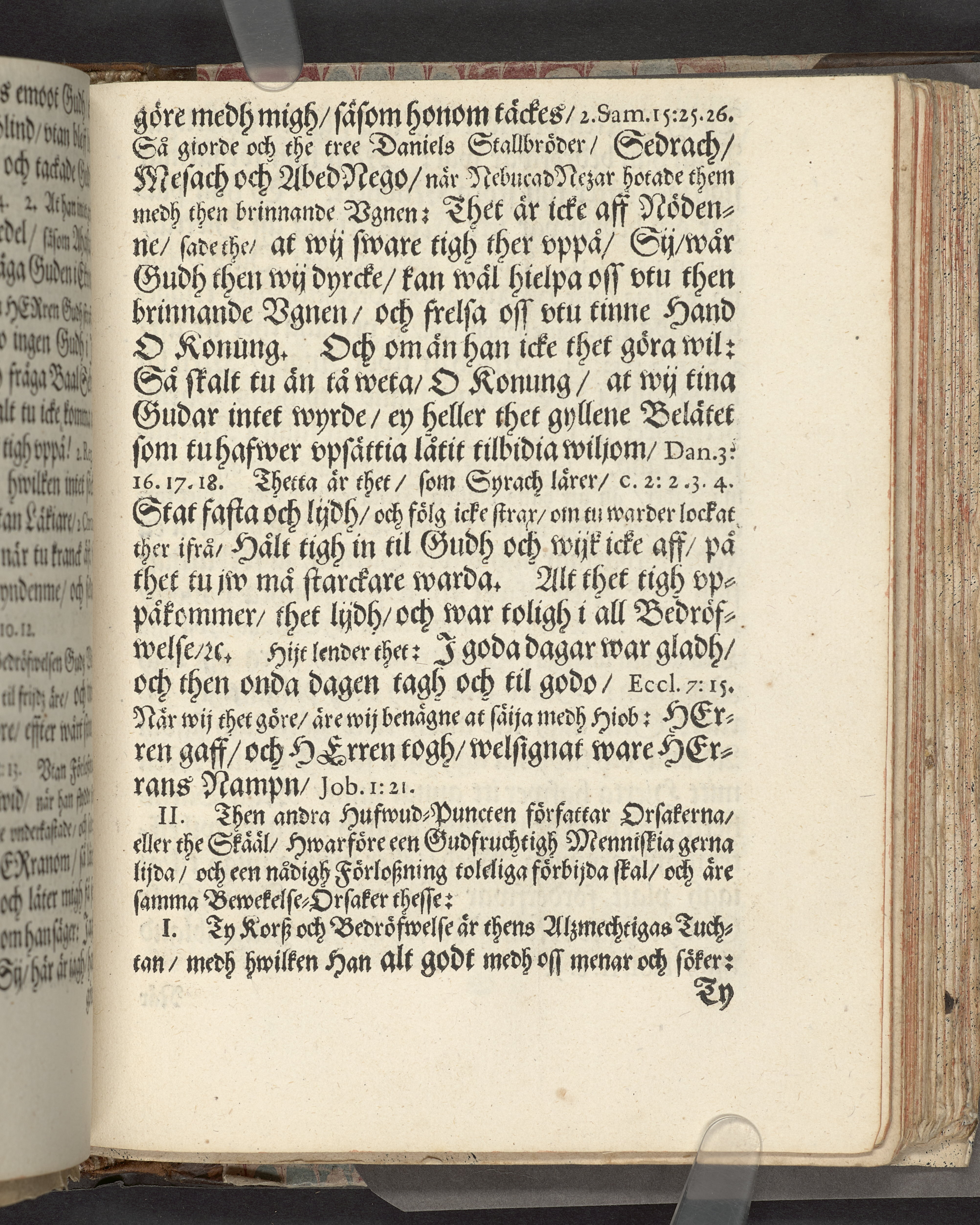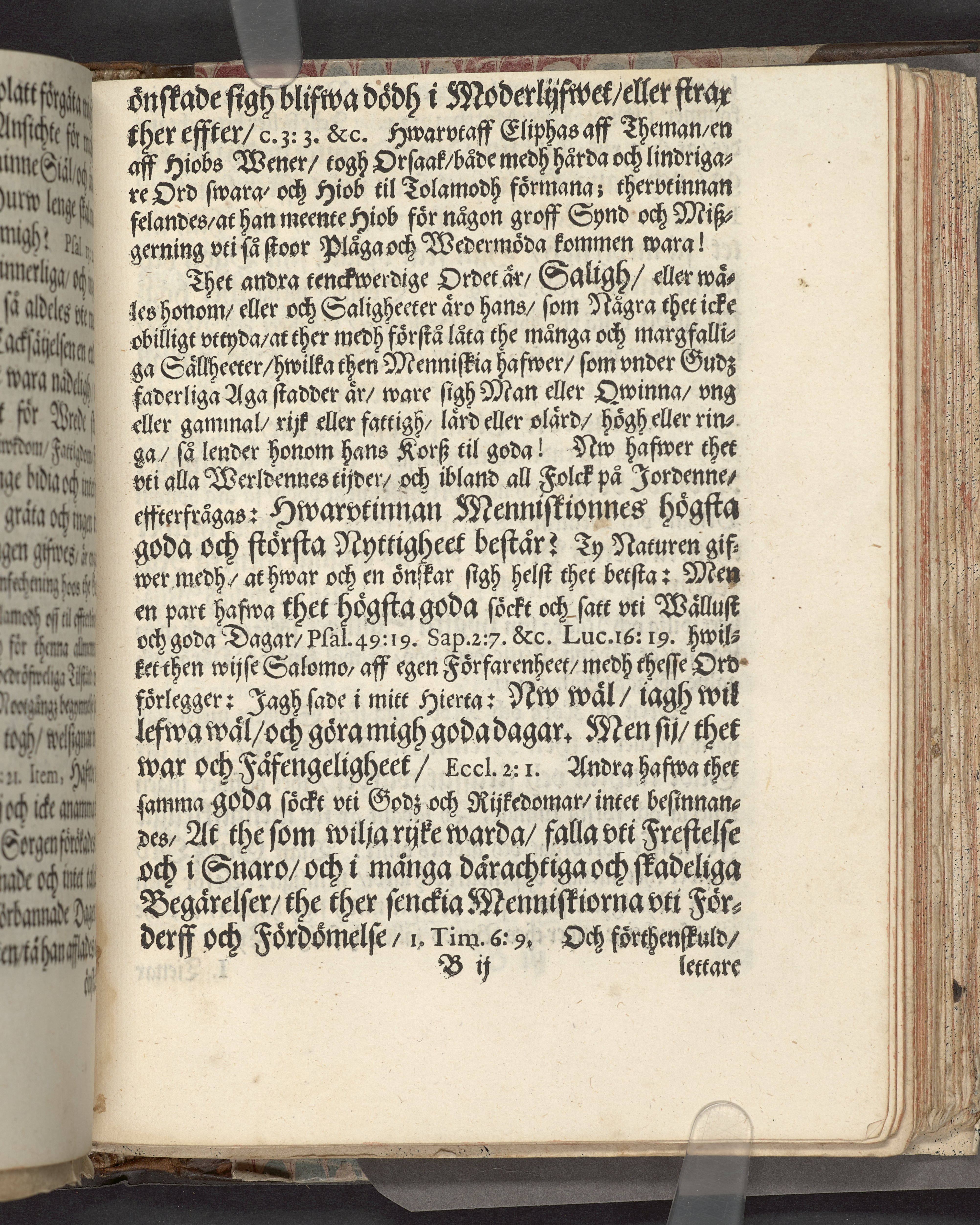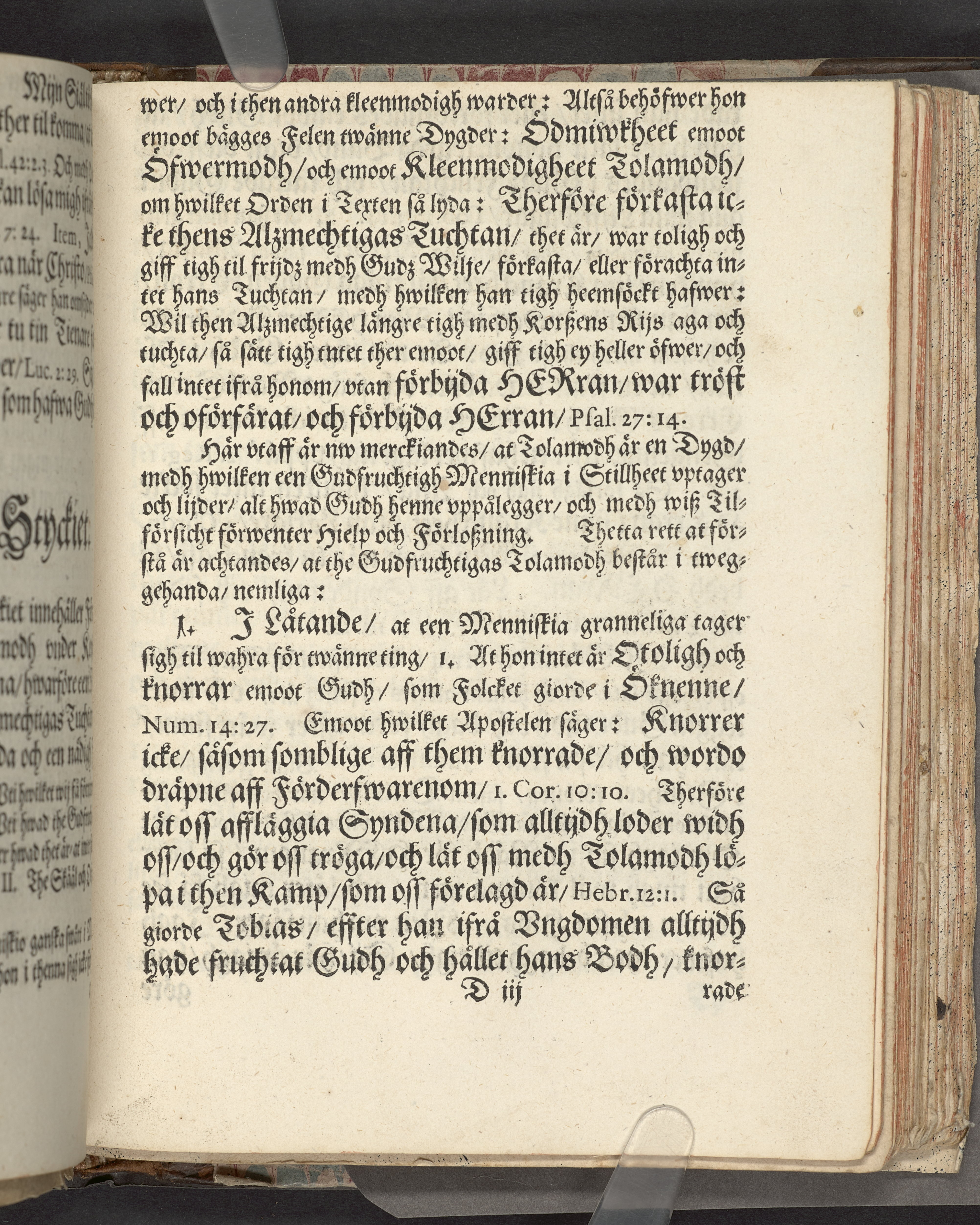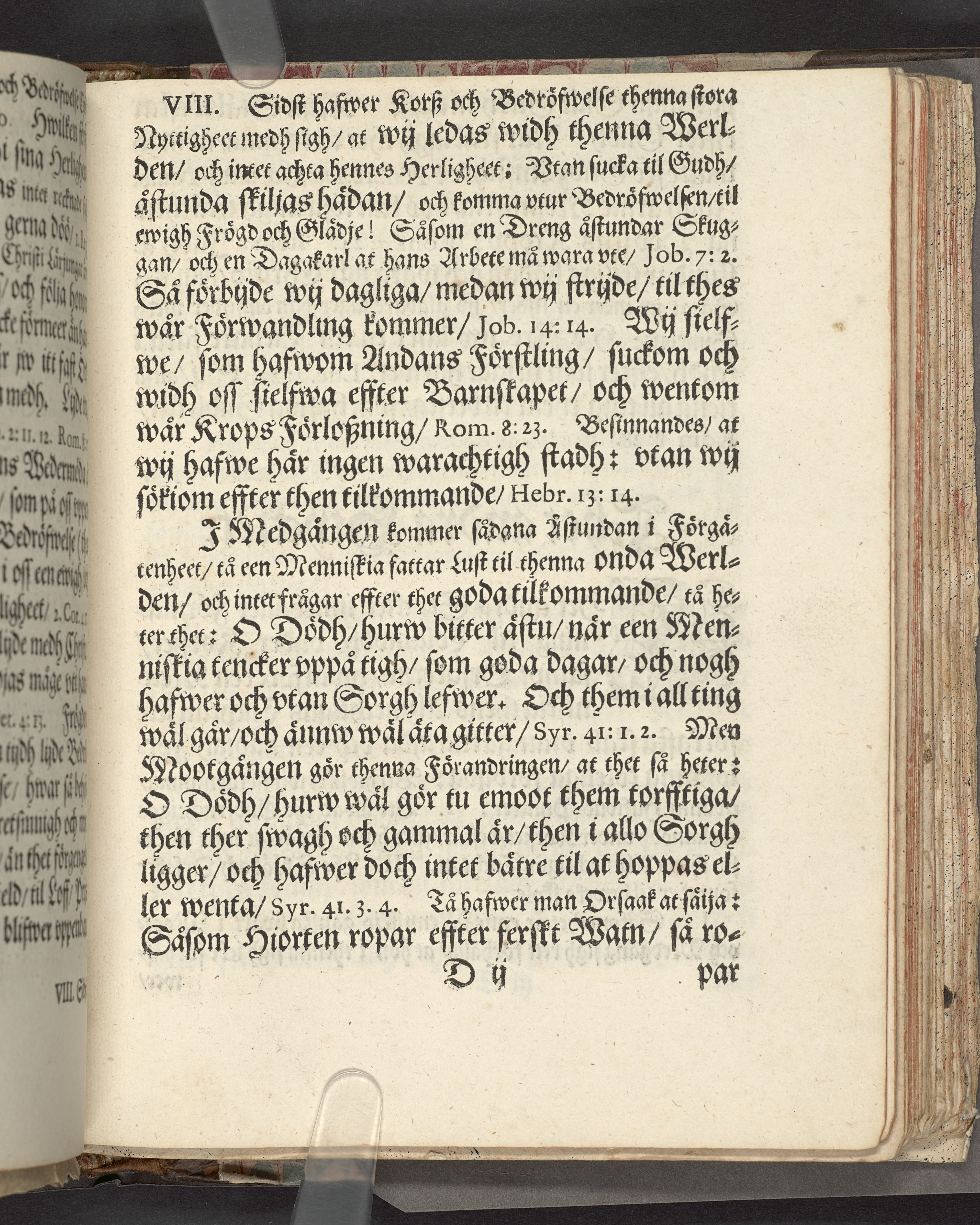 I sammelband med 26 tryck. Högst upp på titelsidan anteckning i bläck med uppgifter om födelse- och dödsdatum för den avlidna. Övre och nedre snitten stänkta i blått. På främre snittet ursprunglig röd färg.