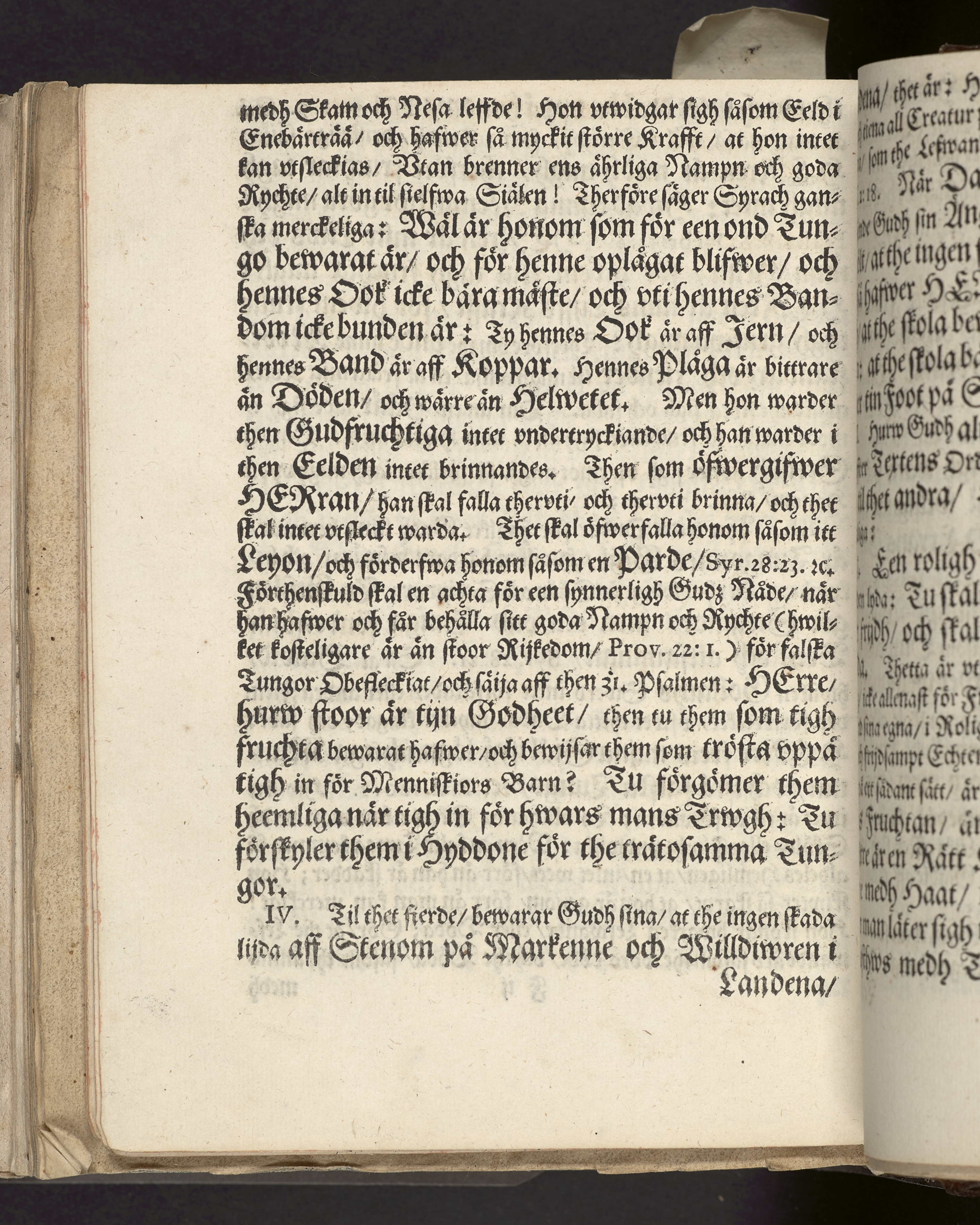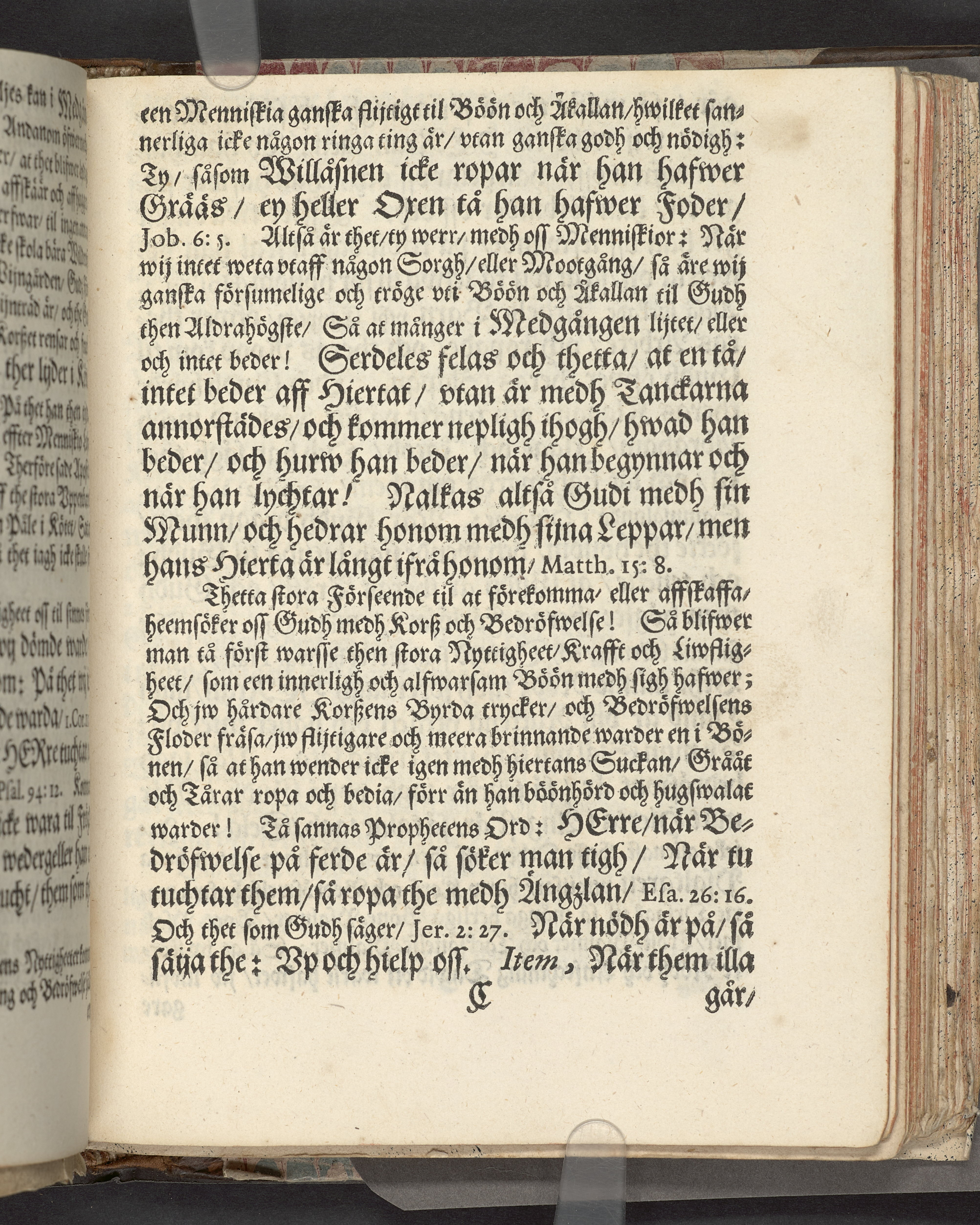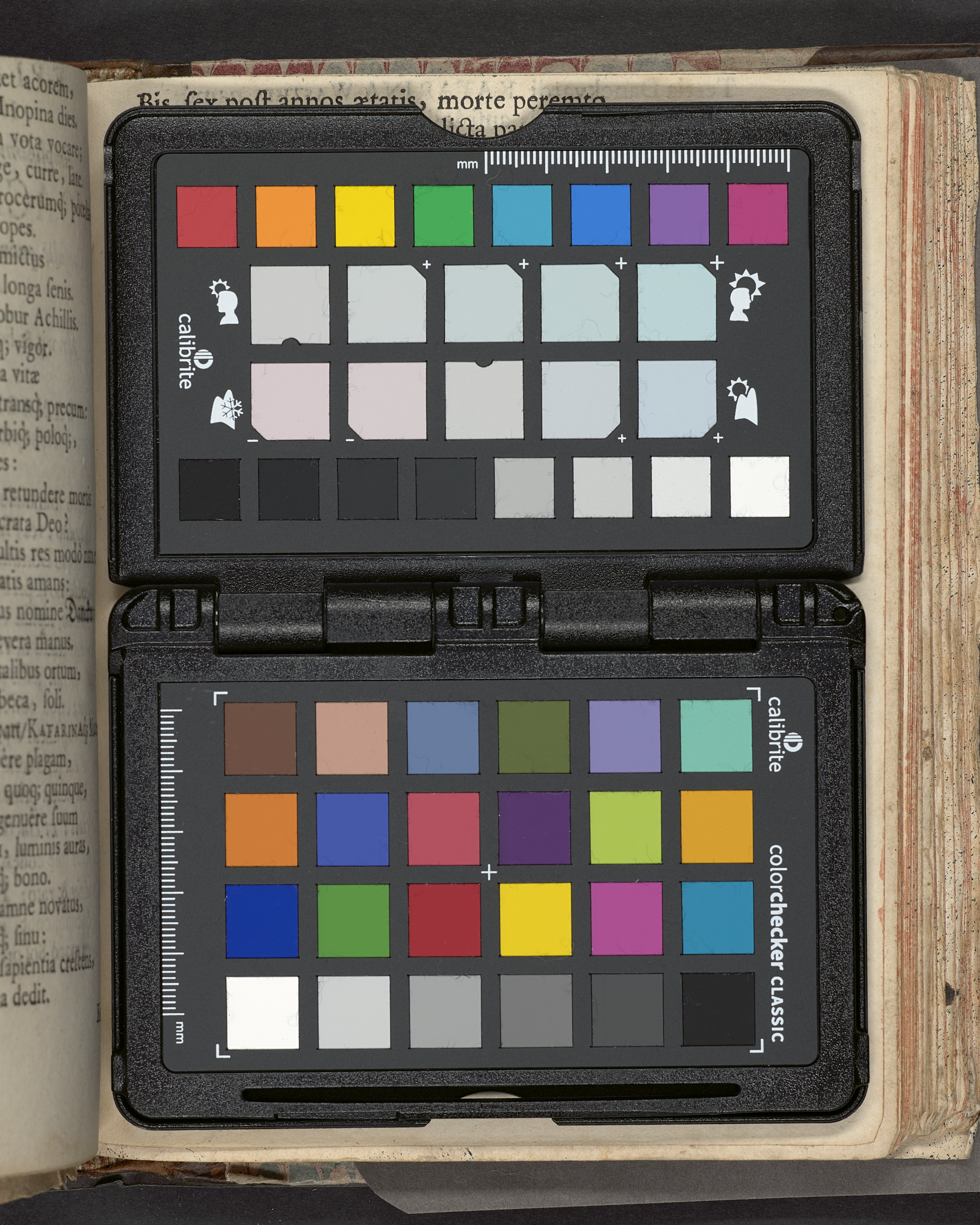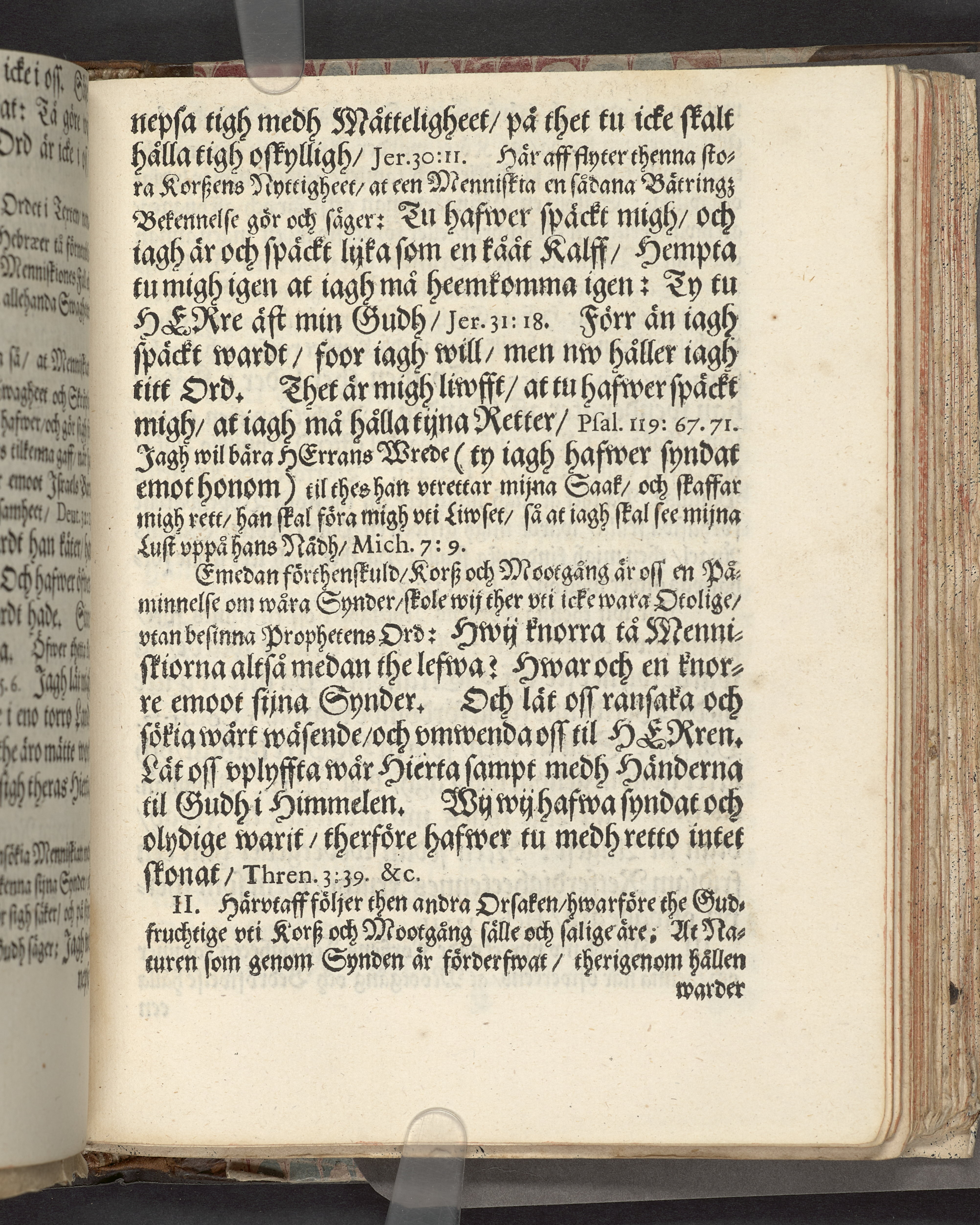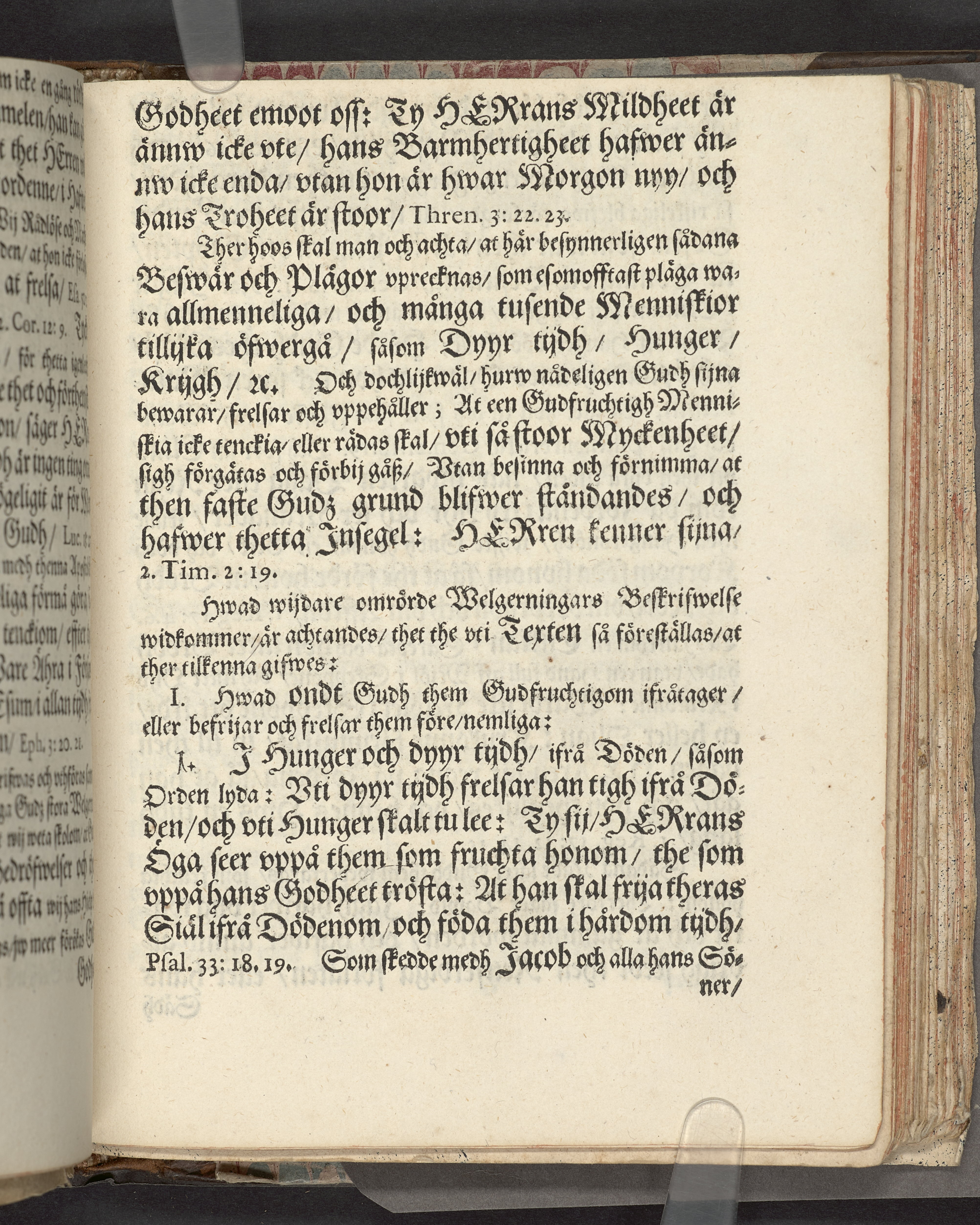 I sammelband med 26 tryck. Högst upp på titelsidan anteckning i bläck med uppgifter om födelse- och dödsdatum för den avlidna. Övre och nedre snitten stänkta i blått. På främre snittet ursprunglig röd färg.