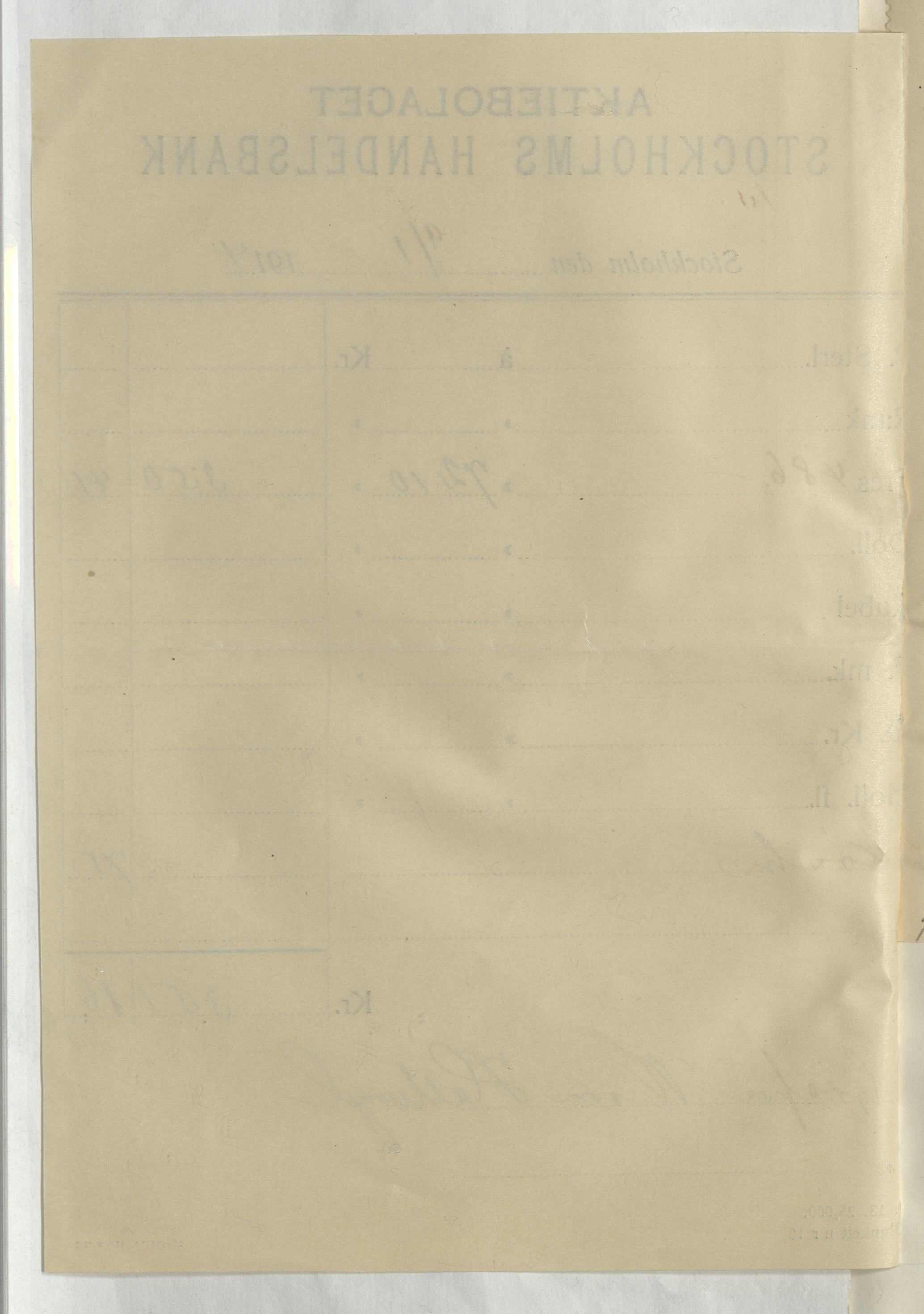 Verifikation från Aktiebolaget Stockholms Handelsbank