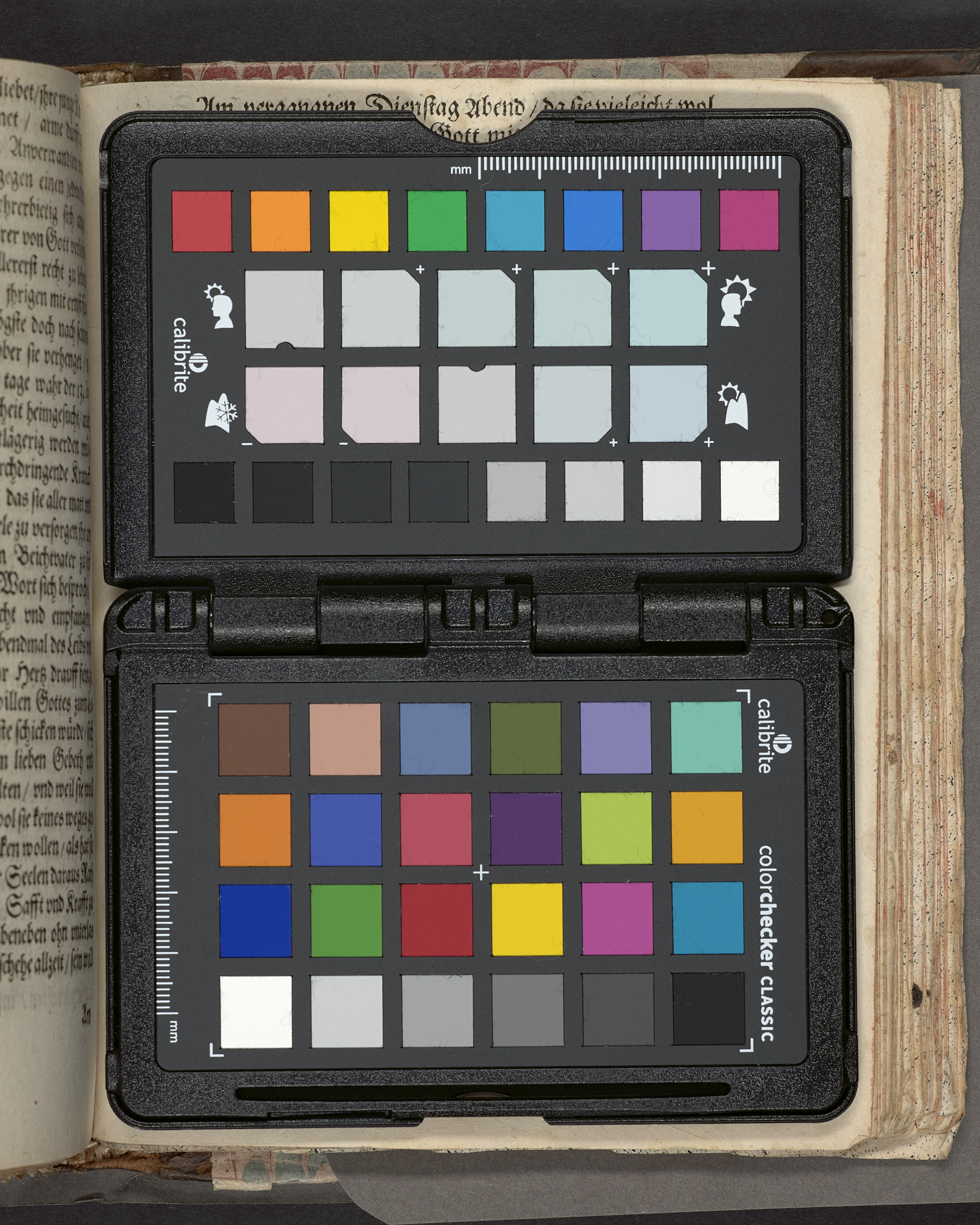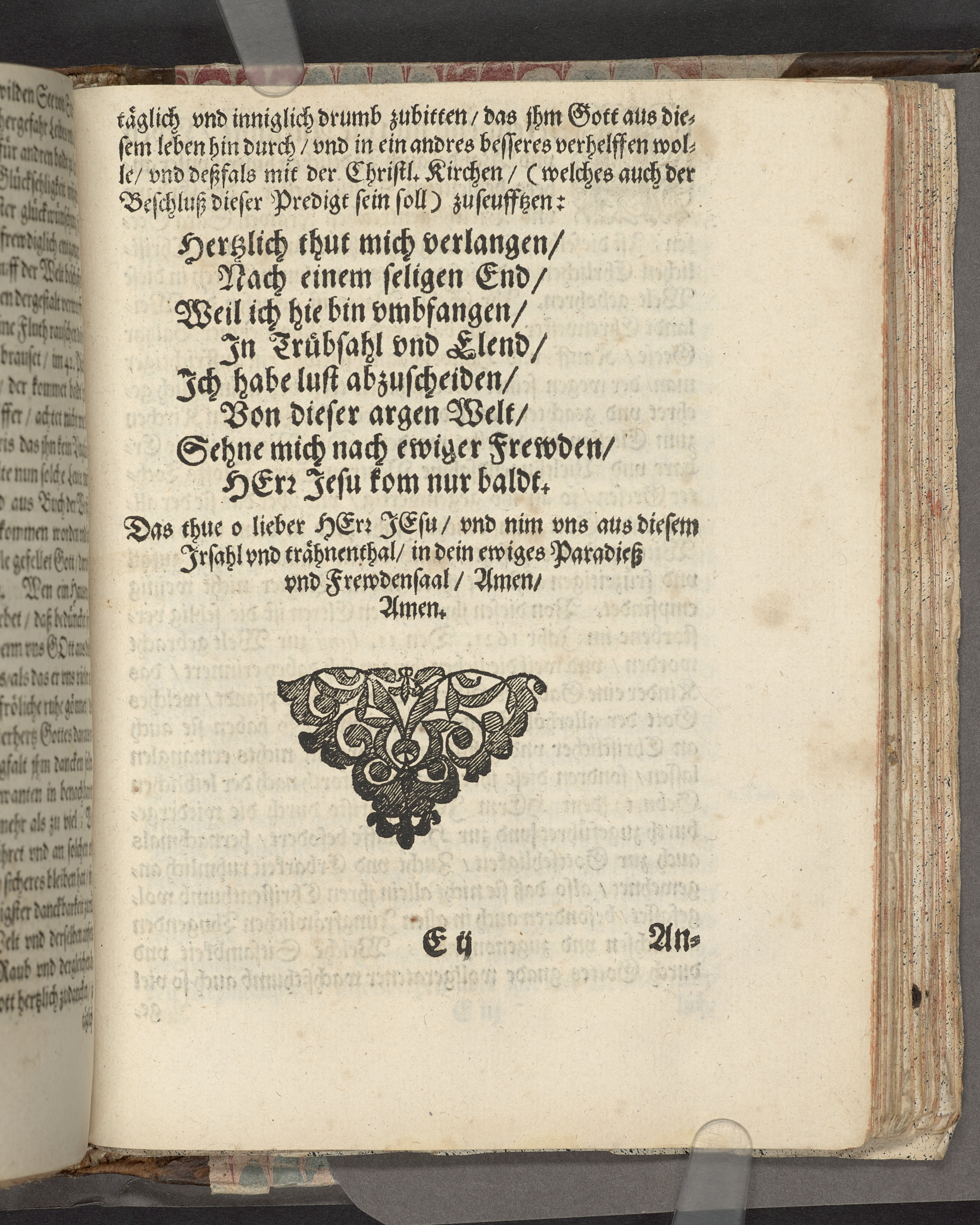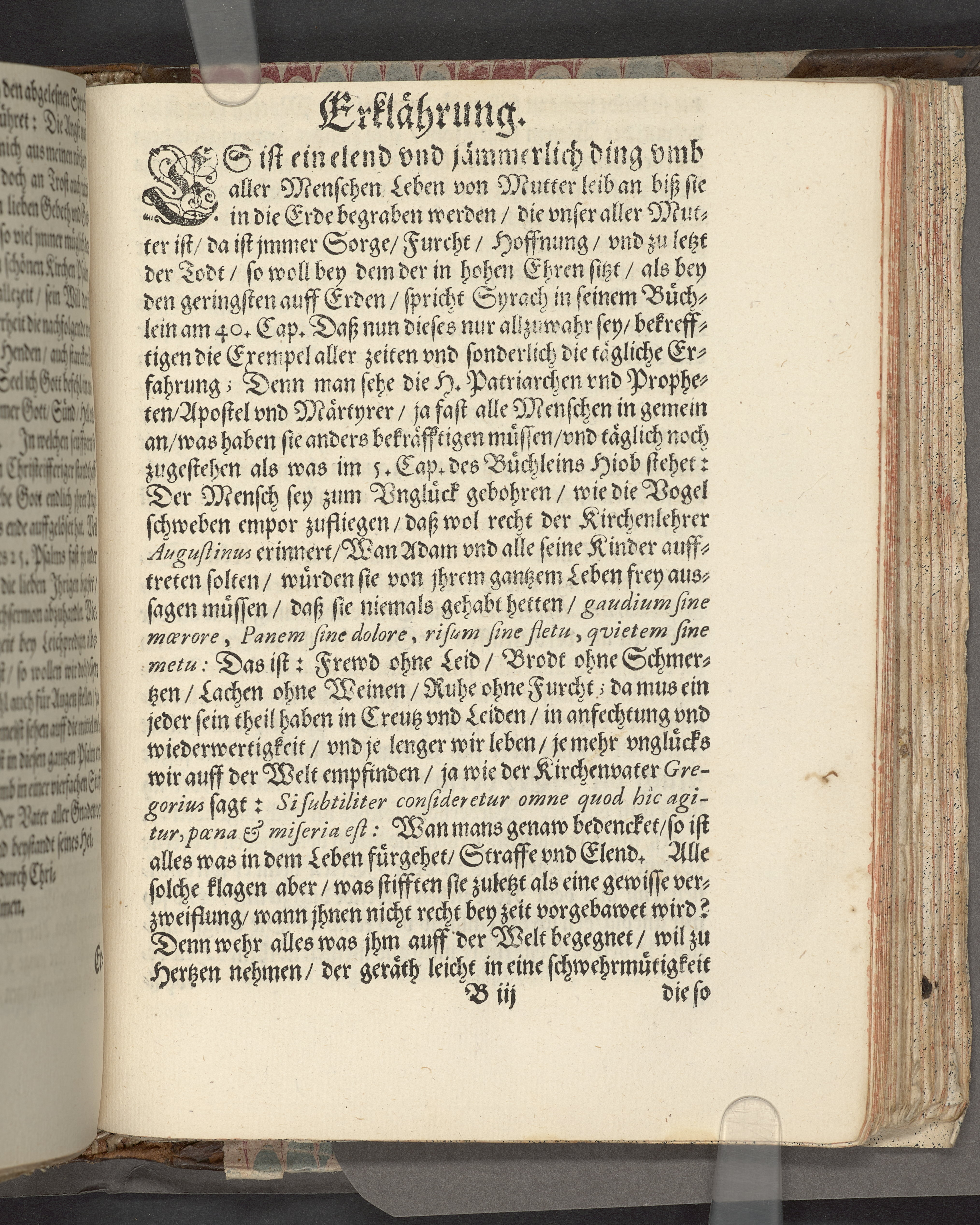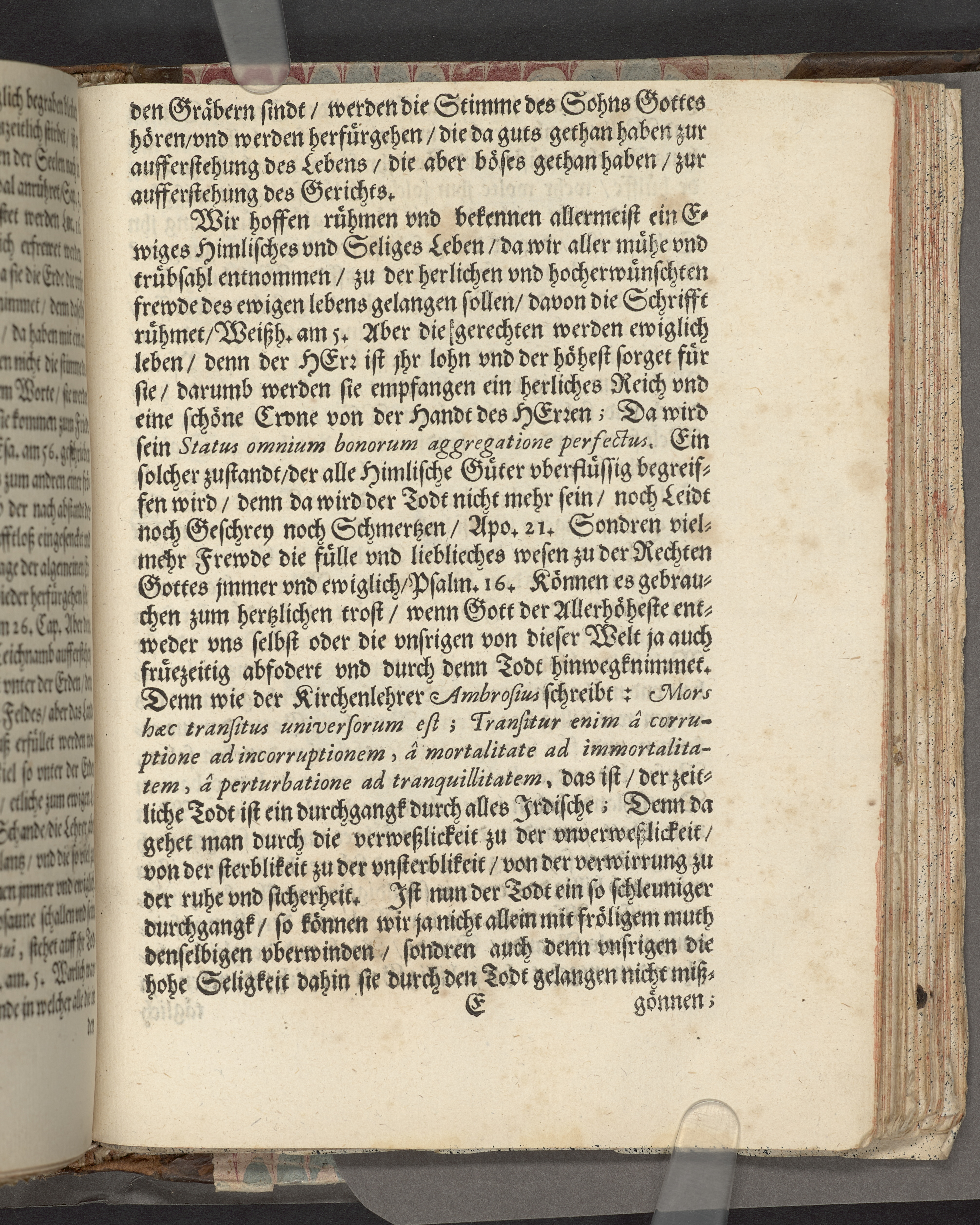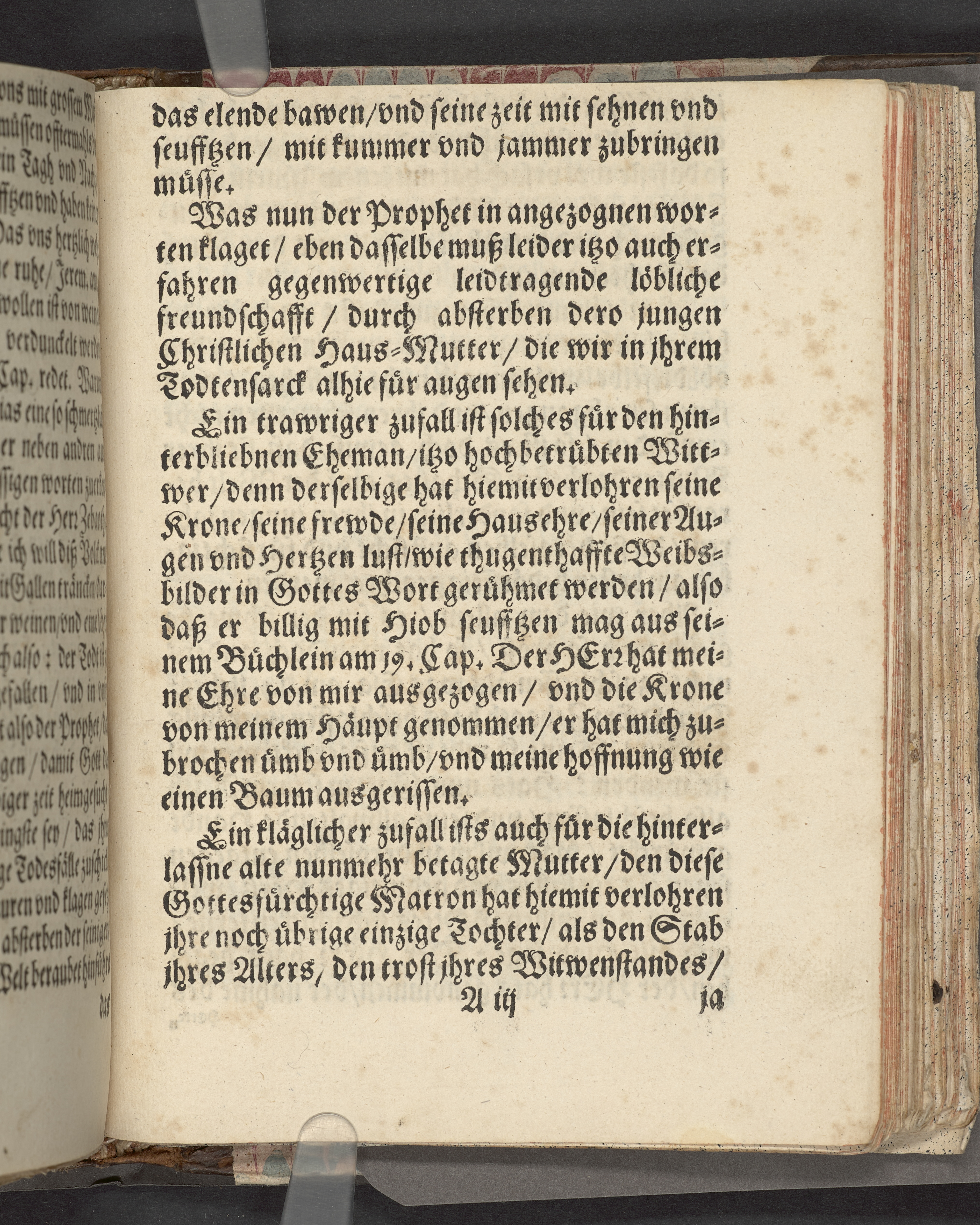 Övre och nedre snitten stänkta i blått. På främre snittet ursprunglig röd färg.