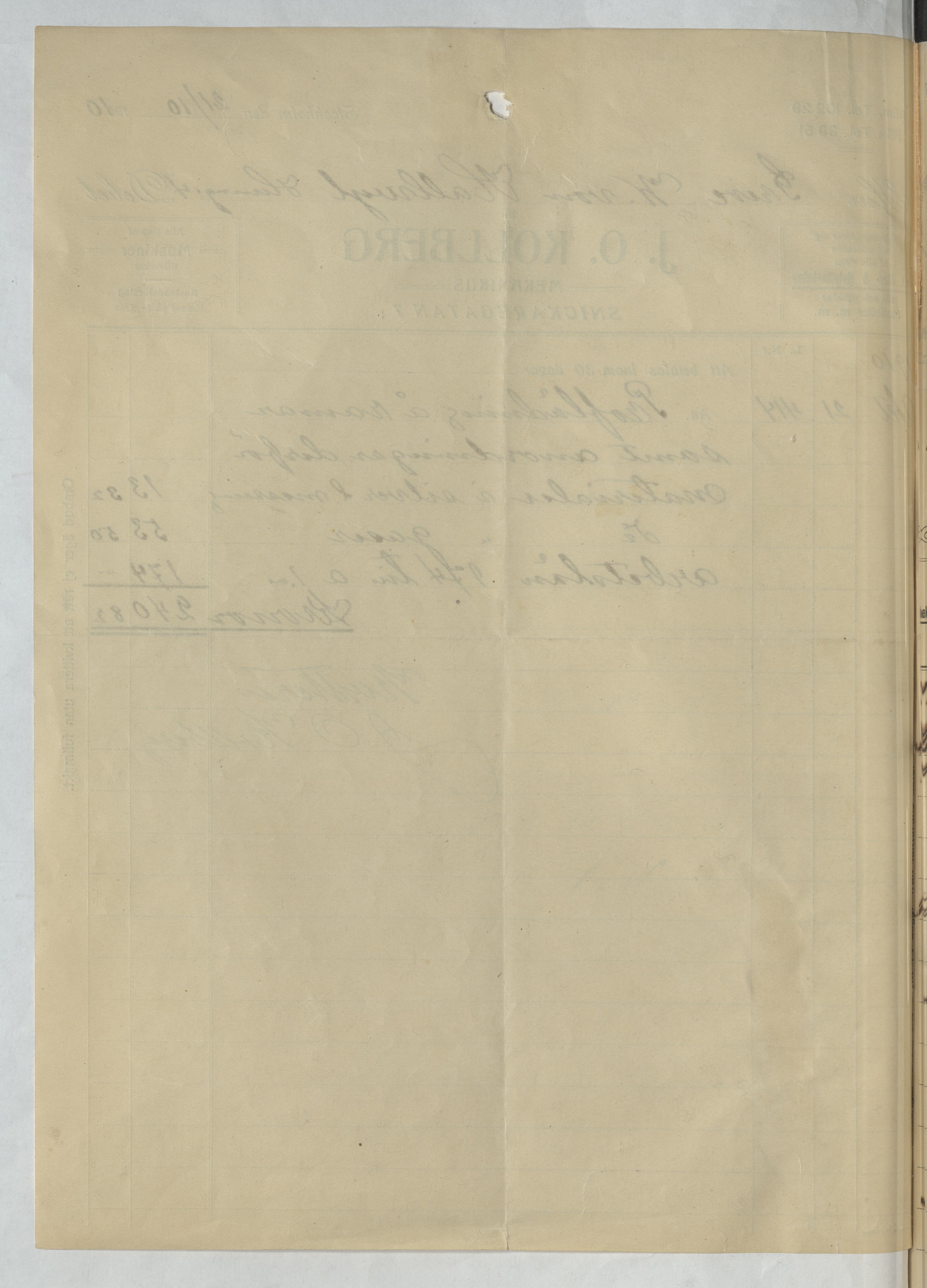 Kvitto från J. O. Kollberg, Mekanikus