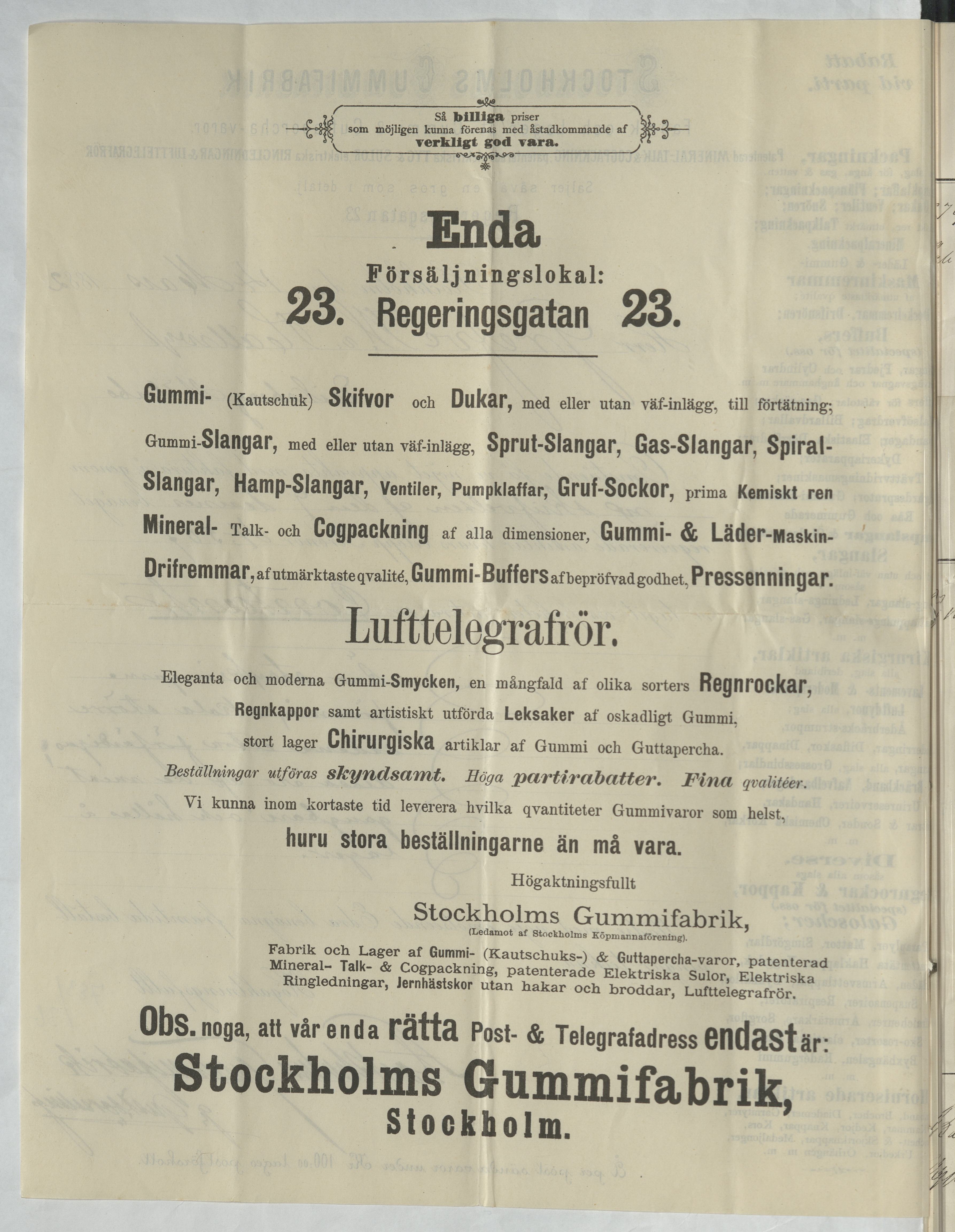 Kvitto från Stockholms Gummifabrik