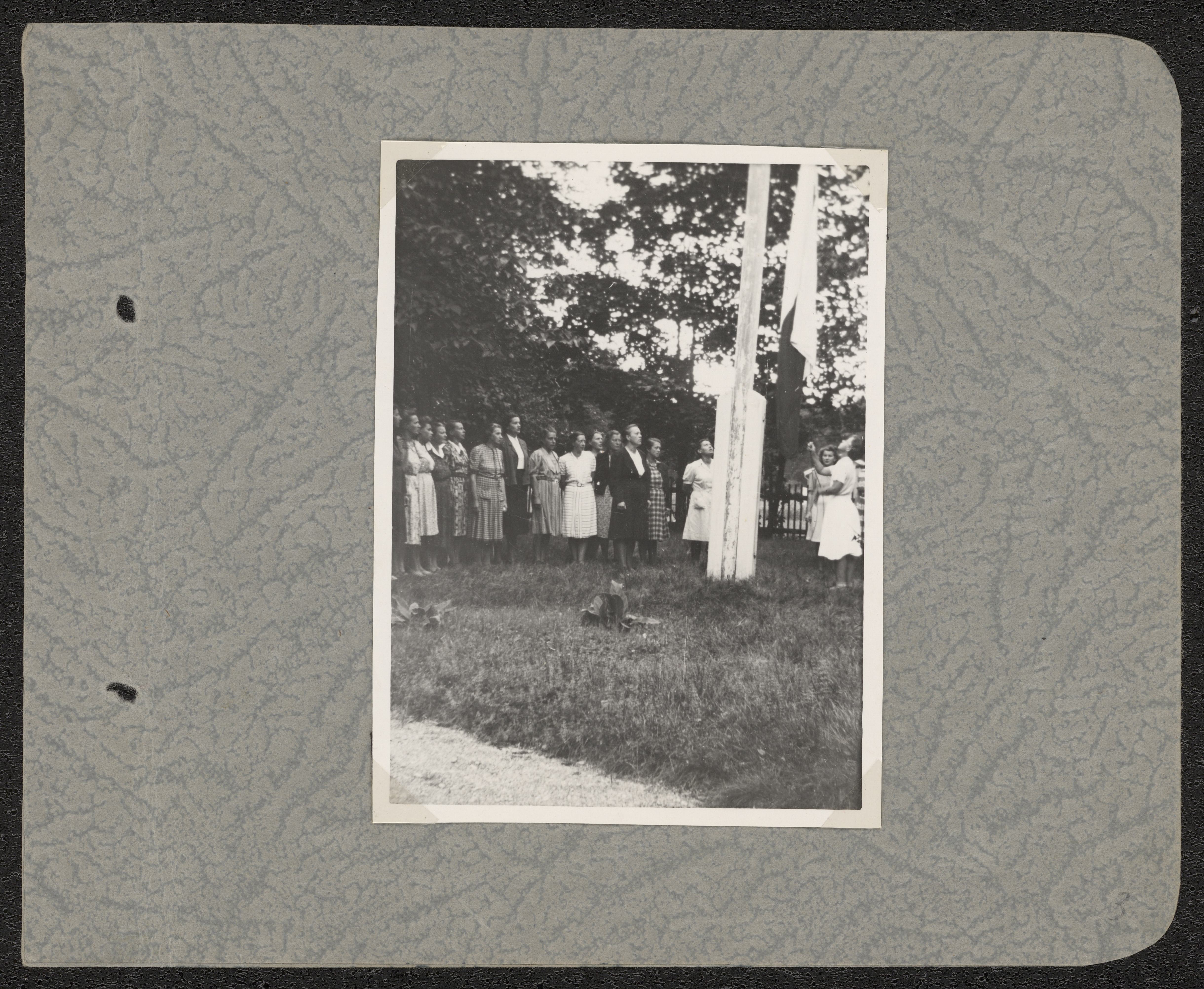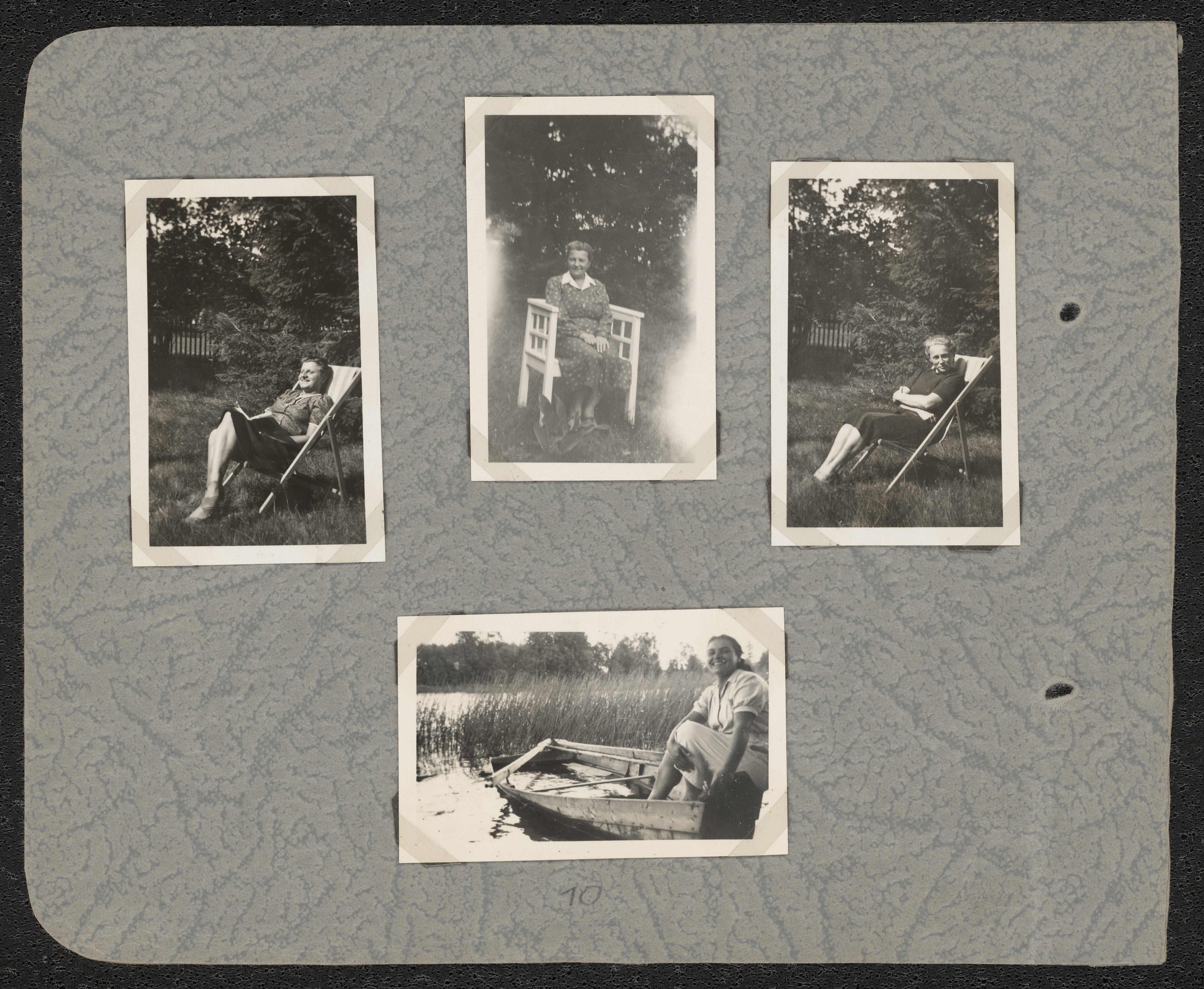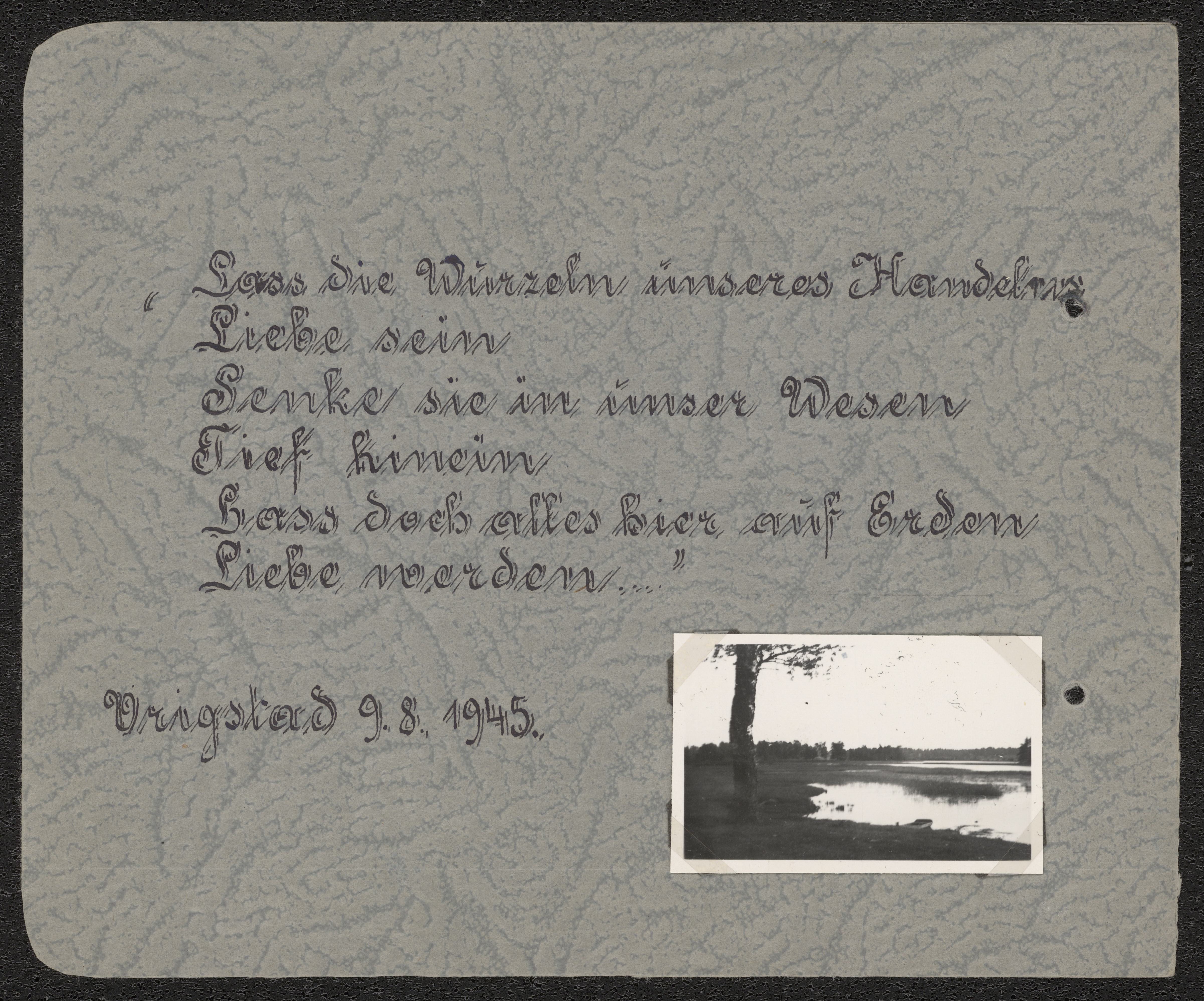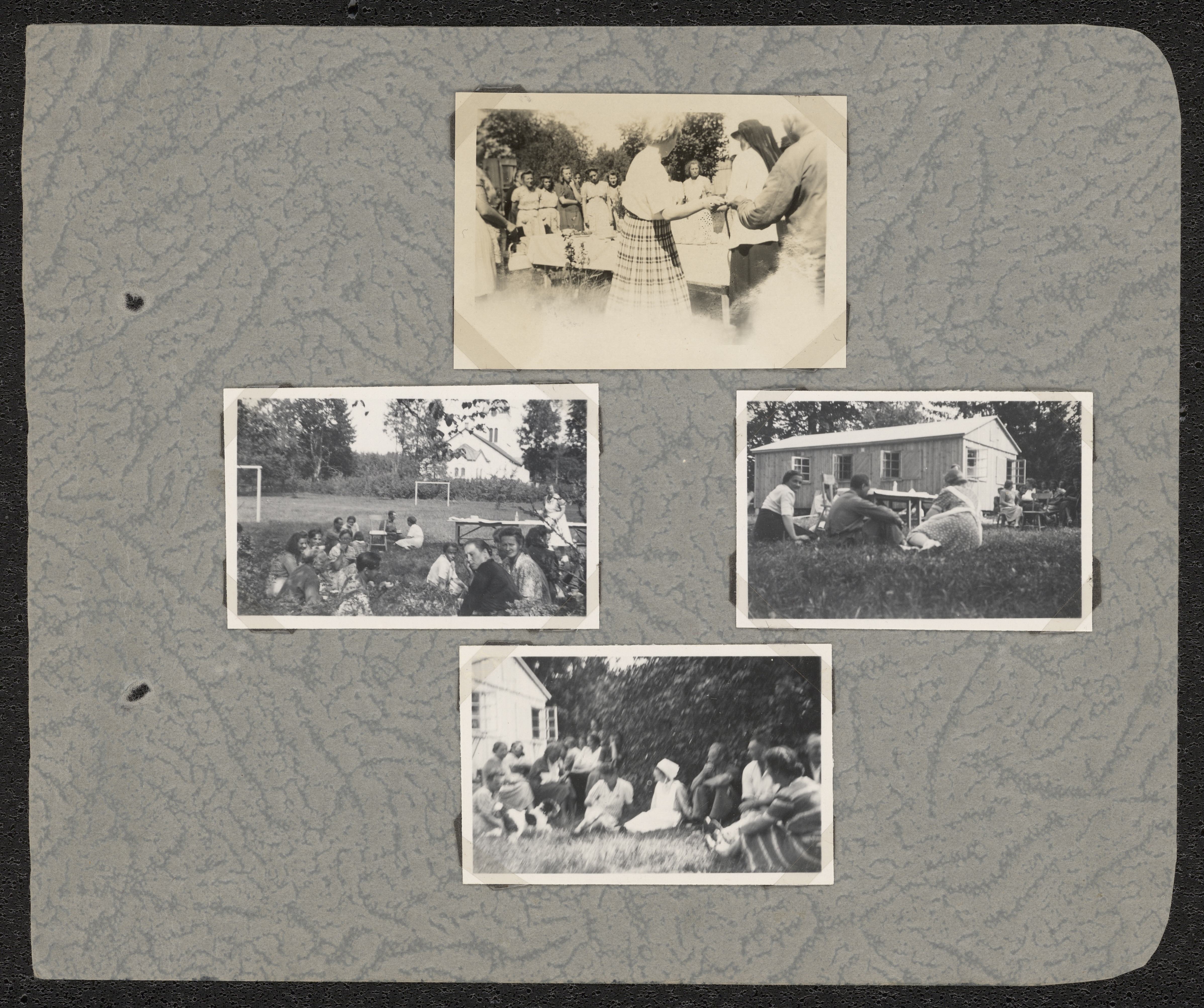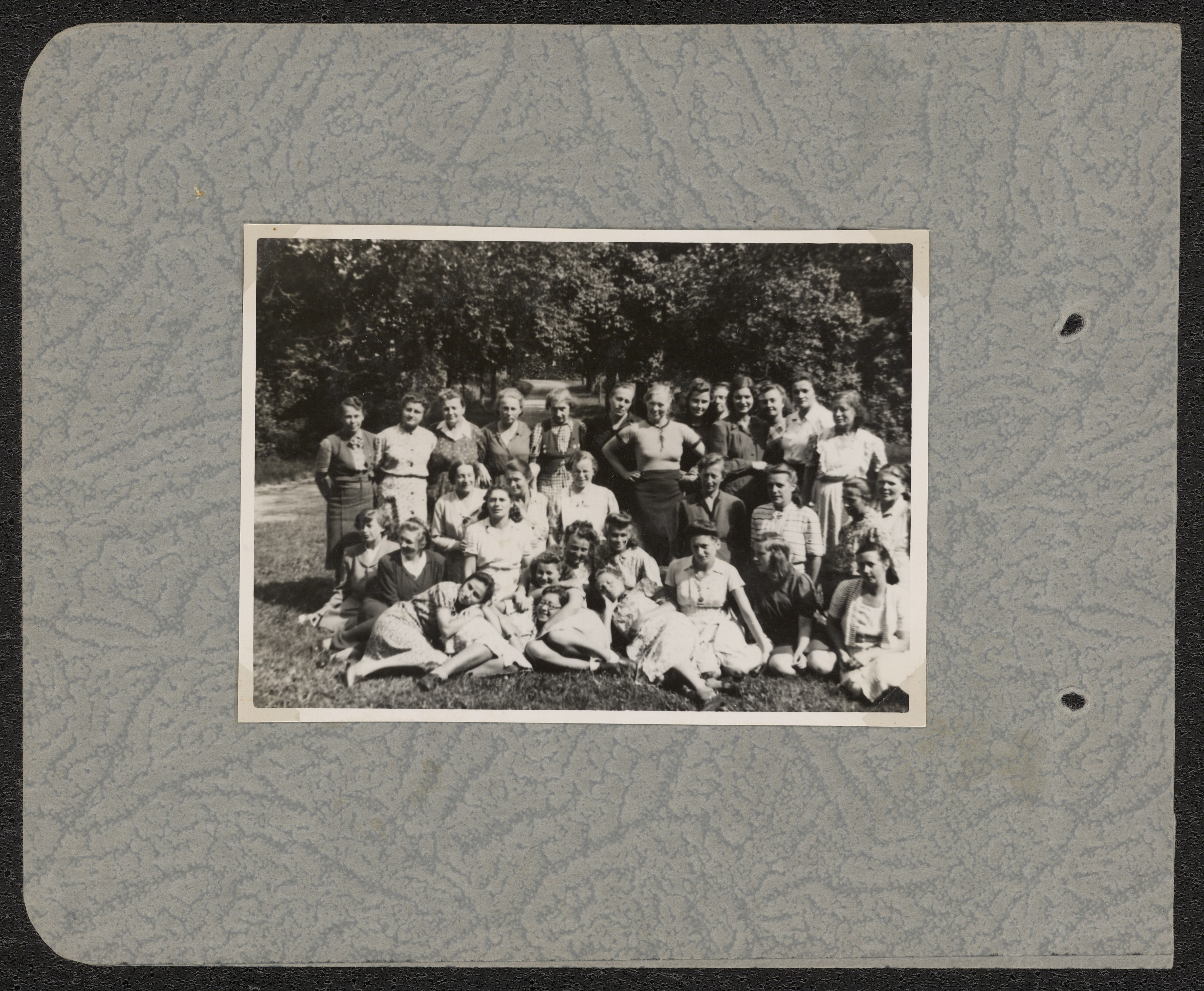Fotoalbum som tillhört Auguste Sommer. Albumet har textilklädda pärmar och är dekorerat med ett rödvitt band. Även pärmarna är sammanbundna med ett snöre i samma färger. Albumet innehåller fotografier från IM-hemmet i Vrigstad (Vrigstadshemmet). Inomeuropeisk mission (IM) grundades av Britta Holmström 1938, och prästgården i Vrigstad köpets 1945 för att ta emot polska överlevande som kom med de vita bussarna. Auguste Sommer ska ha tjänstgjort som arbetsterapeut på Vrigstadshemmet under sommaren 1945. På albumets näst sista sida finns namnteckningar av de boende, som identifierats av en av de överlevande (nedan kallad uppgiftslämnaren). Överst står Alfreda Mvoz. Hon var sömmerska och mycket konstnärlig. Hon sydde uppgiftslämnarens första folkdräkt av avlagda lakan. Rad fem, nerifrån till vänster, Anna Wilczynska. Under hennes namn syns hennes två döttrar Krystyna (1925-2015) och Maria. Uppgiftslämnaren bodde granne med dem på IM och gissar att Anna var ca 60 år när hon kom till IM. Alla tre talade flytande franska. Krystyna flyttade till Norrland där hon gifte sig och Maria träffade en spanska man och flyttade till Spanien. Näst längst ner till höger står Irena Jaworowiz (enl. svenska arkiv f. 1897 i Tyskland, troligen dagens Polen). Enligt uppgiftslämnaren hade Irena suttit länge i koncentrationsläger, och flyttade efter anländandet till Sverige till Lund där hon blev bibliotekarie. I Lund lärde hon känna Yvonne Richter. Efter Irenes pension flyttade de tillbaka till IM-hemmet. Irena kom att adoptera Yvonne. Båda två ligger begravda på kyrkogården i Vrigstad och på gravstenarna står det Irena Jaworowicz och Yvonne Richter Jaworowicz.