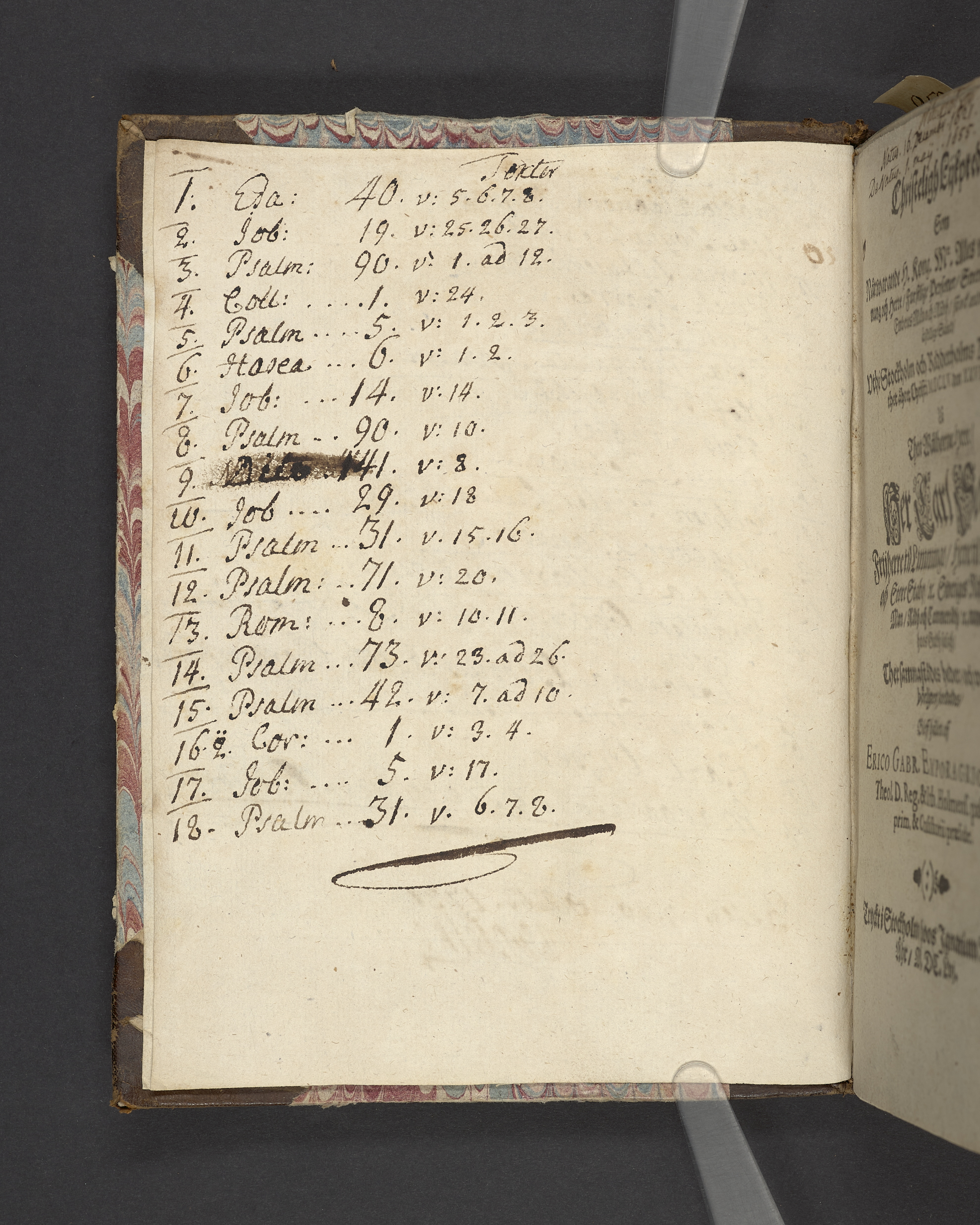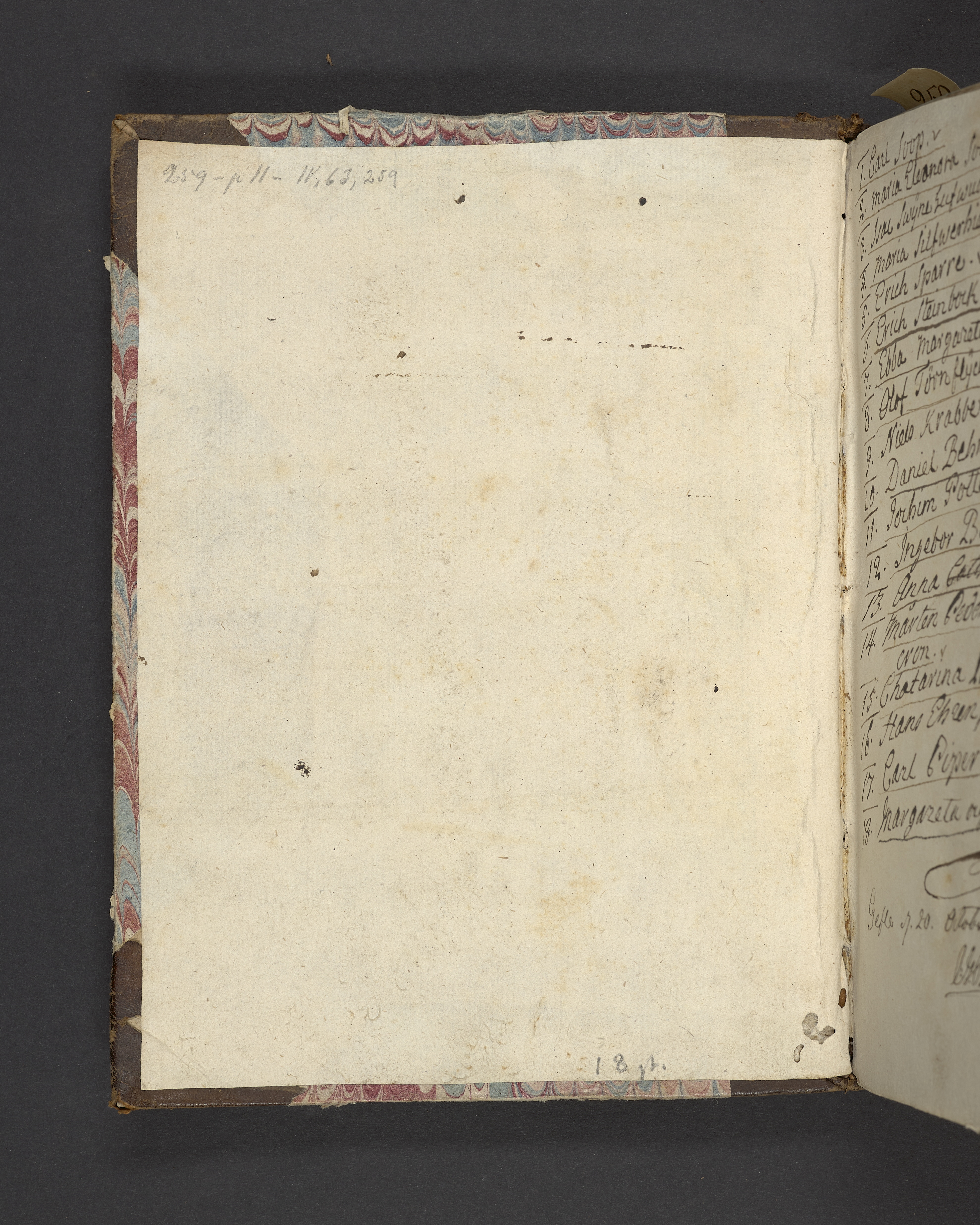 Band m. pärmar av marmorerat papper, rygg och hörn av fårskinn. Pärmfyllnad: papp. Inlagan består av enskilda skrifter som tillsammans häftats på tre bind, fast rygg. Variationer i papperskvalitet och storlek. 18 skrifter samlade i en volym. Handskriven innehållsförteckning som anger 18 personer. Kvartovolym nr 10 enligt Bielkes register.