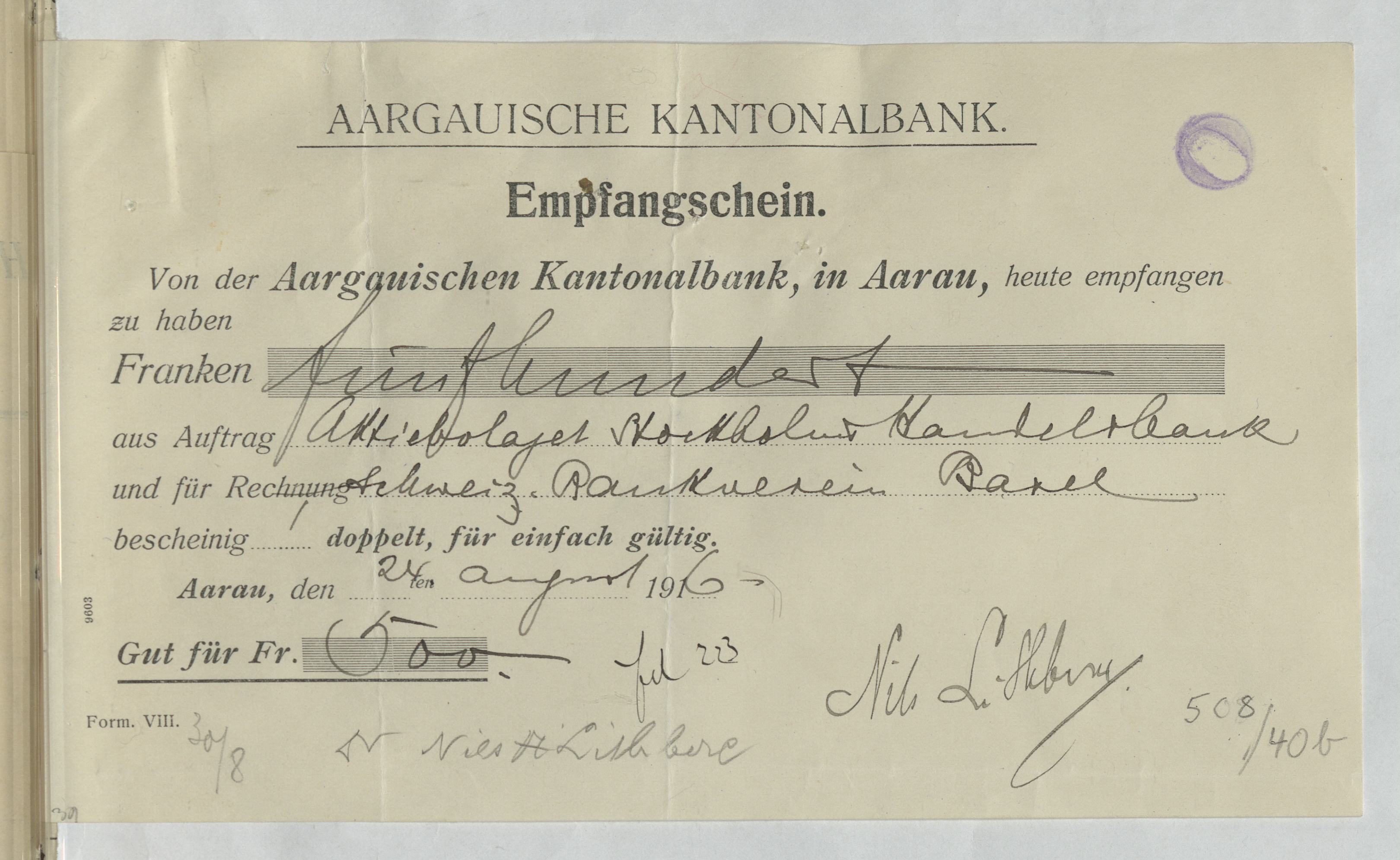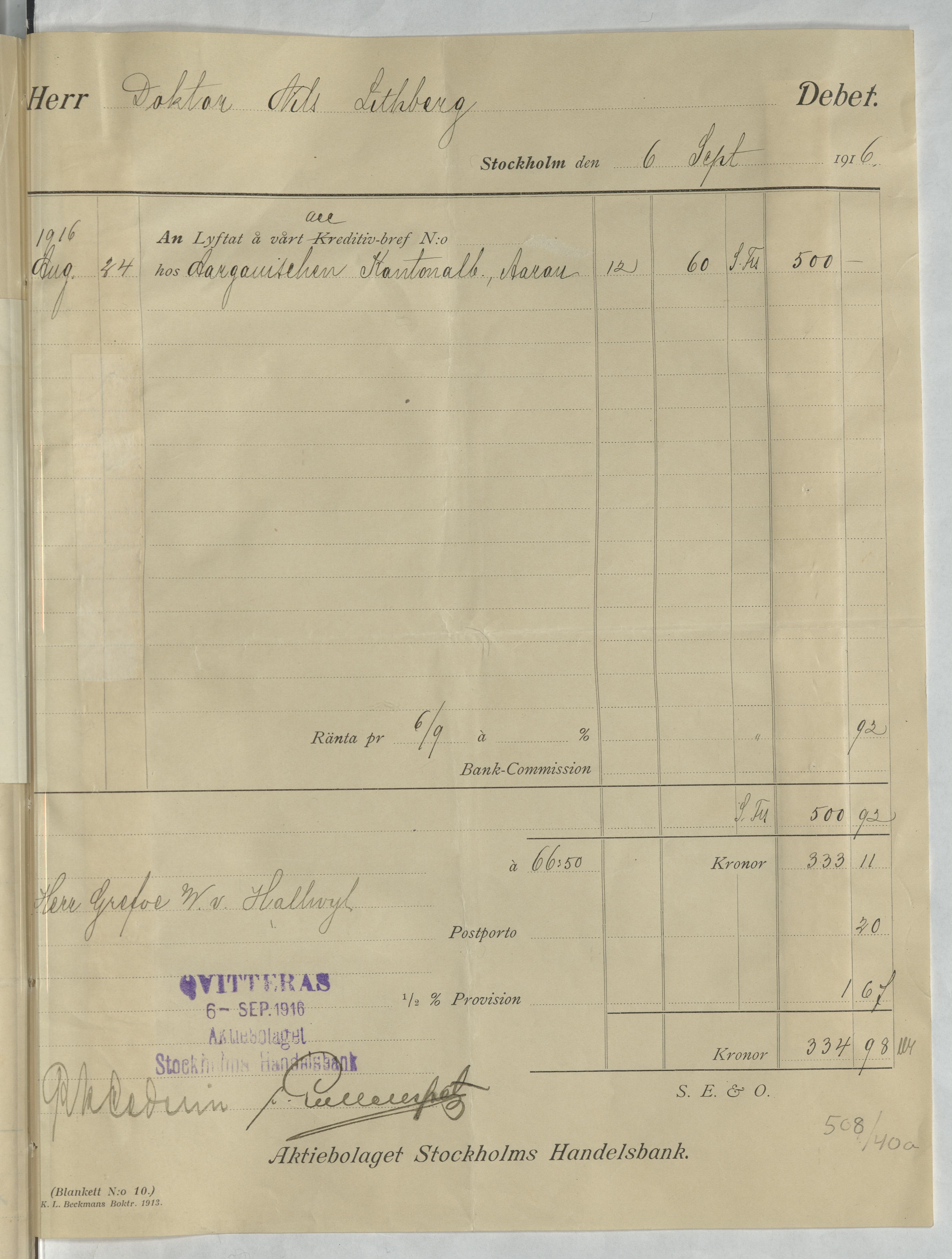 Verifikationer från Aktiebolaget Stockholms Handelsbank. Stockholm, 1916.