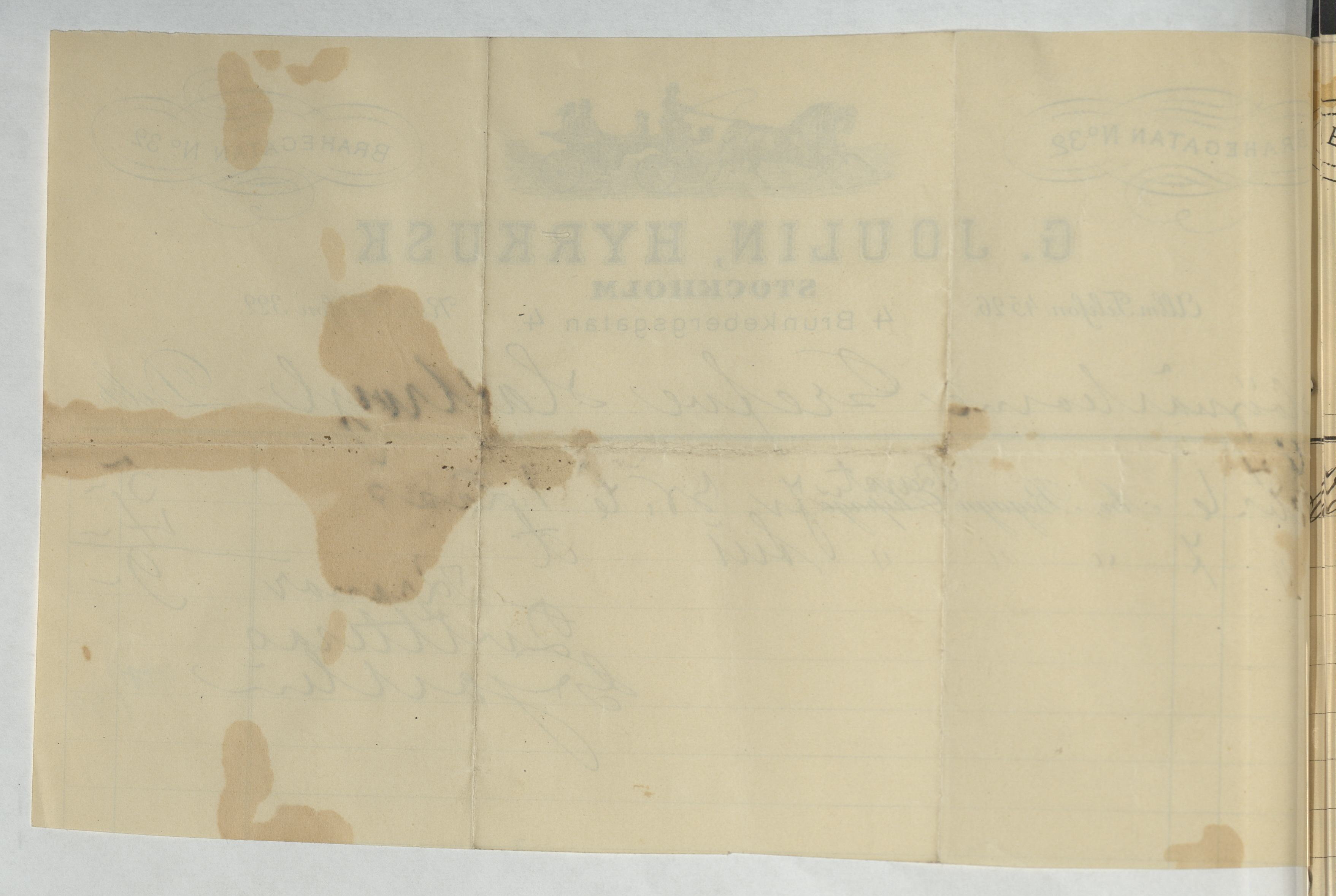 Kvitto från G. Joulin, Hyrkusk