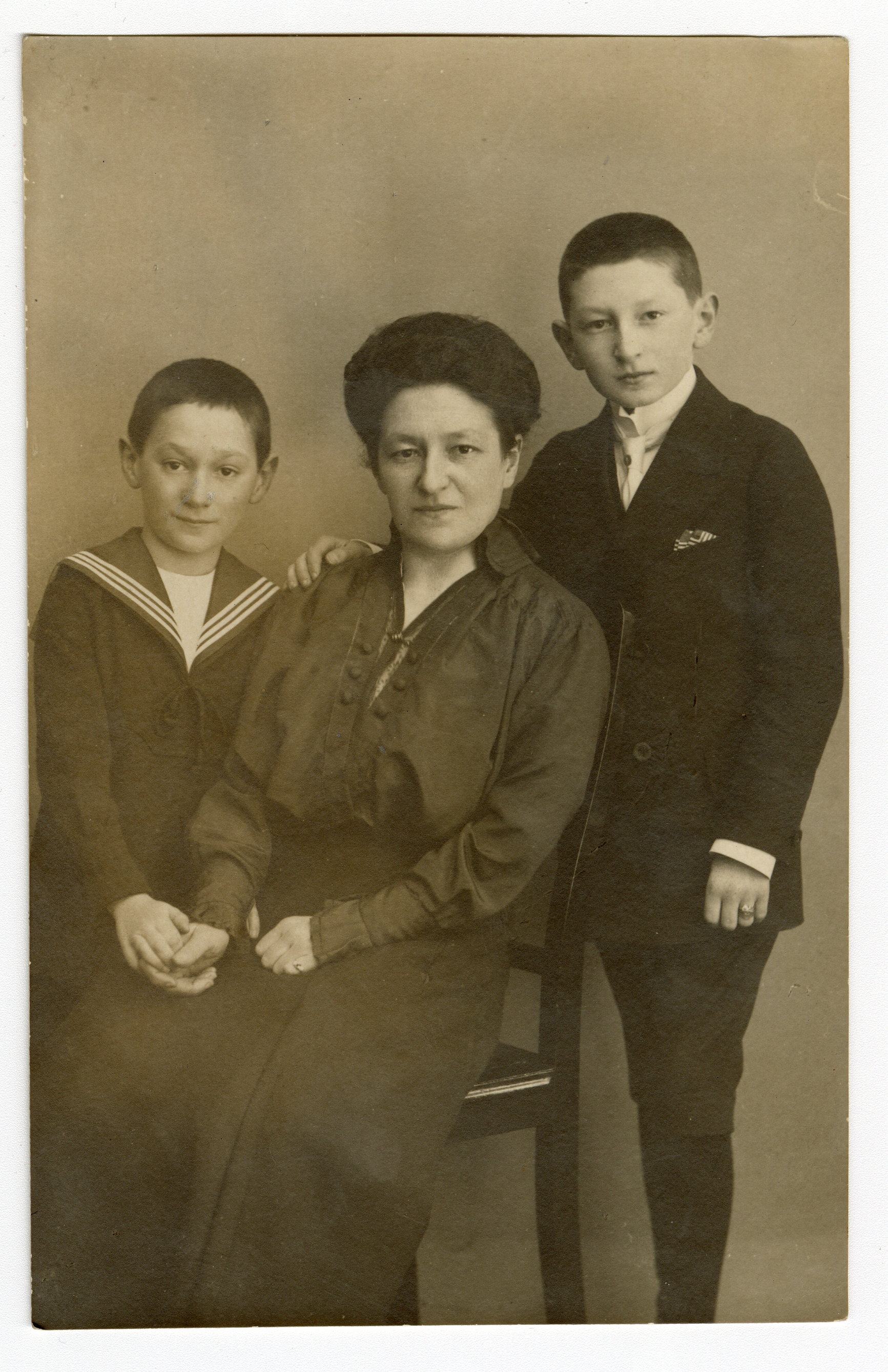 Fotografi föreställande Bella Rothschild med sönerna Arthur och Siegfried. Objektet består av två digitala filer.