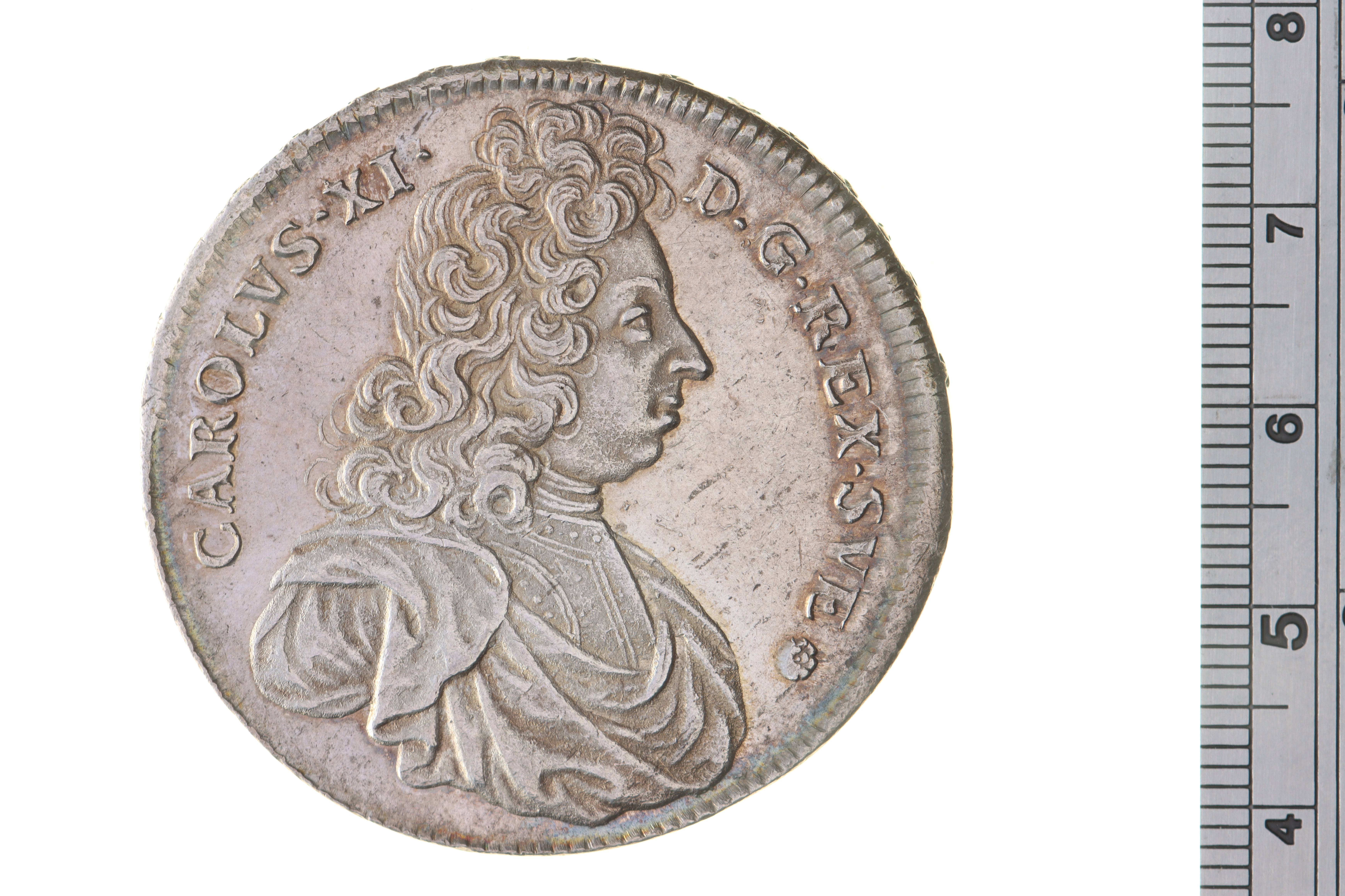 Upphov: Karl XI av Sverige. Media: Jonsson, Eeva. Ekonomiska museet - Kungliga myntkabinettet/SHM, (CC BY 4.0) Du får bearbeta och dela verket för alla ändamål, även kommersiella, så länge du anger upphovsperson och licensgivare.