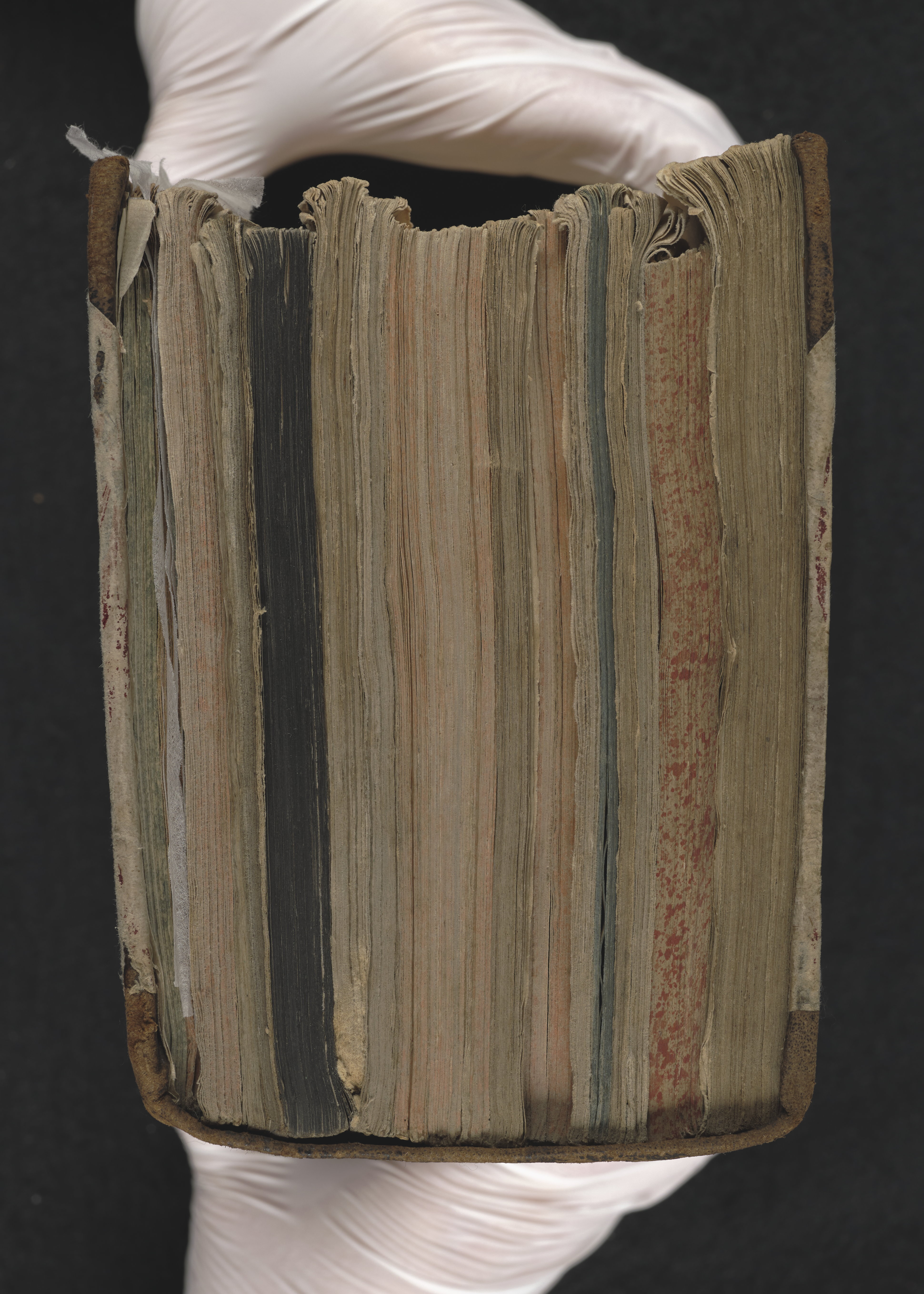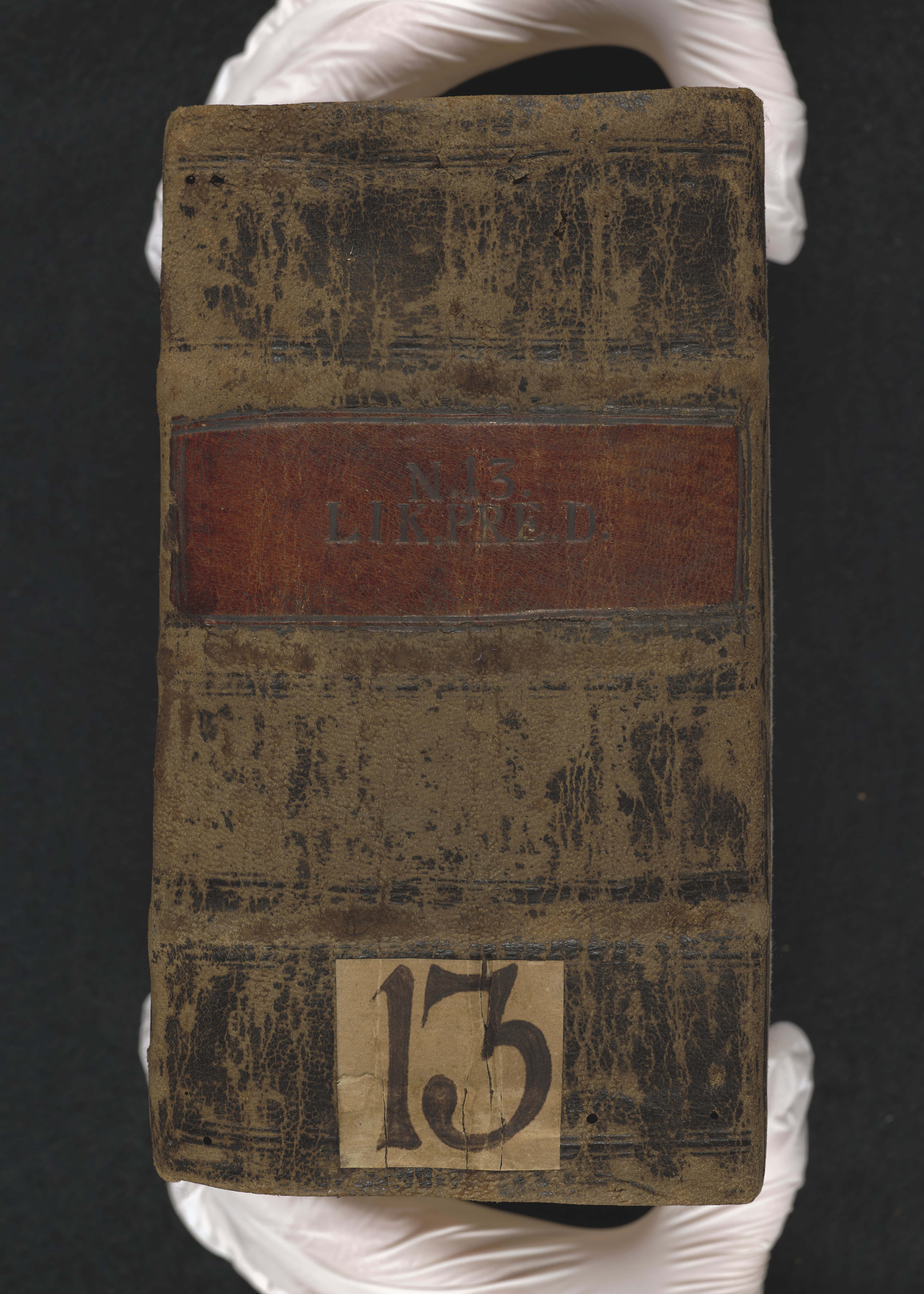 Fast rygg, pärmar av papp klädda med marmorerat papper, rygg och hörn av kalvskinn. Inlagan består av enskilda skrifter som tillsammans häftats på tre bind, Variationer i papperskvalitet och storlek. 30 skrifter samlade i en volym. Handskriven innehållsförteckning som anger 22 personer. Kvartovolym nr. 13 enligt Bielkes register.