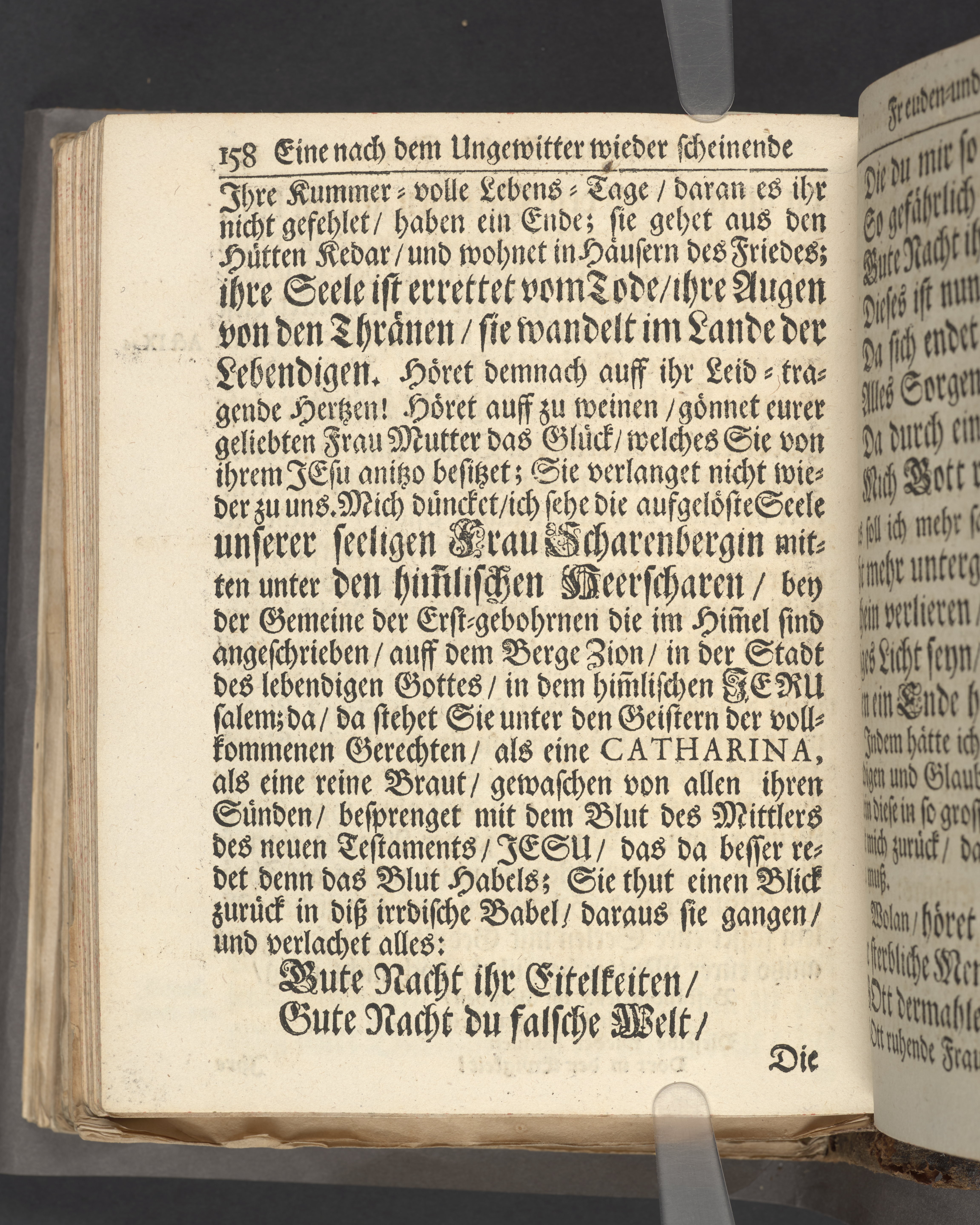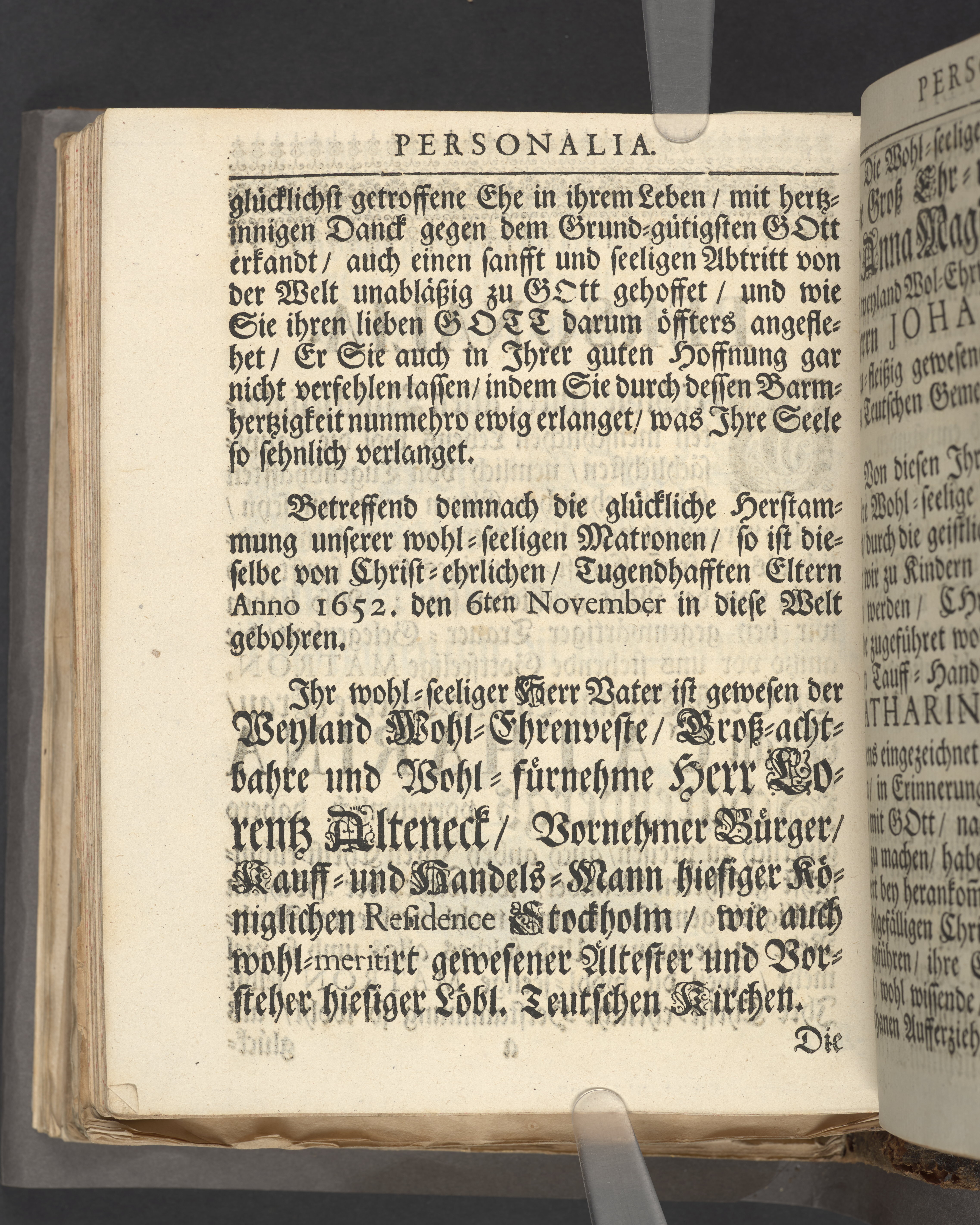 Eine nach dem Ungewitter wieder scheinende Freuden- und Gnaden-Sonne, bey christ-üblicher Leich-Begängnisz der wohl-edlen ... Matron, Fr: Catharinæ gebohrnen Alteneckin, des Weyl: ... Johann Scharenbergs, gewesenen ansehnlichen Kauff und Handels-Manns in hiesiger königl. Residentz-Stadt Stockholm nachgelassenen Frau Wittwen, denen betrübten zum kräfftigen Trost, und zur Erbauung der damals gegenwärtigen so wohl hohen als Volck-reichen Versamlung in der Haupt-Kirchen zu S. Nicolai am Sonntag Jubilate, den 11. Maji Anno 1712. aus dem verordneten Leichen-Text Psalm. CXVI. v.6.7.8. fürgestellet von Timotheo Lütkemann. ... Stockholm, druckts Julius Georg Matthiæ, königl. Antiq. Arc. Buchd.