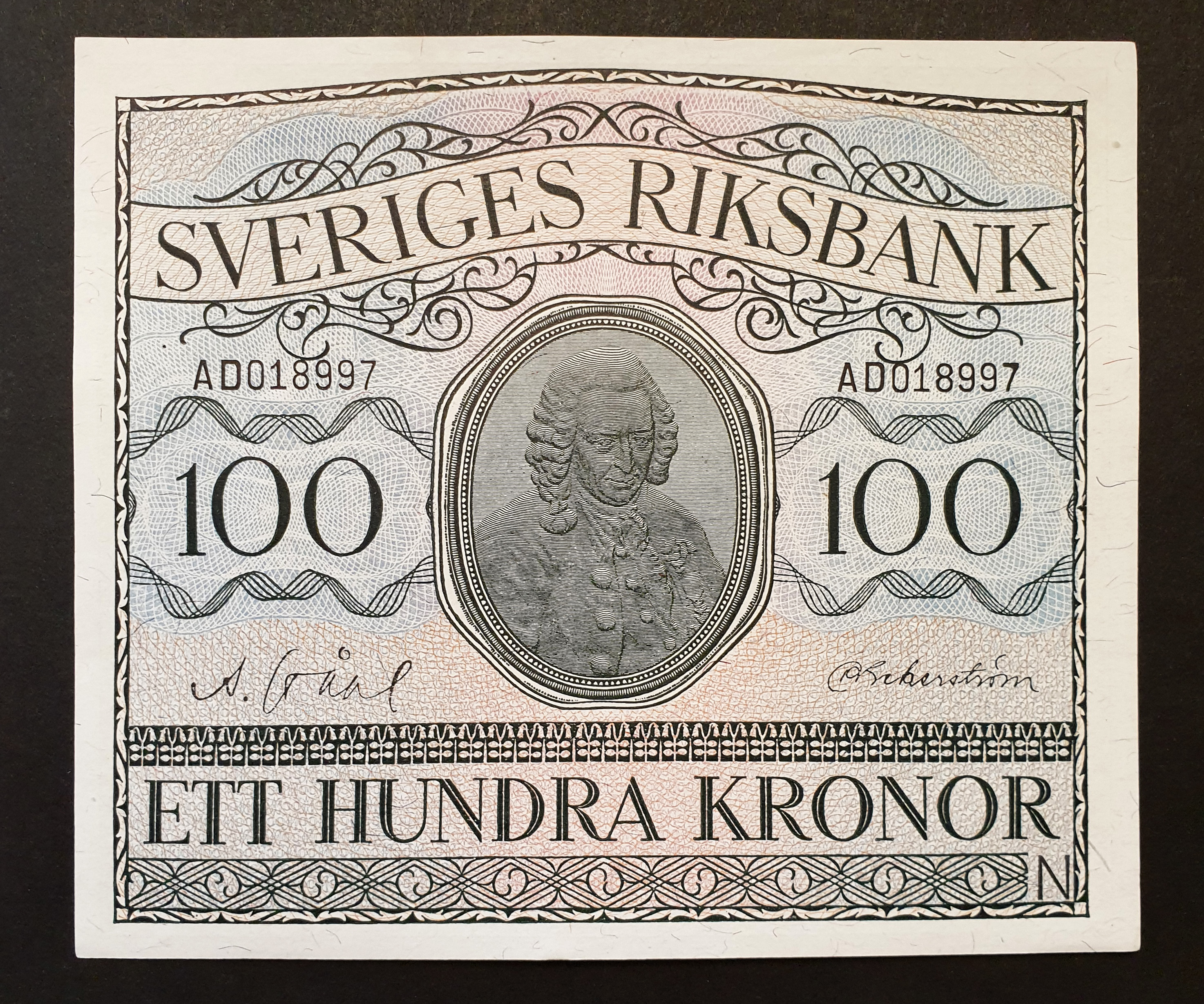 Upphov: Sveriges riksbank. Media: Bonnevier, Helena. Ekonomiska museet - Kungliga myntkabinettet/SHM, (PDM) Upphovsrätten till detta verk har gått ut och är därmed fritt att använda på alla sätt. Ange gärna upphovsperson om denne är känd.