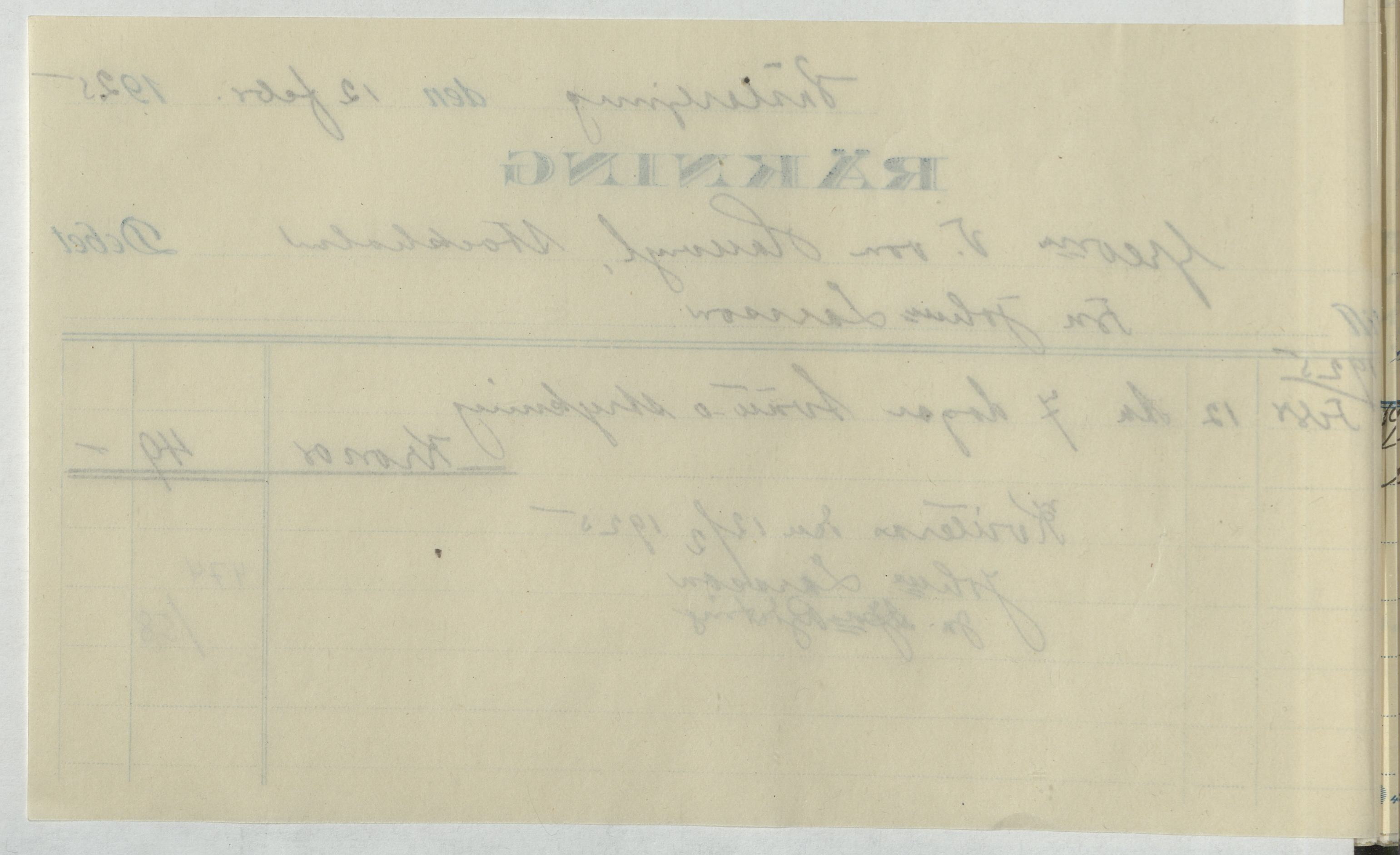 Kvitto från Johanna Larsson i Västerljung. Gällande 7 dagar tvätt- och strykning. Västerljung, 1925.