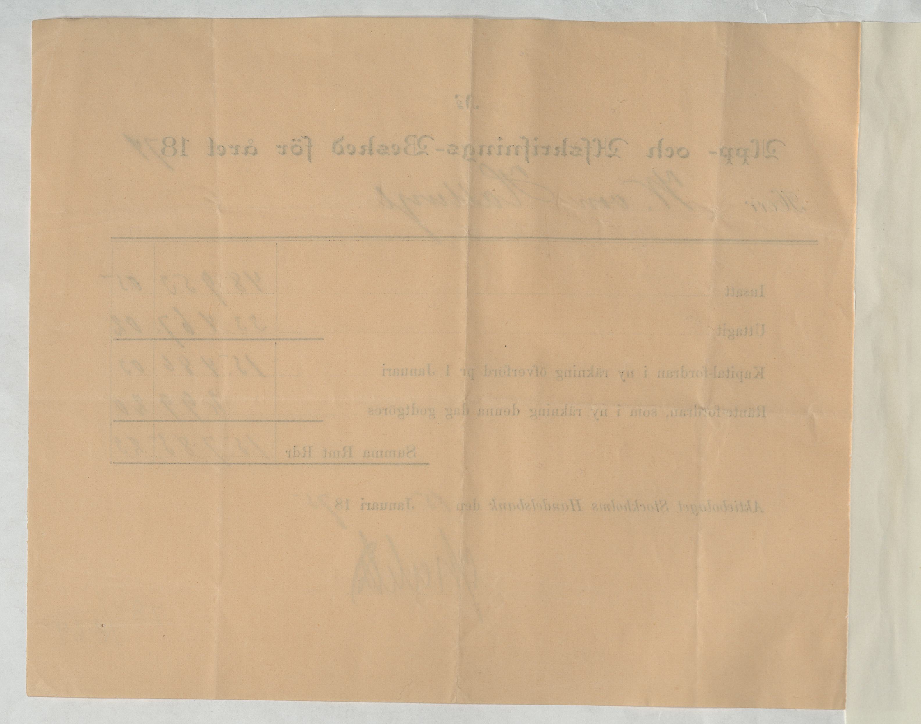 Kvitto från Aktiebolaget Stockholms Handelsbank rörande Upp- och Afskrifnings-Besked