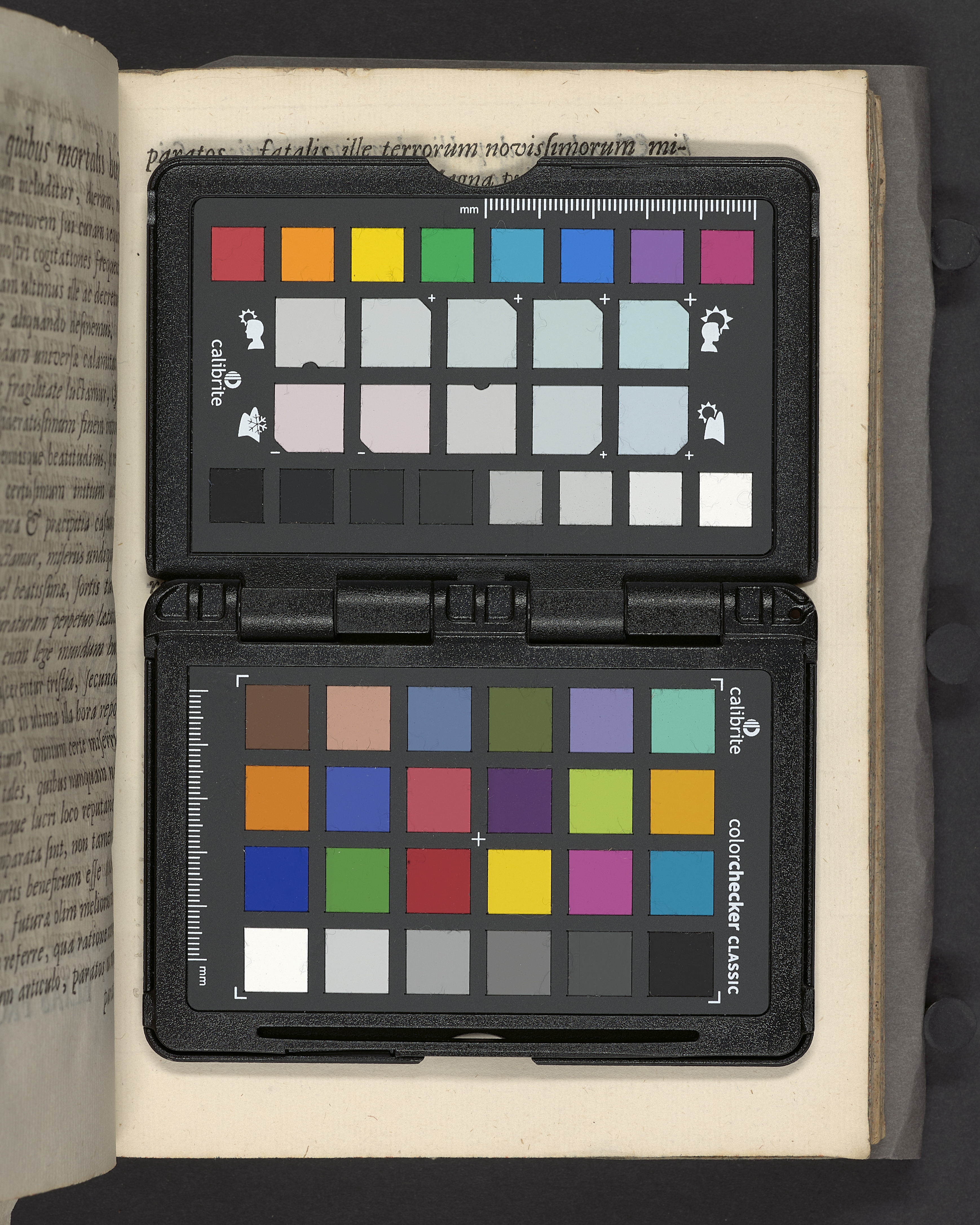 Antikva. Snitt stänkt i rött och blått.