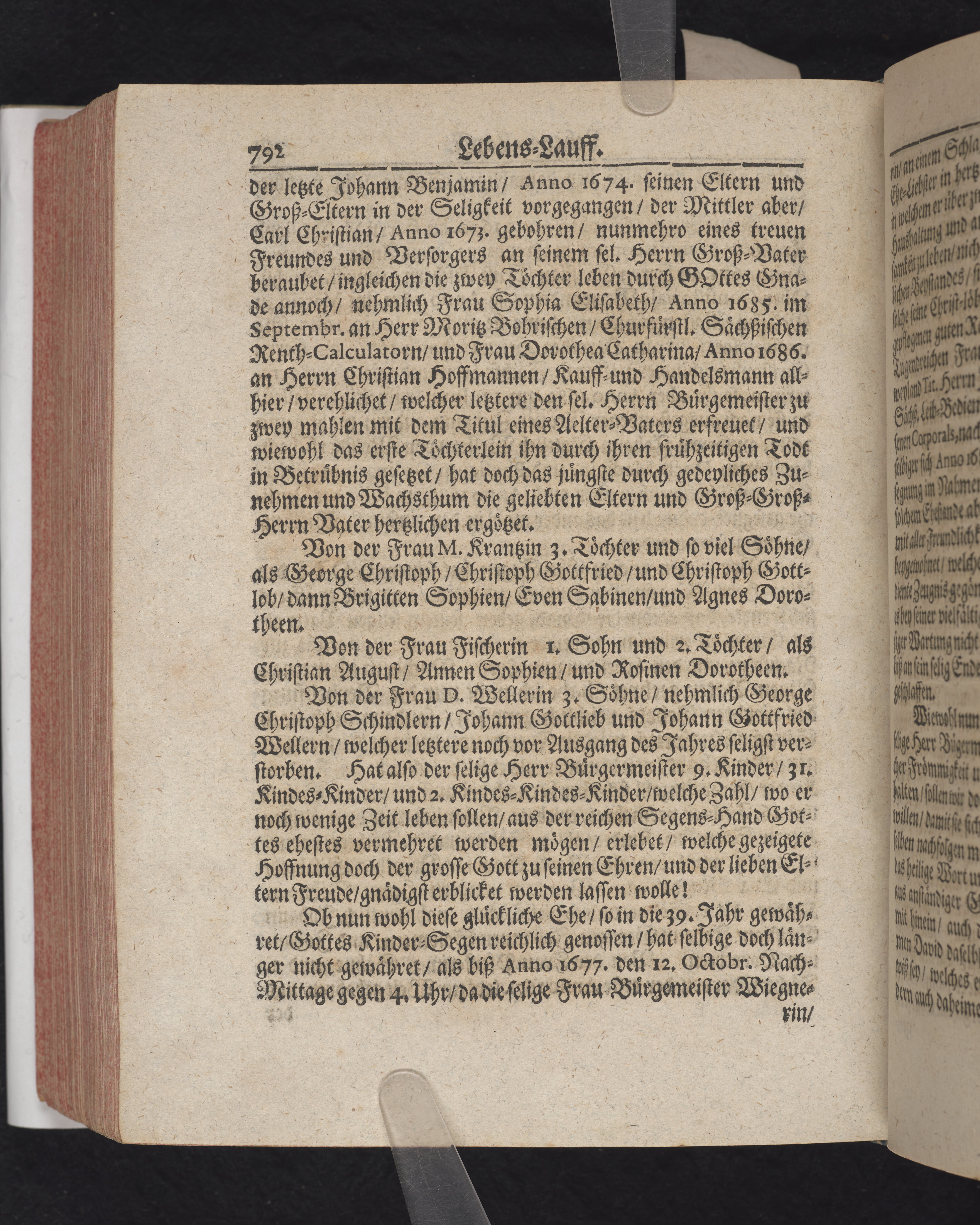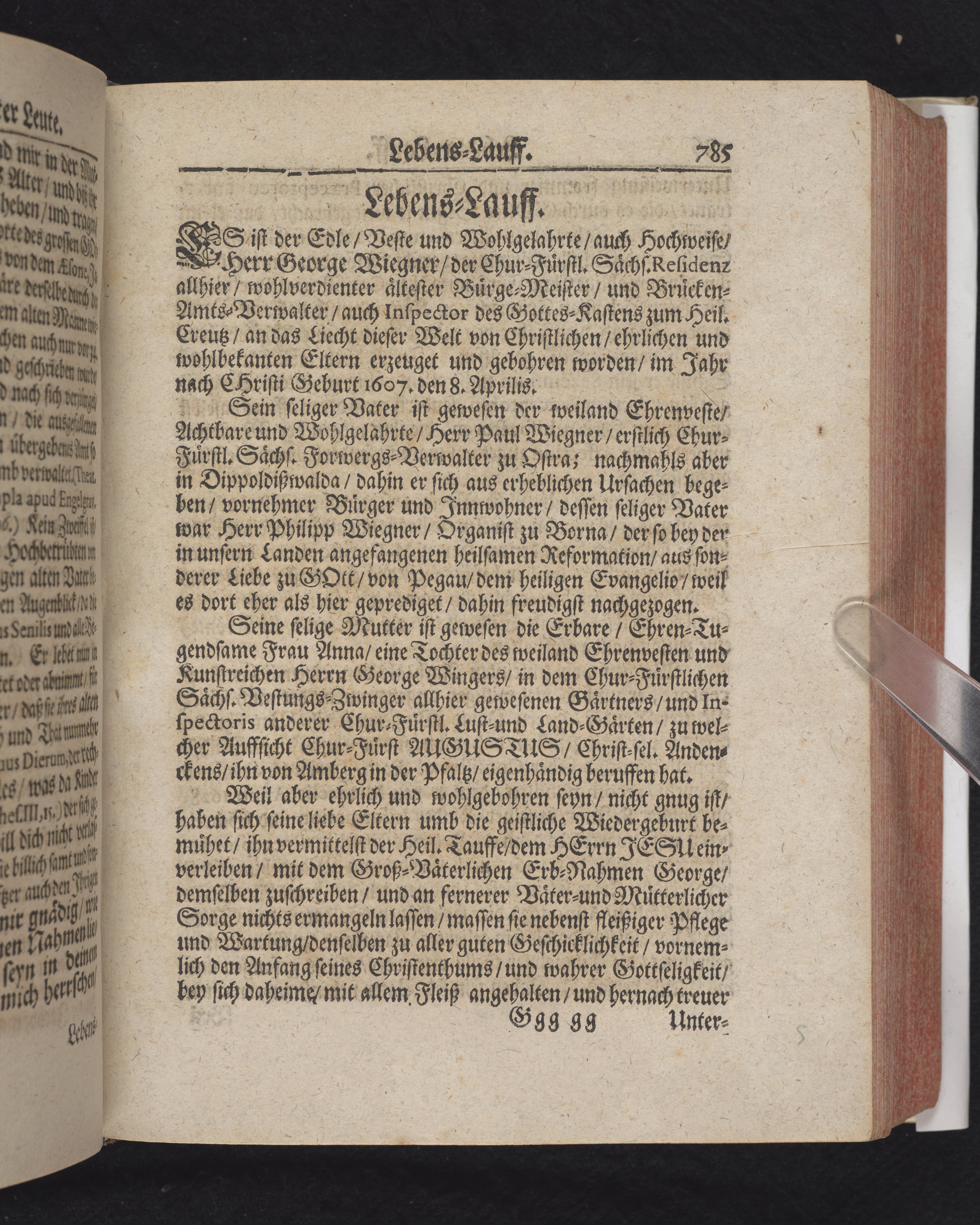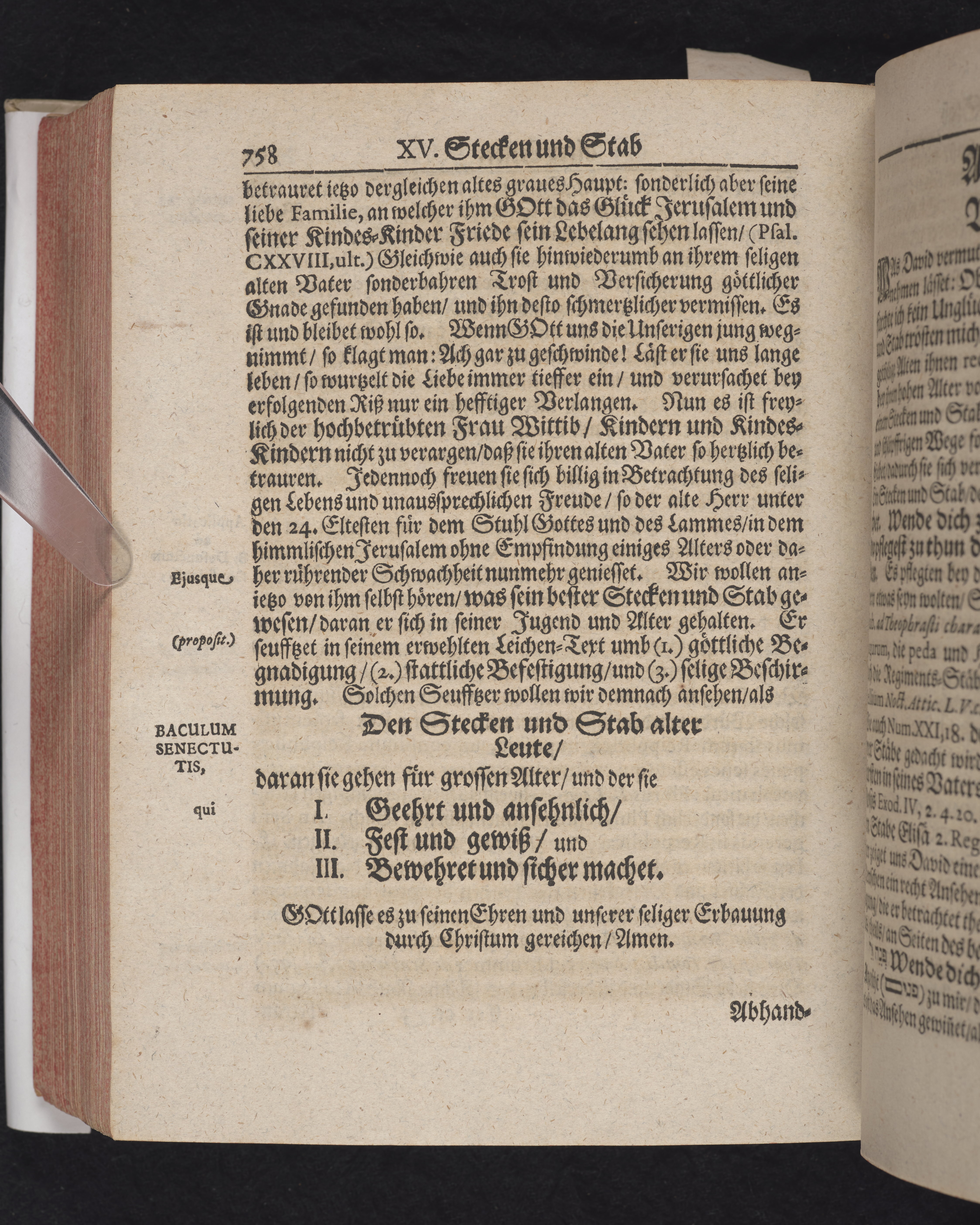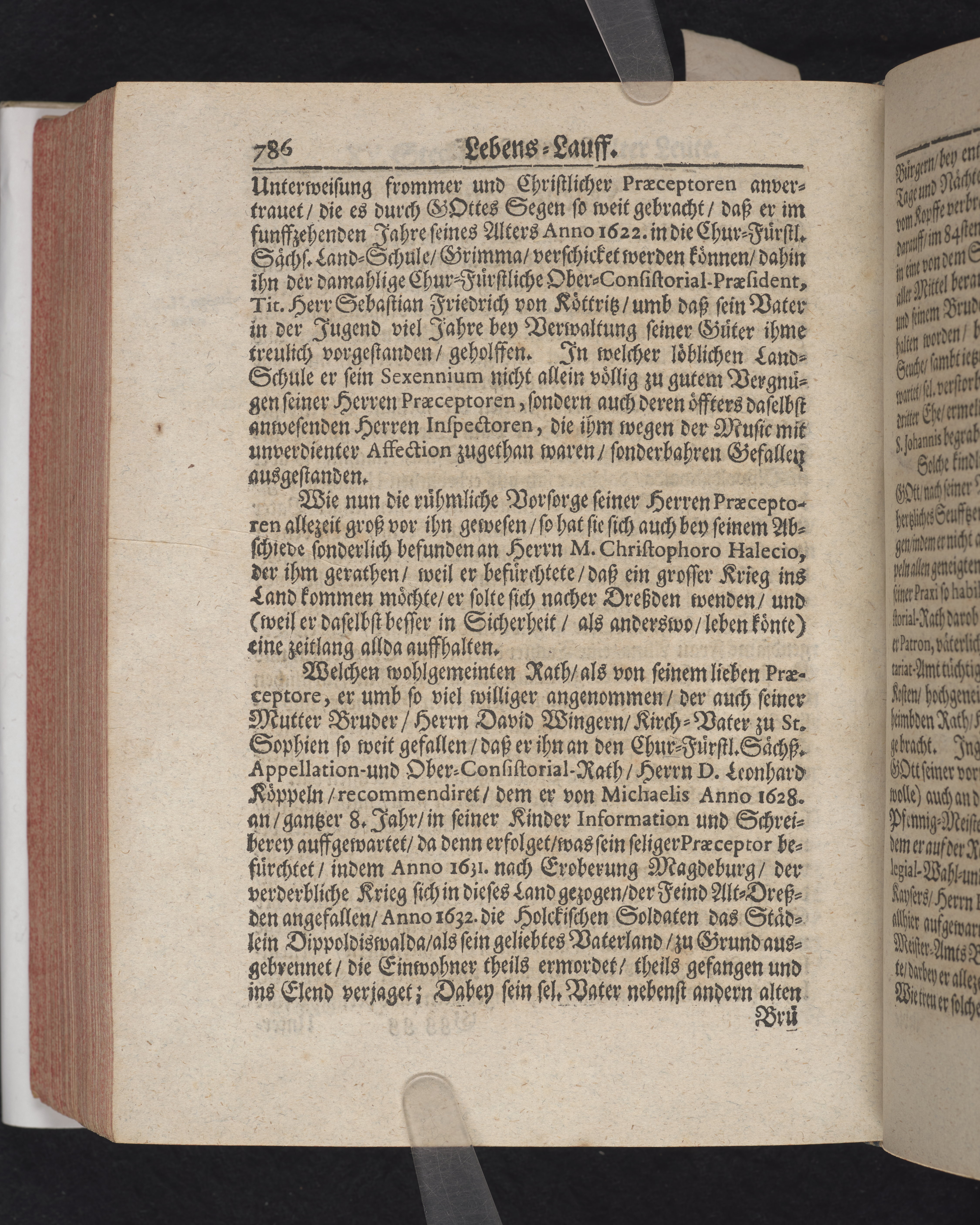 Ingår i en utgiven samling med 28 likpredikningar av Samuel Benedikt Carpzov: Grünende Gebeine, oder Leich-Predigten... Tryckt innehållsförteckning och register. Handskriven innehållsförteckning över de 28 likpredikningarna med bläck på främre försättsbladet (recto och verso).