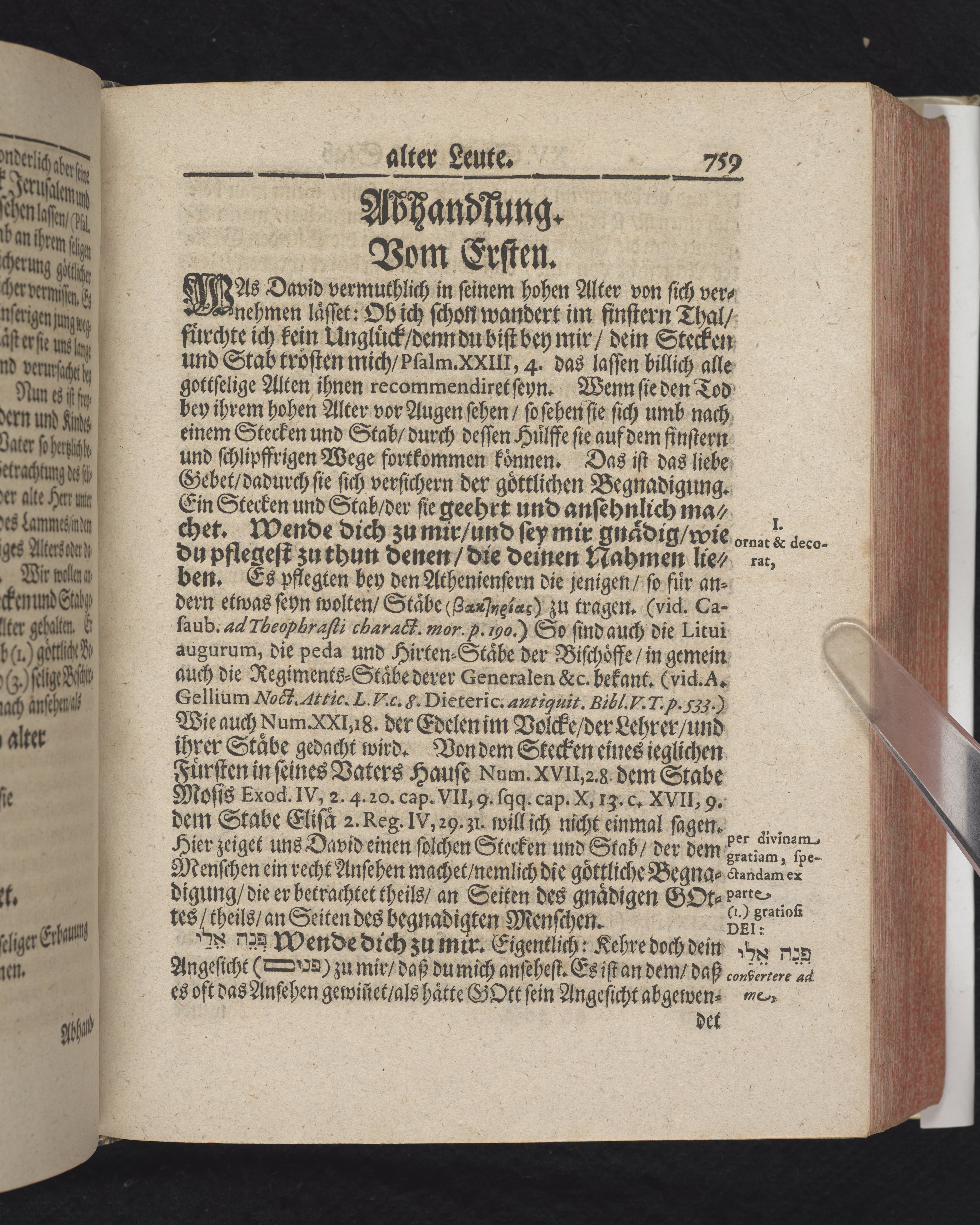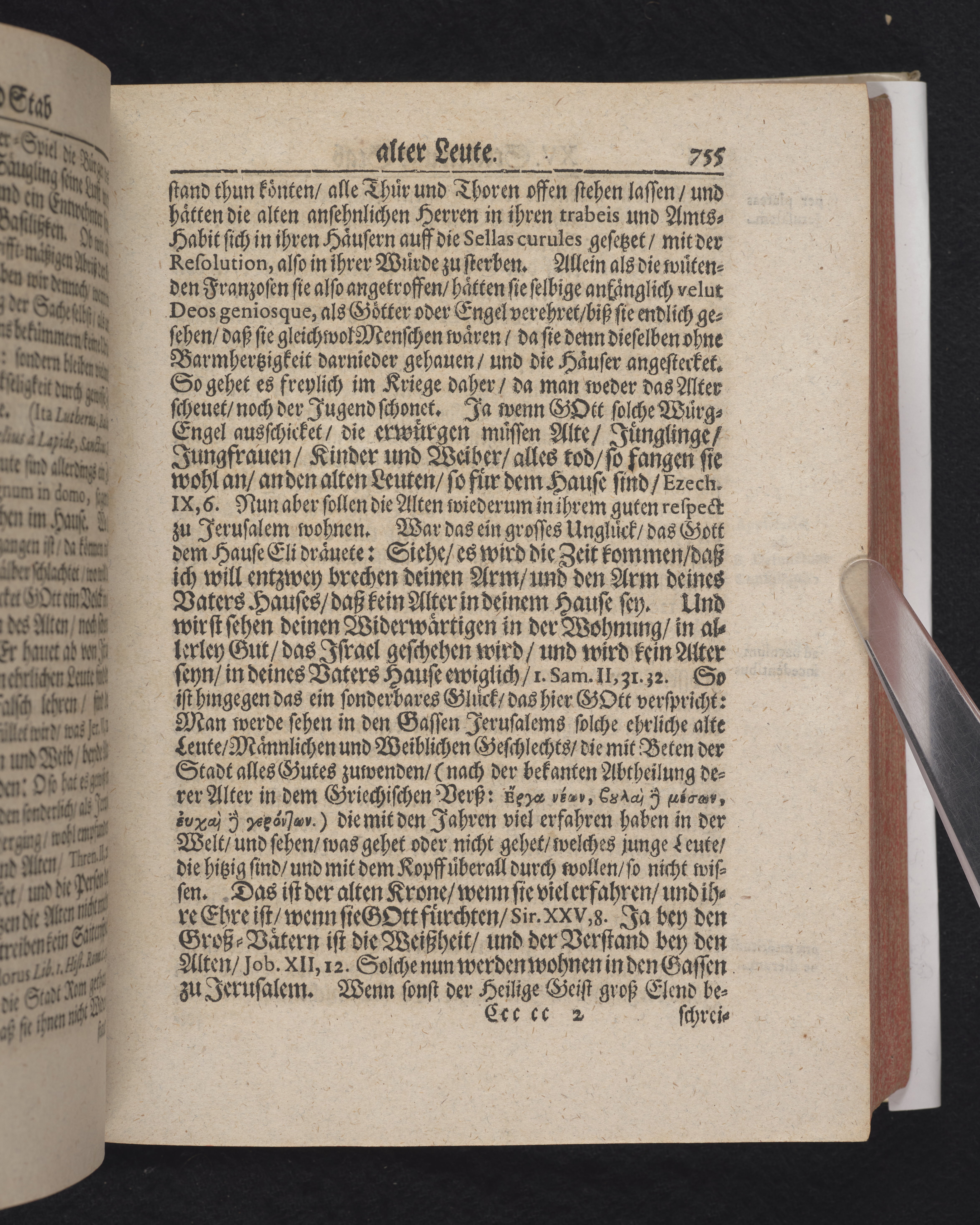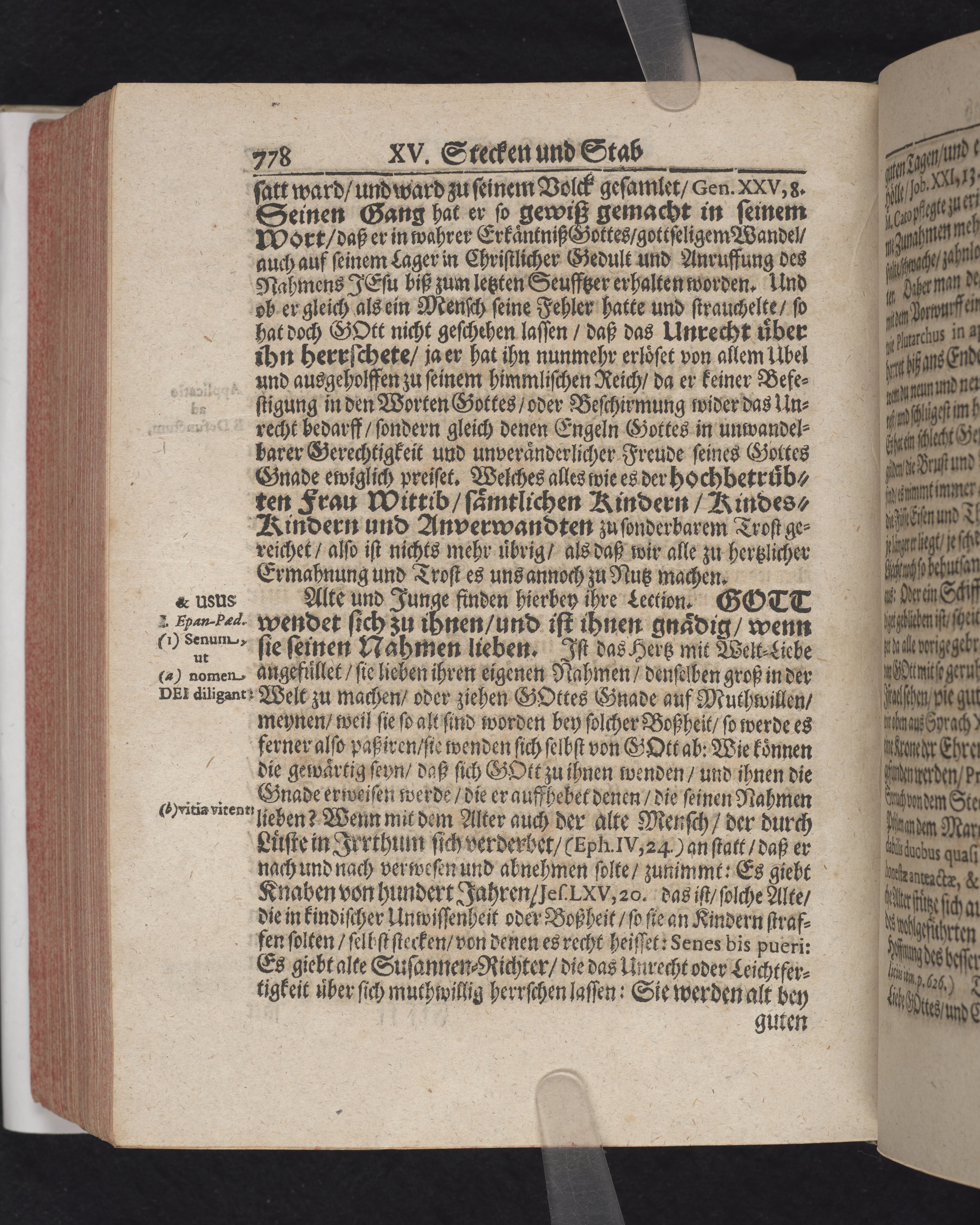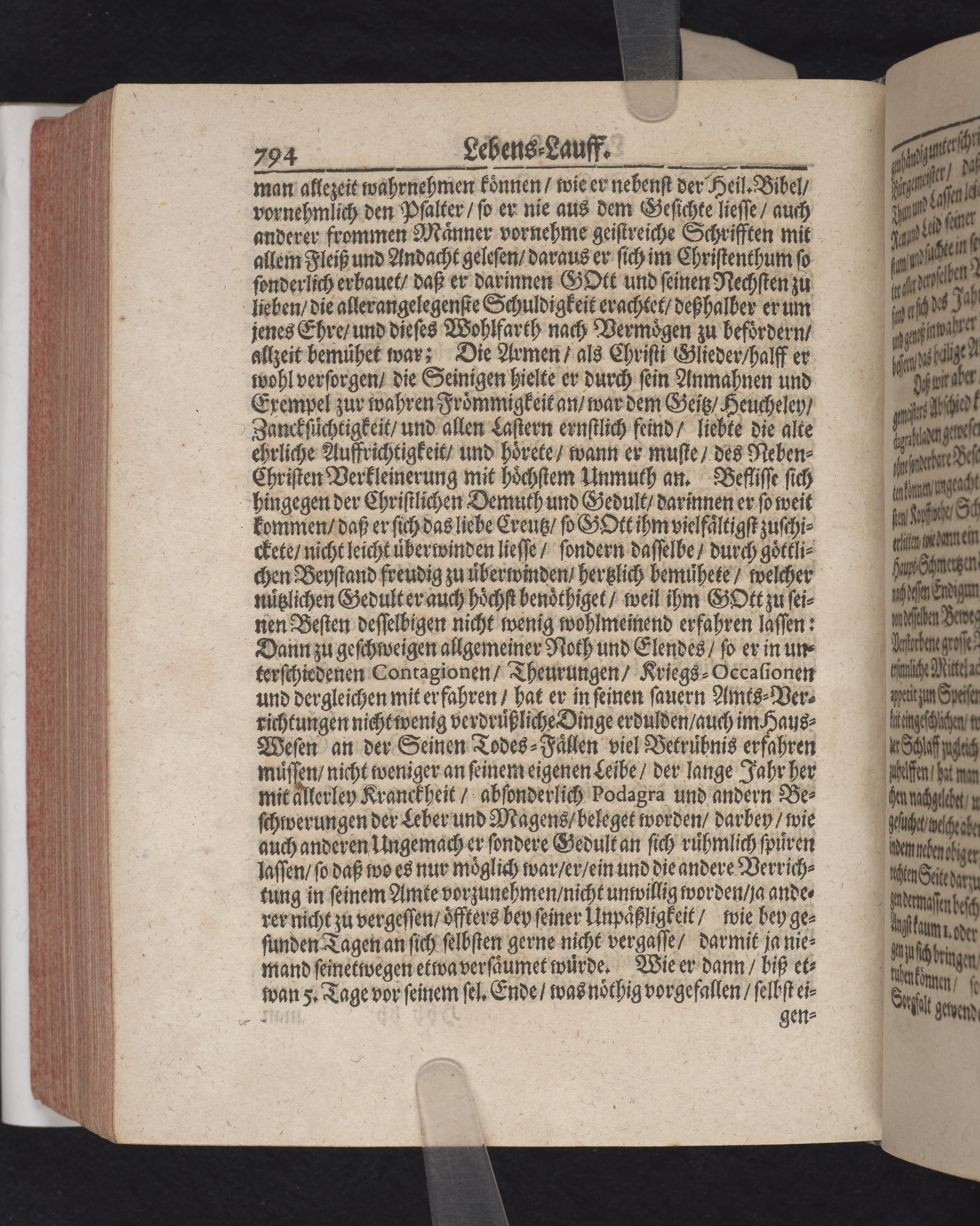 Ingår i en utgiven samling med 28 likpredikningar av Samuel Benedikt Carpzov: Grünende Gebeine, oder Leich-Predigten... Tryckt innehållsförteckning och register. Handskriven innehållsförteckning över de 28 likpredikningarna med bläck på främre försättsbladet (recto och verso).