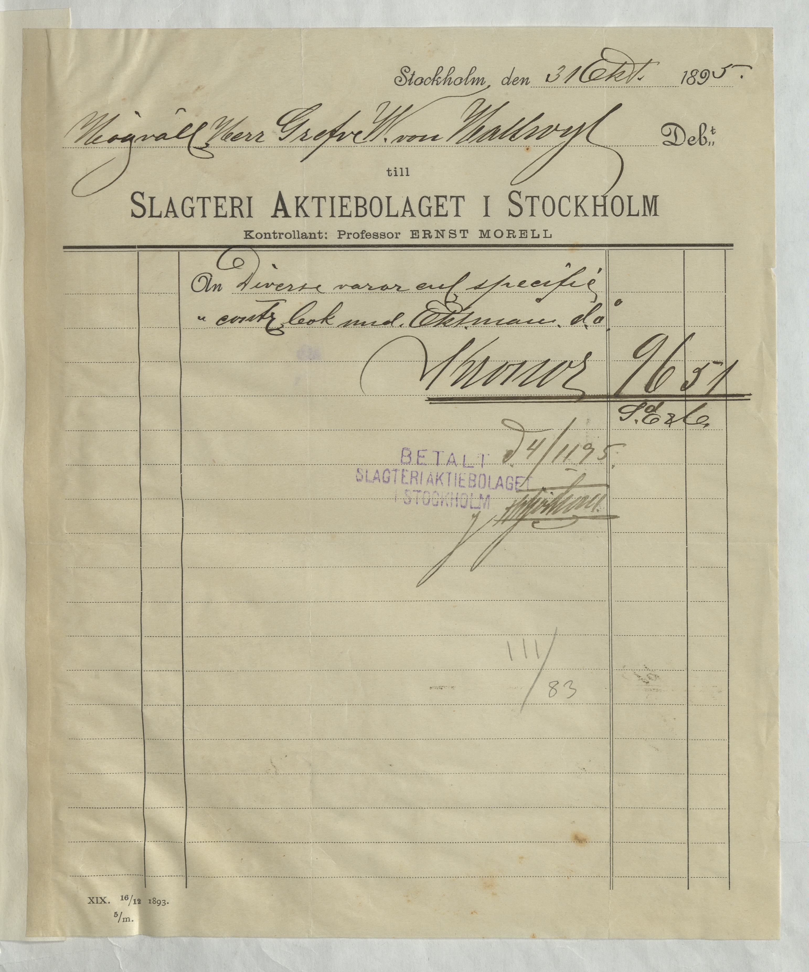Kvitto från Slagteri Aktiebolaget i Stockholm