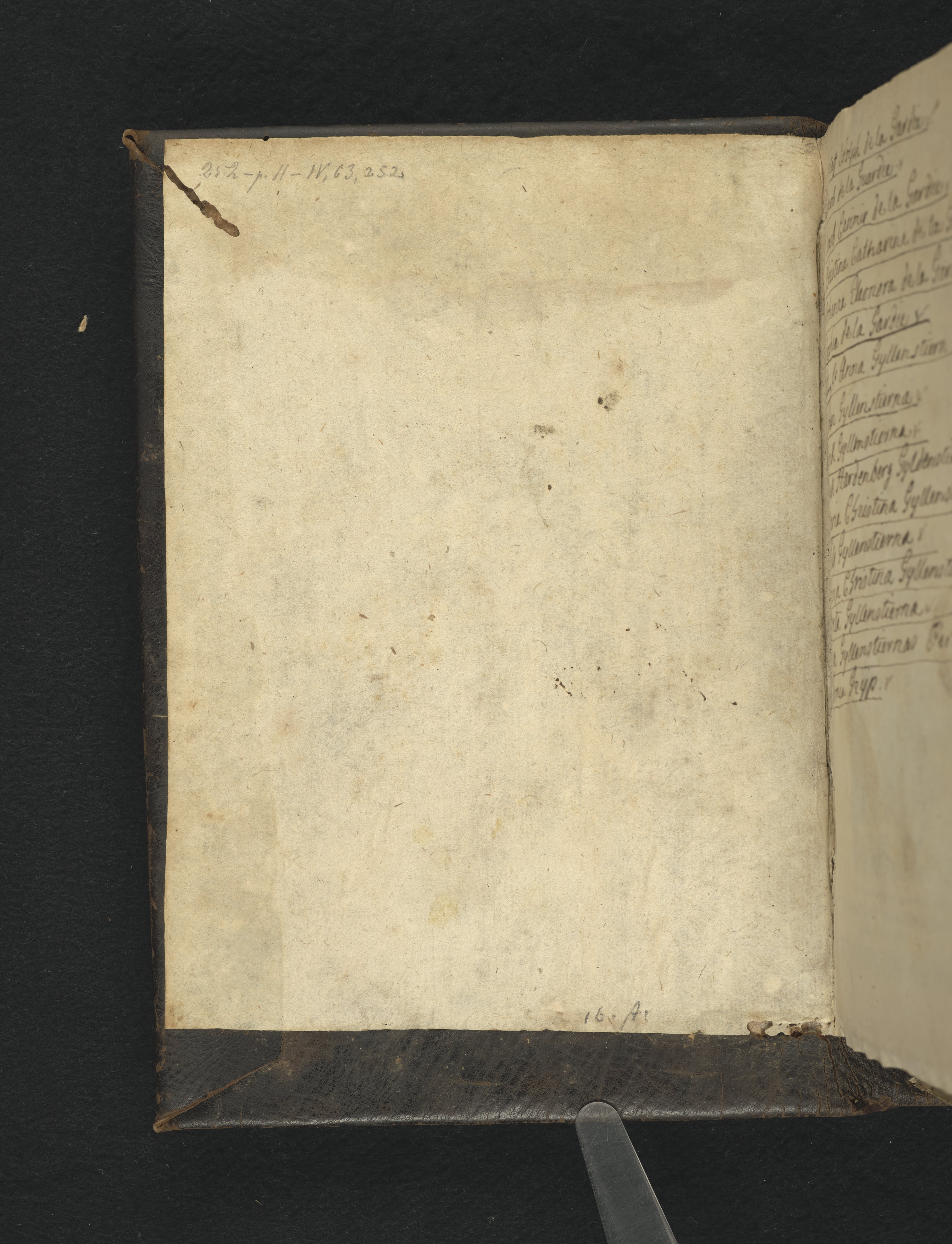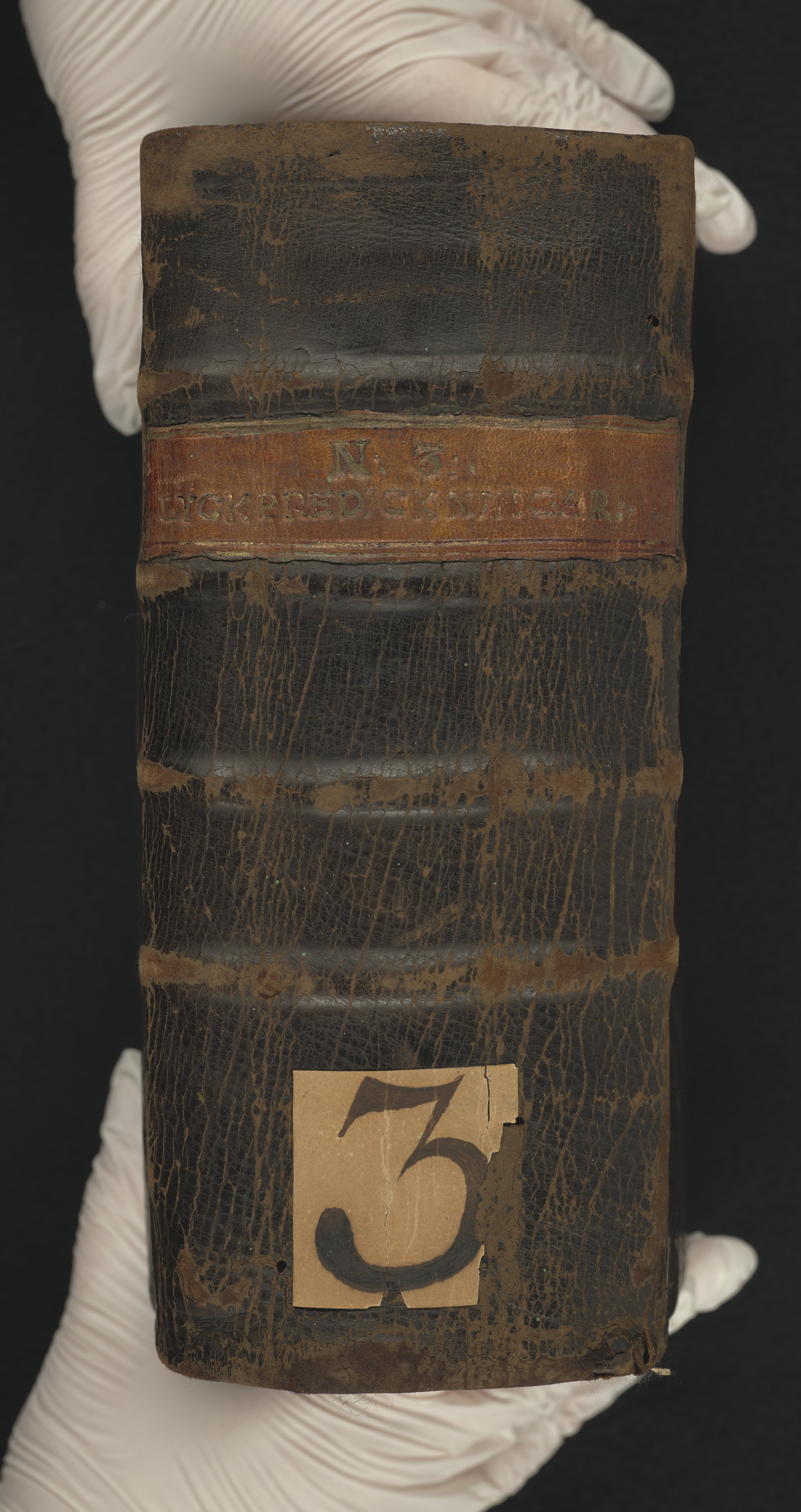Svärtat helskinnsband av kalv med fast rygg. Inlagan består av 18 skrifter i varierande papperskvalitet och storlek. Handskriven innehållsförteckning som anger 16 personer. Kvartovolym nr 3 enligt Bielkes register.