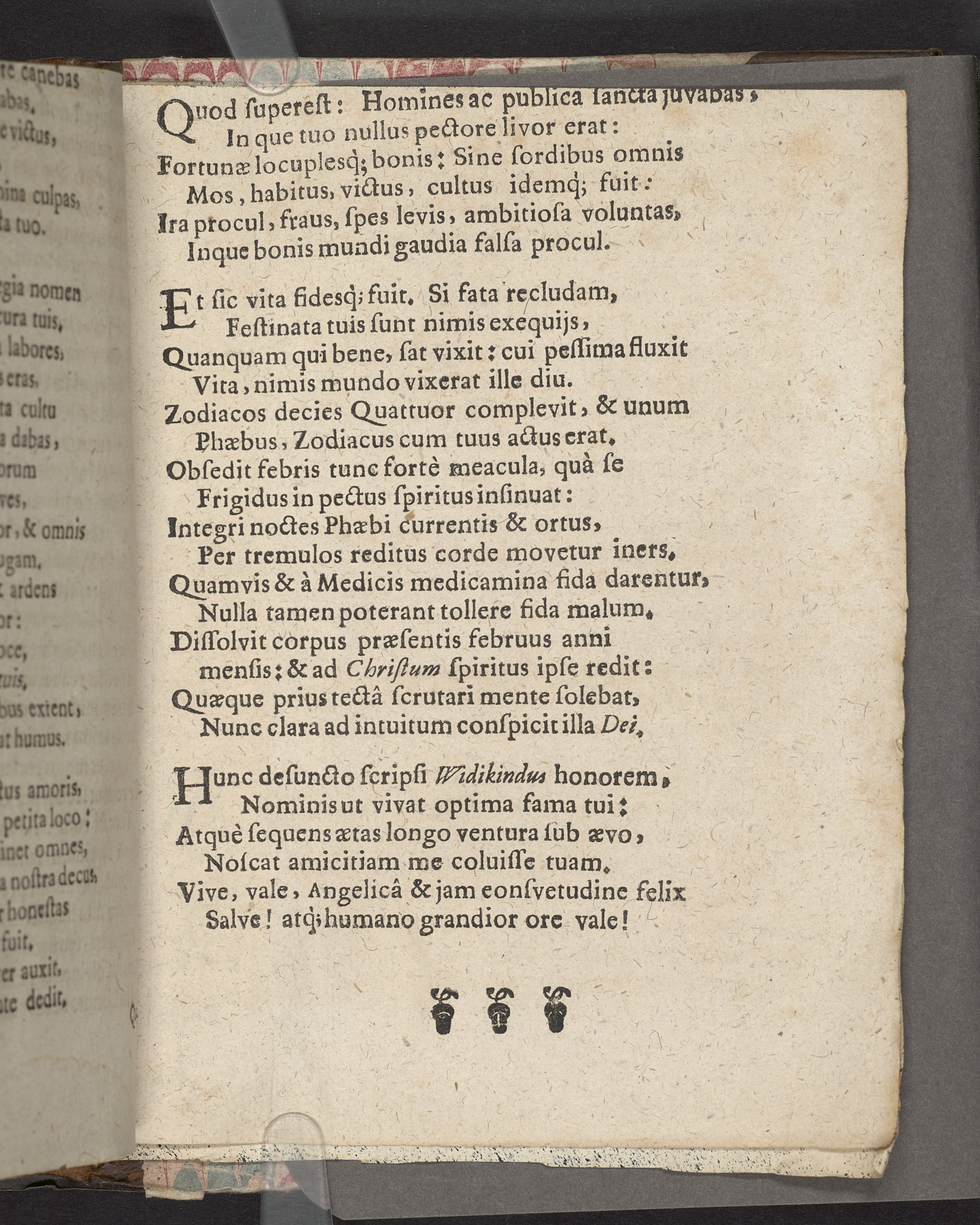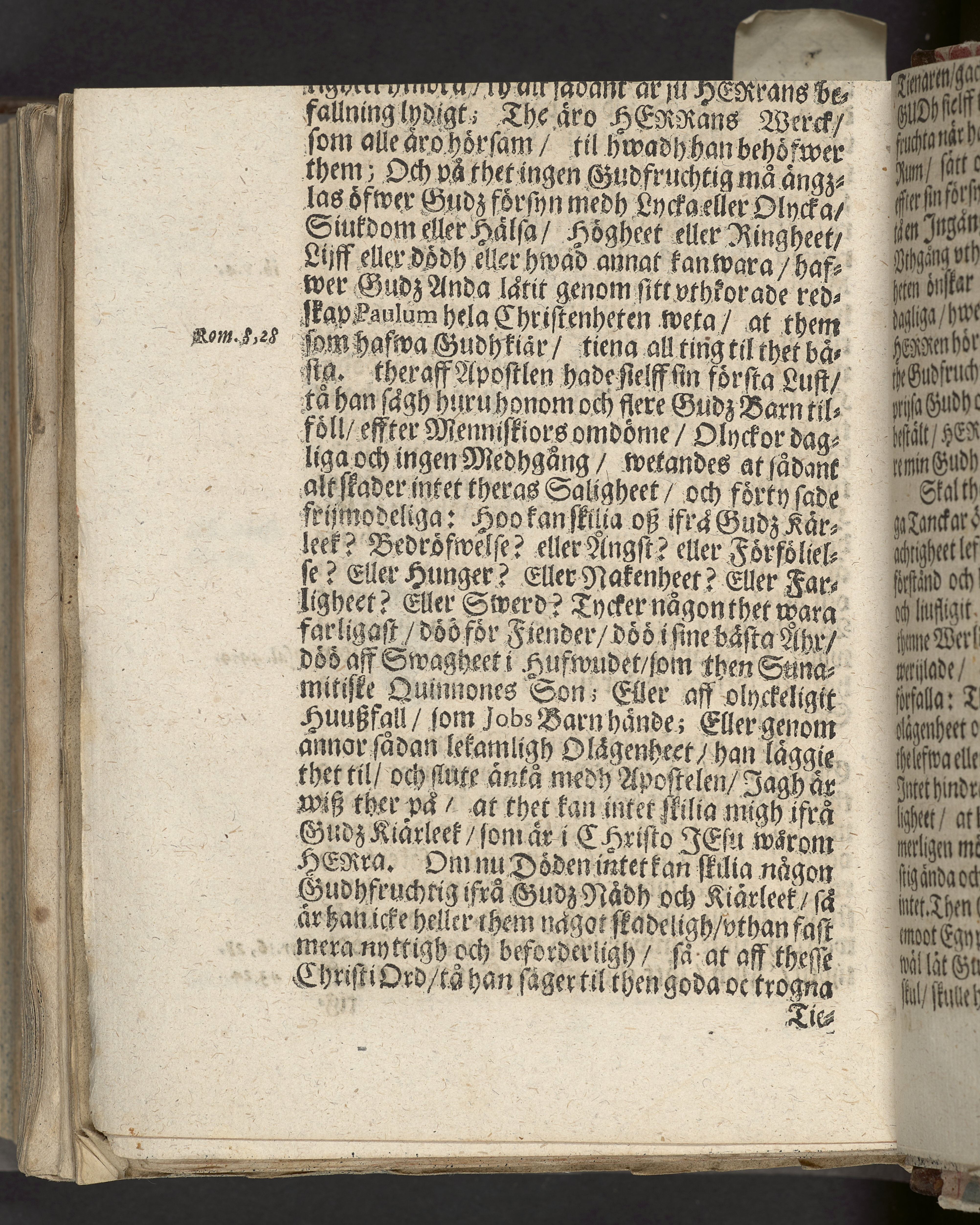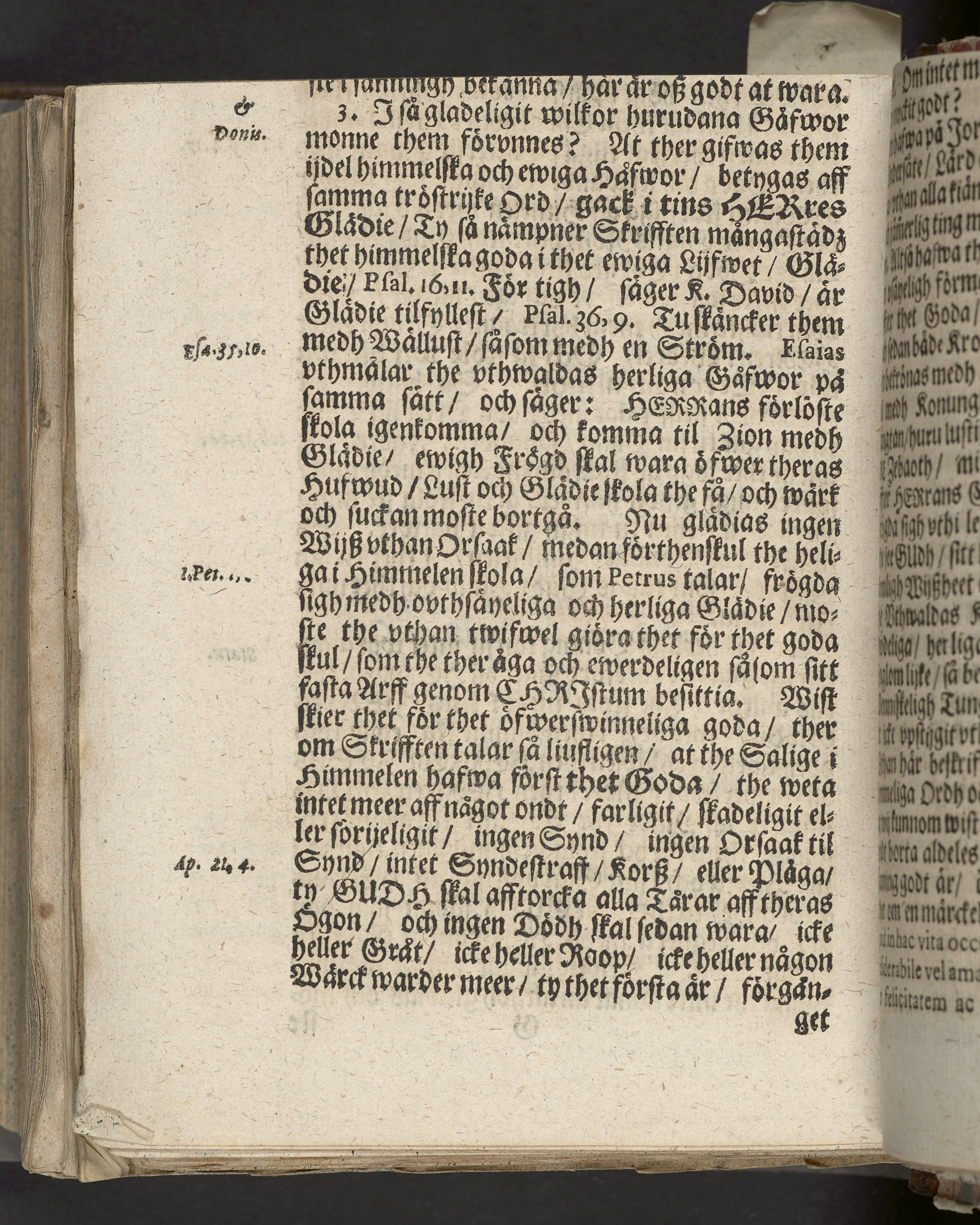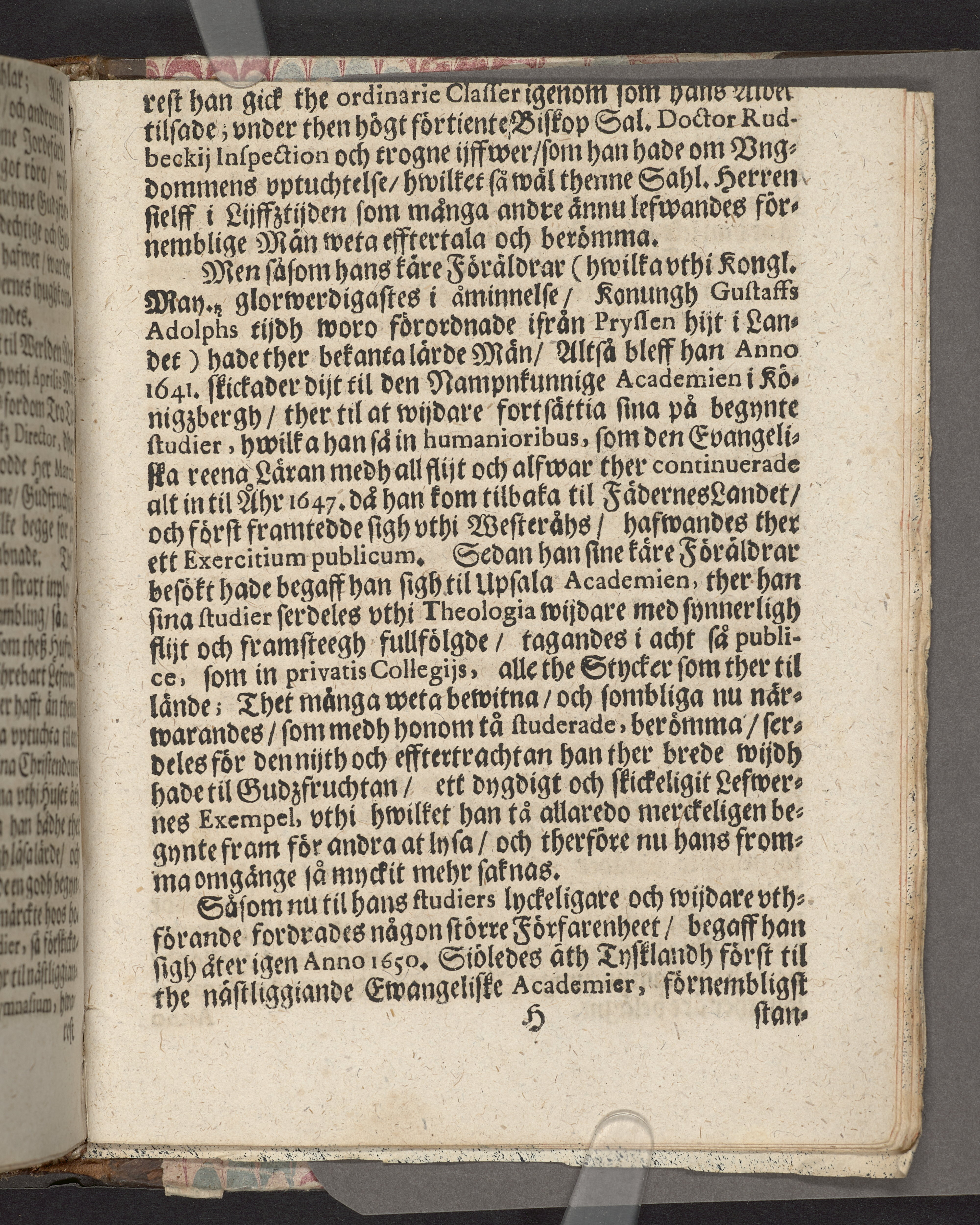 I sammelband med 26 tryck. Högst upp på titelsidan anteckning i bläck med uppgifter om födelse- och dödsdatum för den avlidna. Övre och nedre snitten stänkta i blått. På främre snittet ursprunglig röd färg.
