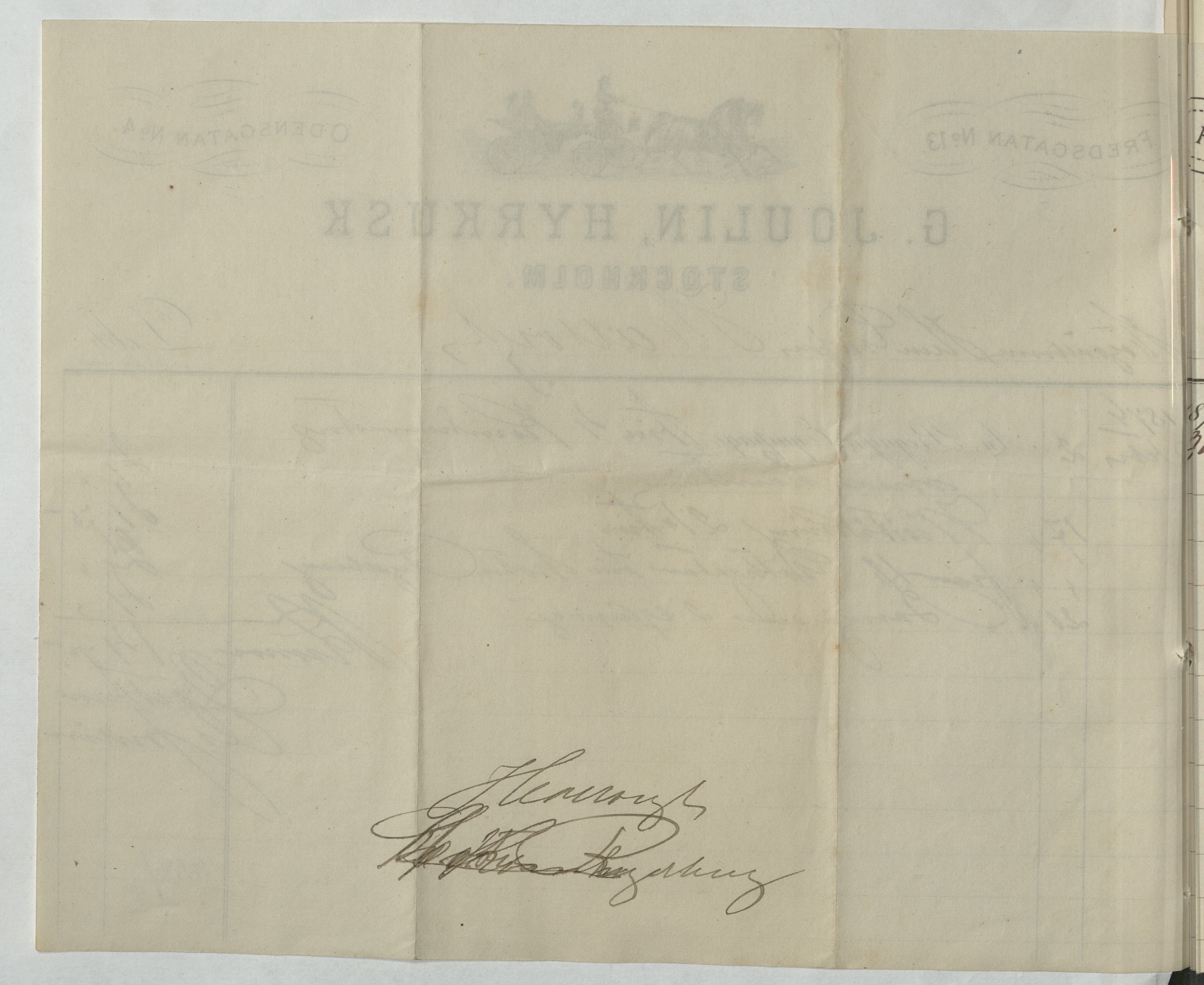 Kvitto från G. Joulin, Hyrkusk