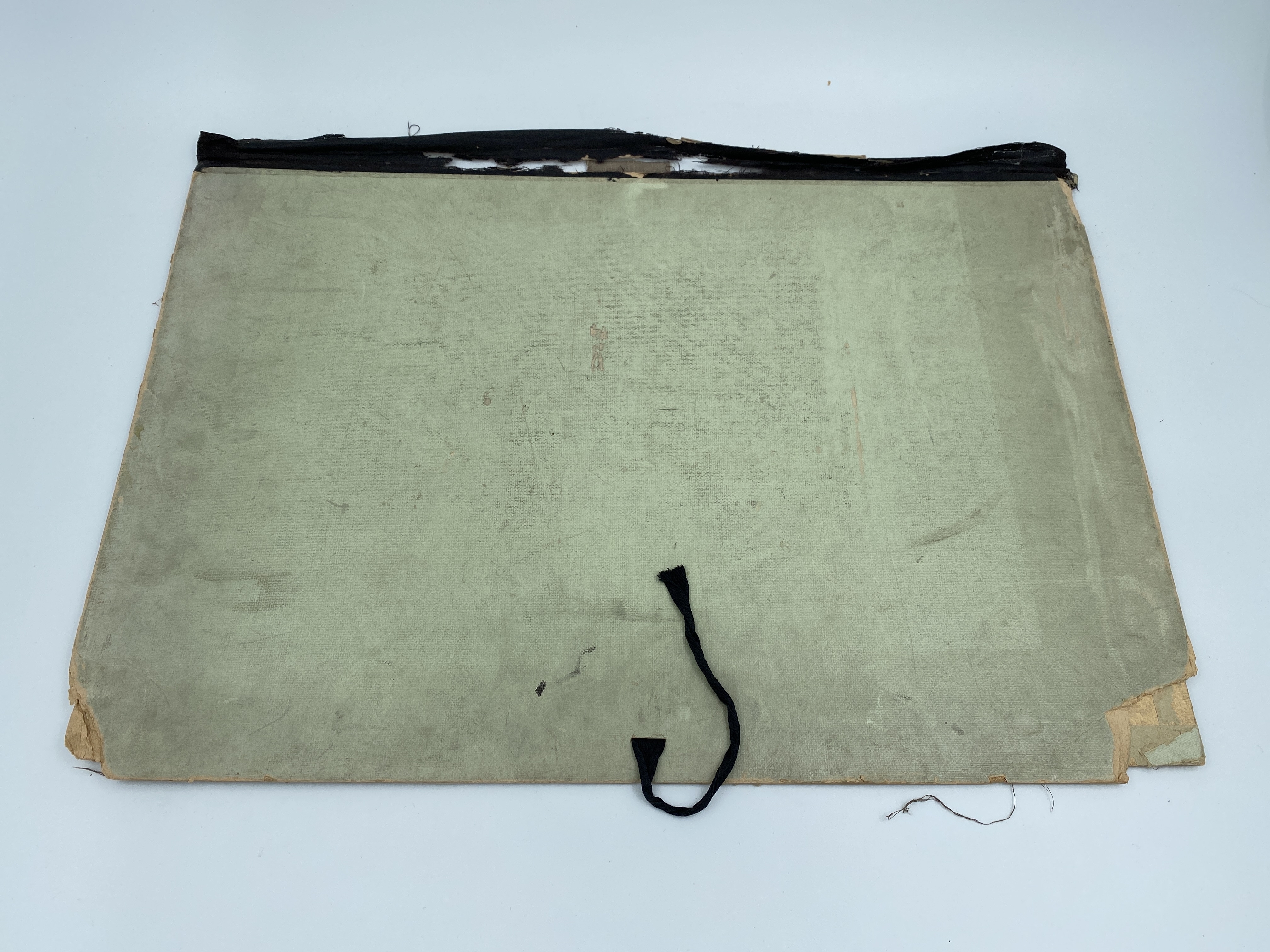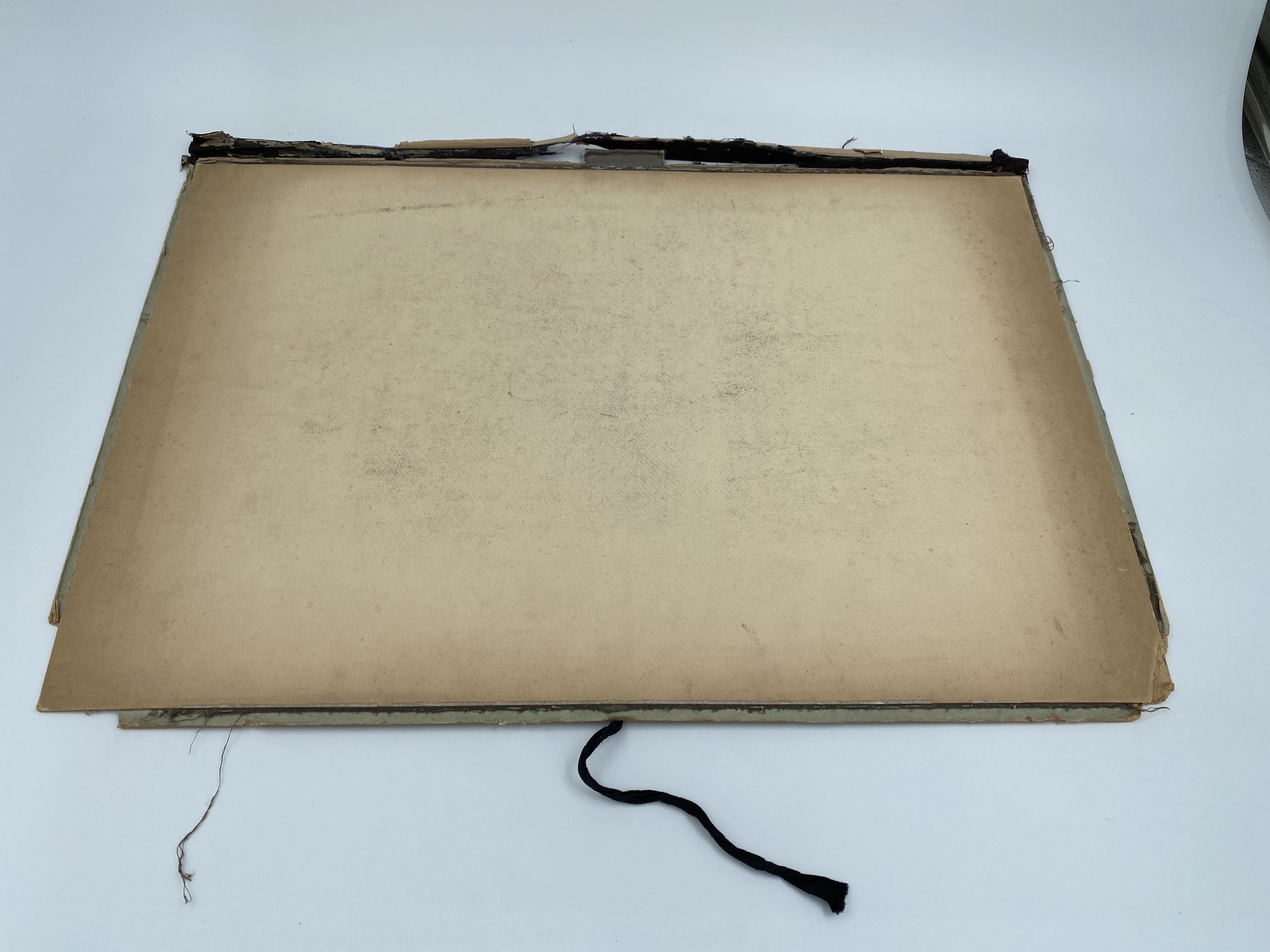 Baksida av jusgrön mapp i två delar, innehållande skisser. Vid förvärv innehöll mappen teckningar och skisser av Auguste Sommer.