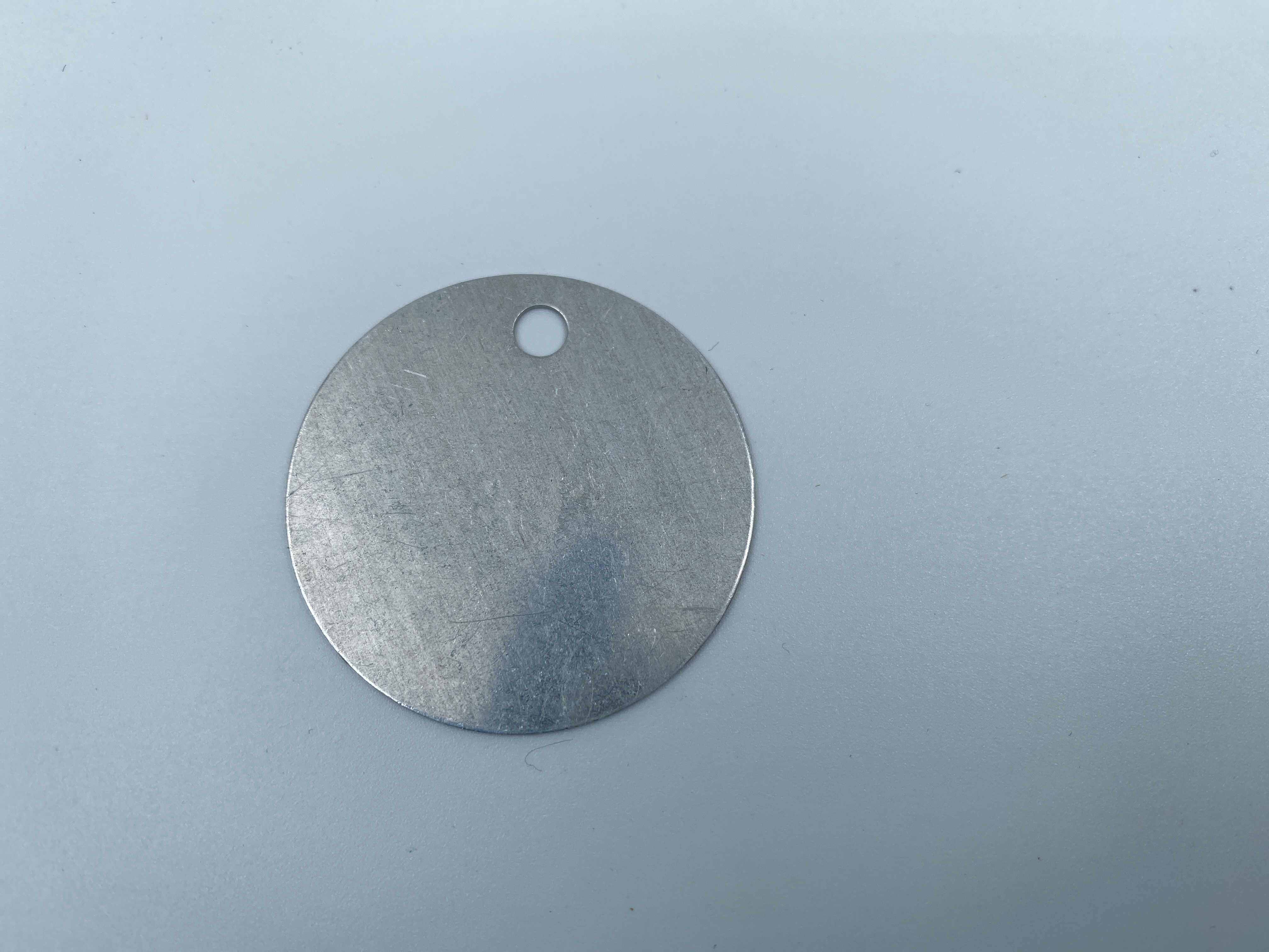 Nummerbricka i metall som troligen tillhört Alice Witt. Användes troligen som ID-nummer vid UNRRAs transport från Lübeck till Sverige 1945.