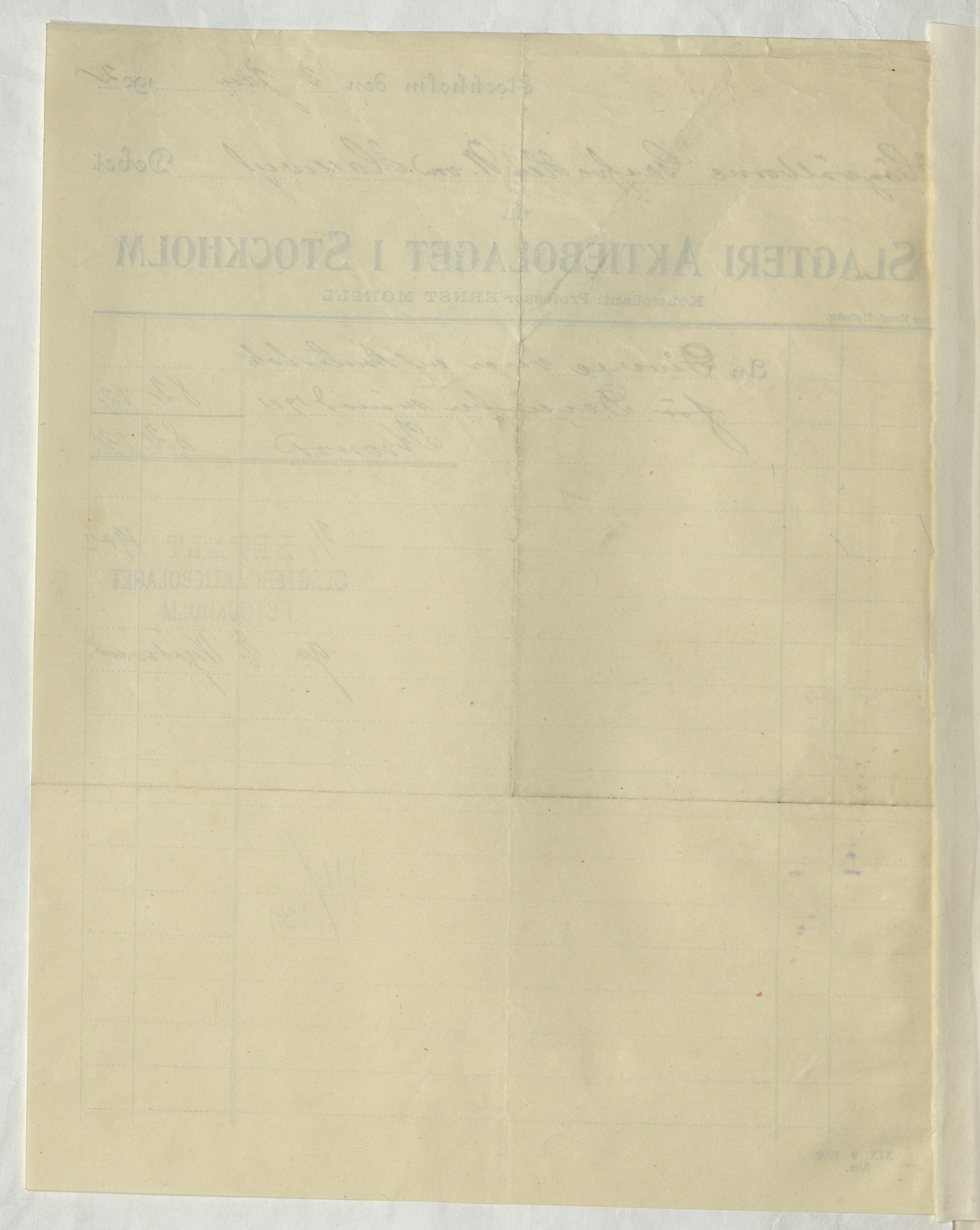 Kvitto från Slagteri Aktiebolaget i Stockholm