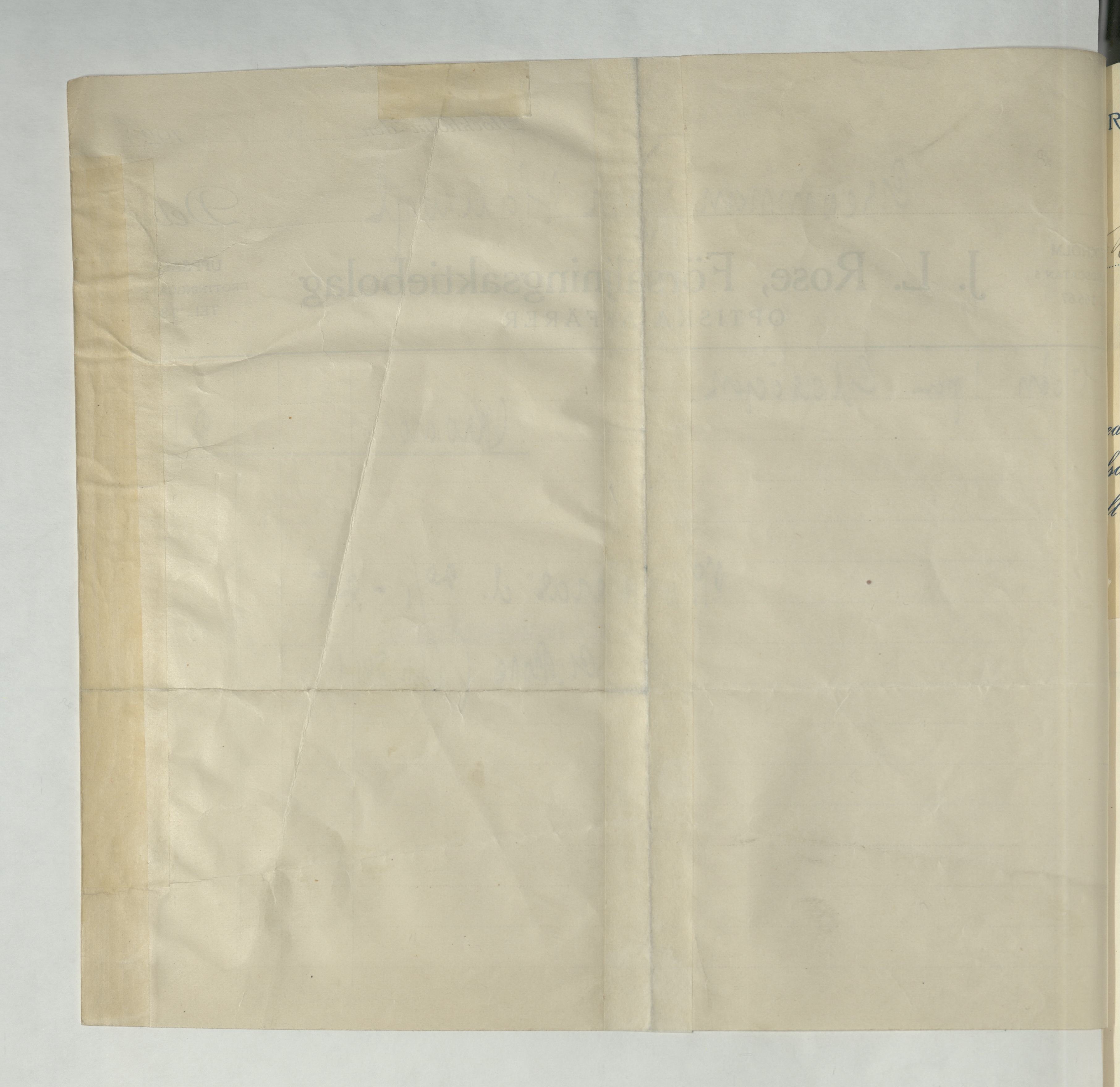 Kvitto från J.L. Rose, Optiska affären, Försäljningsaktiebolag, 1925