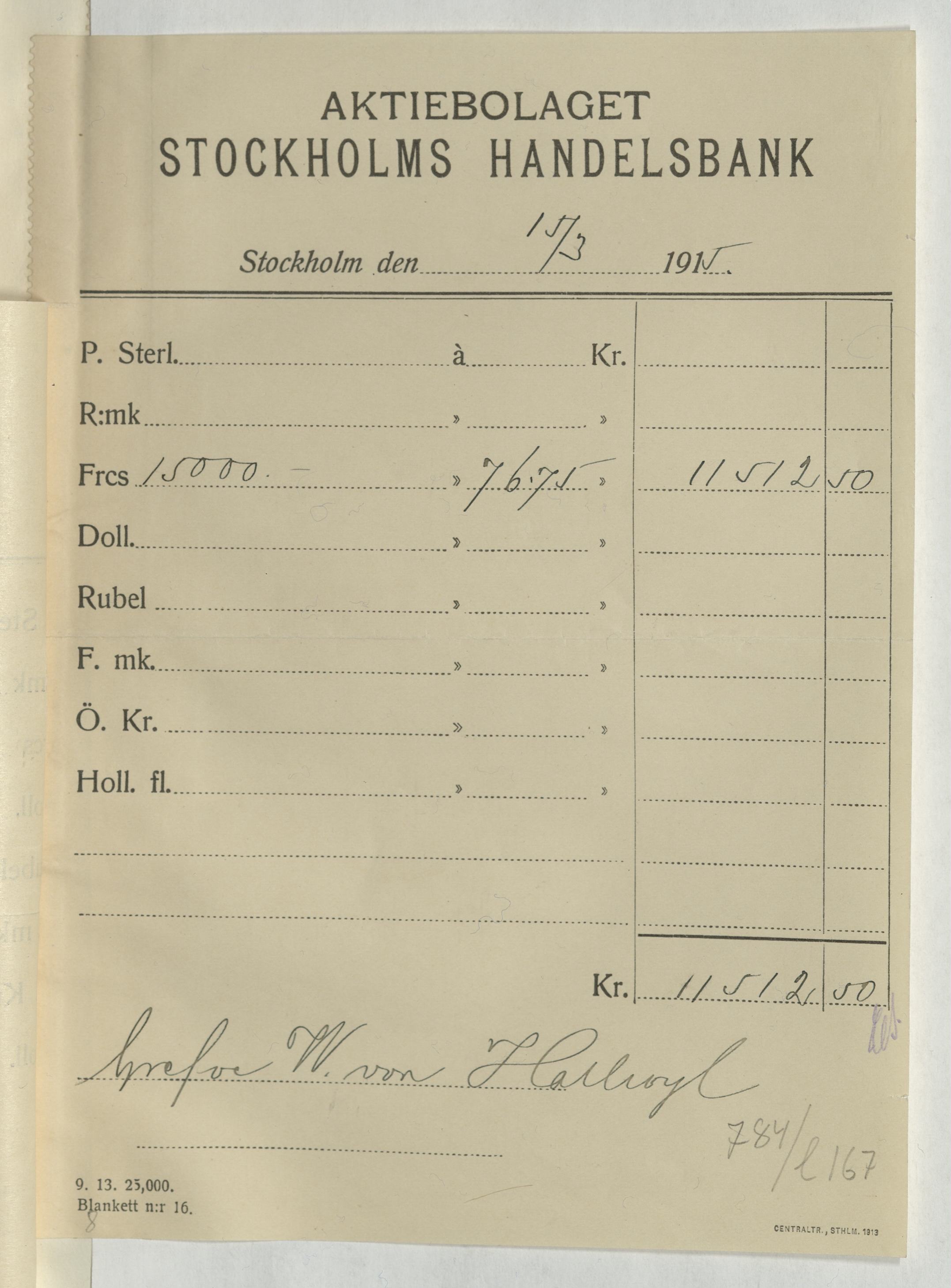 Verifikation från Aktiebolaget Stockholms Handelsbank
